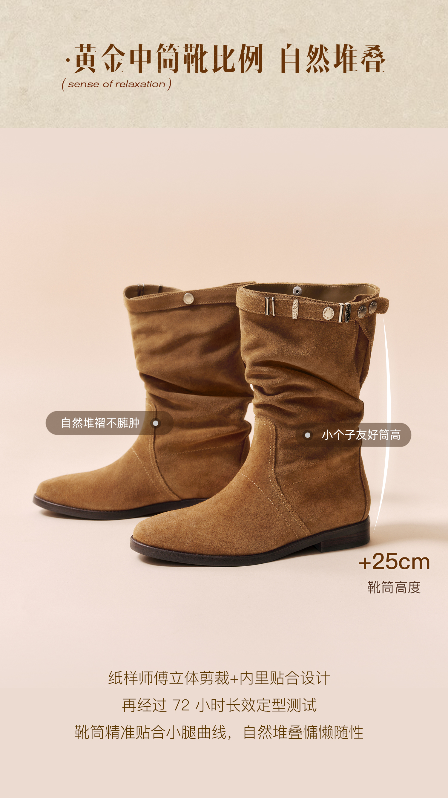 | 配跟:无 | 靴筒口围:37.5CM | 上市时间:2025年冬季 | 鞋类流行款式:时装靴 | 鞋头款式:圆头 |