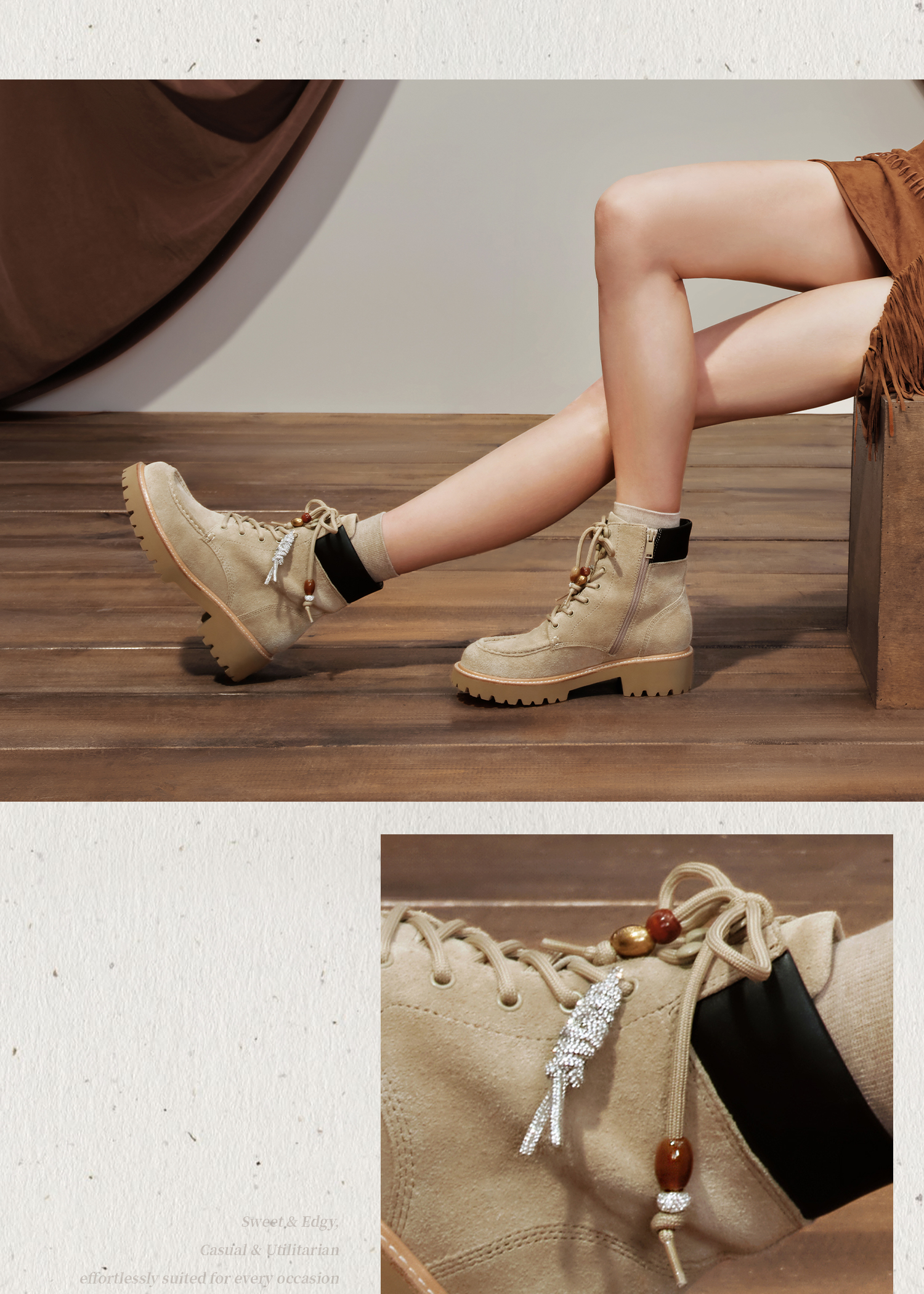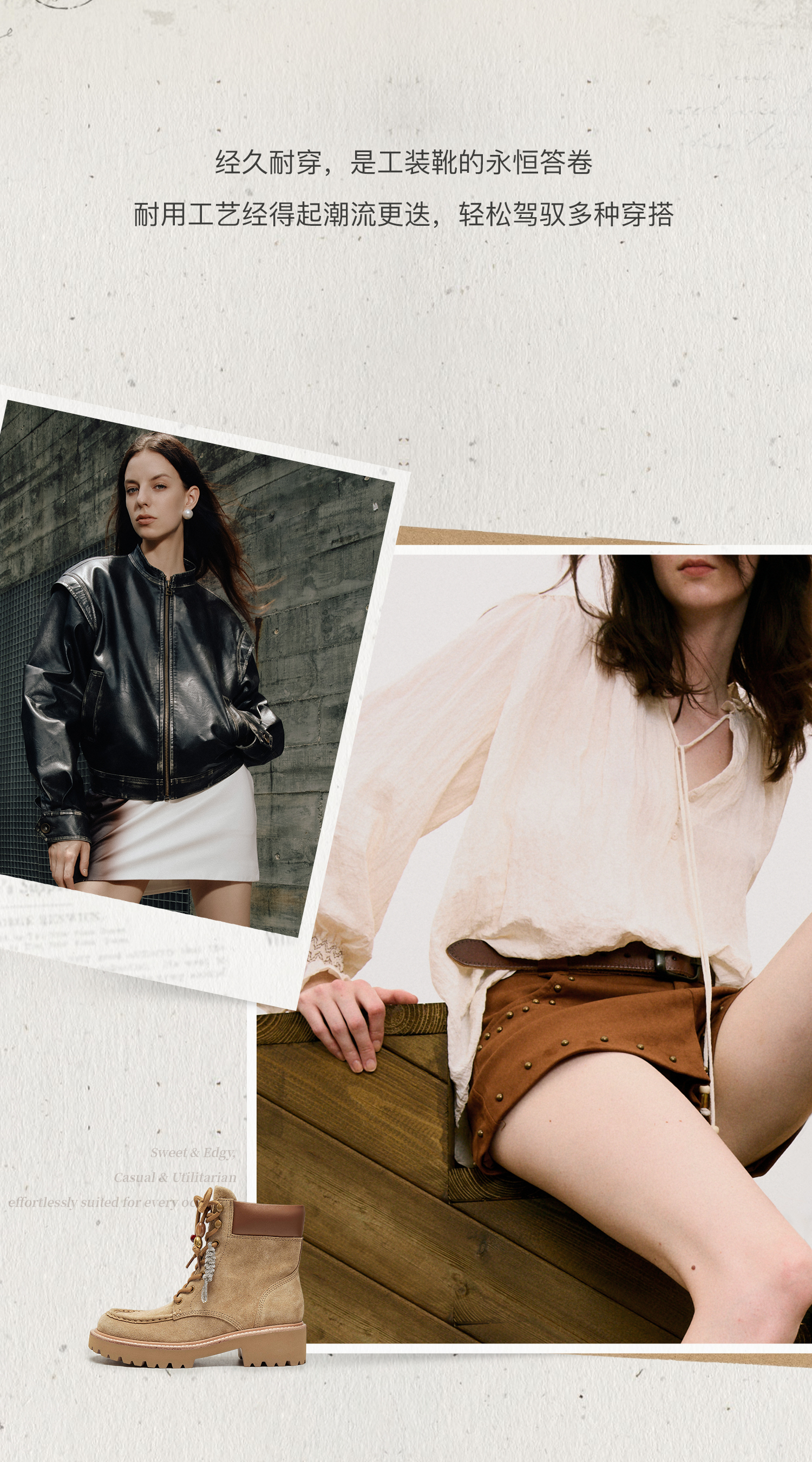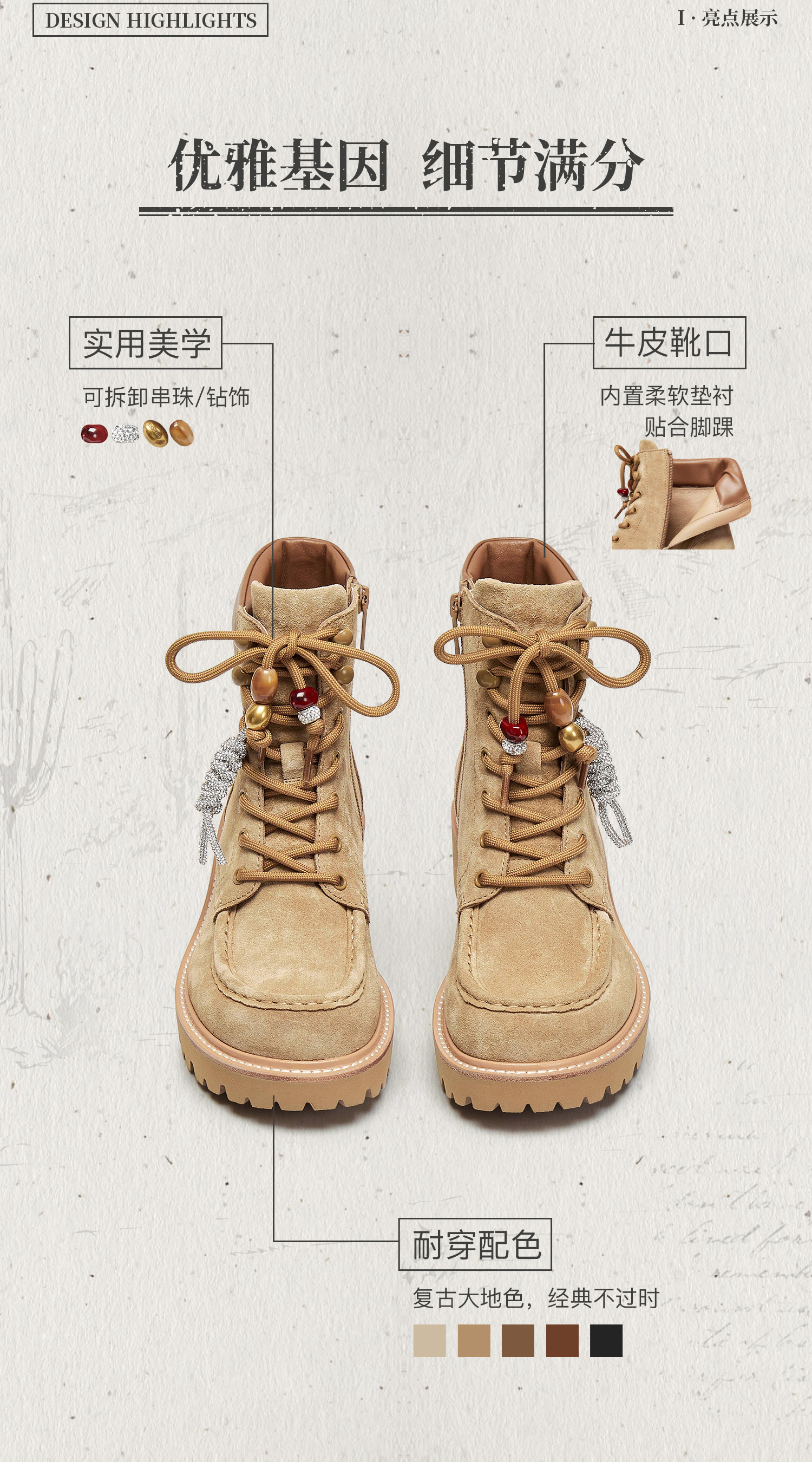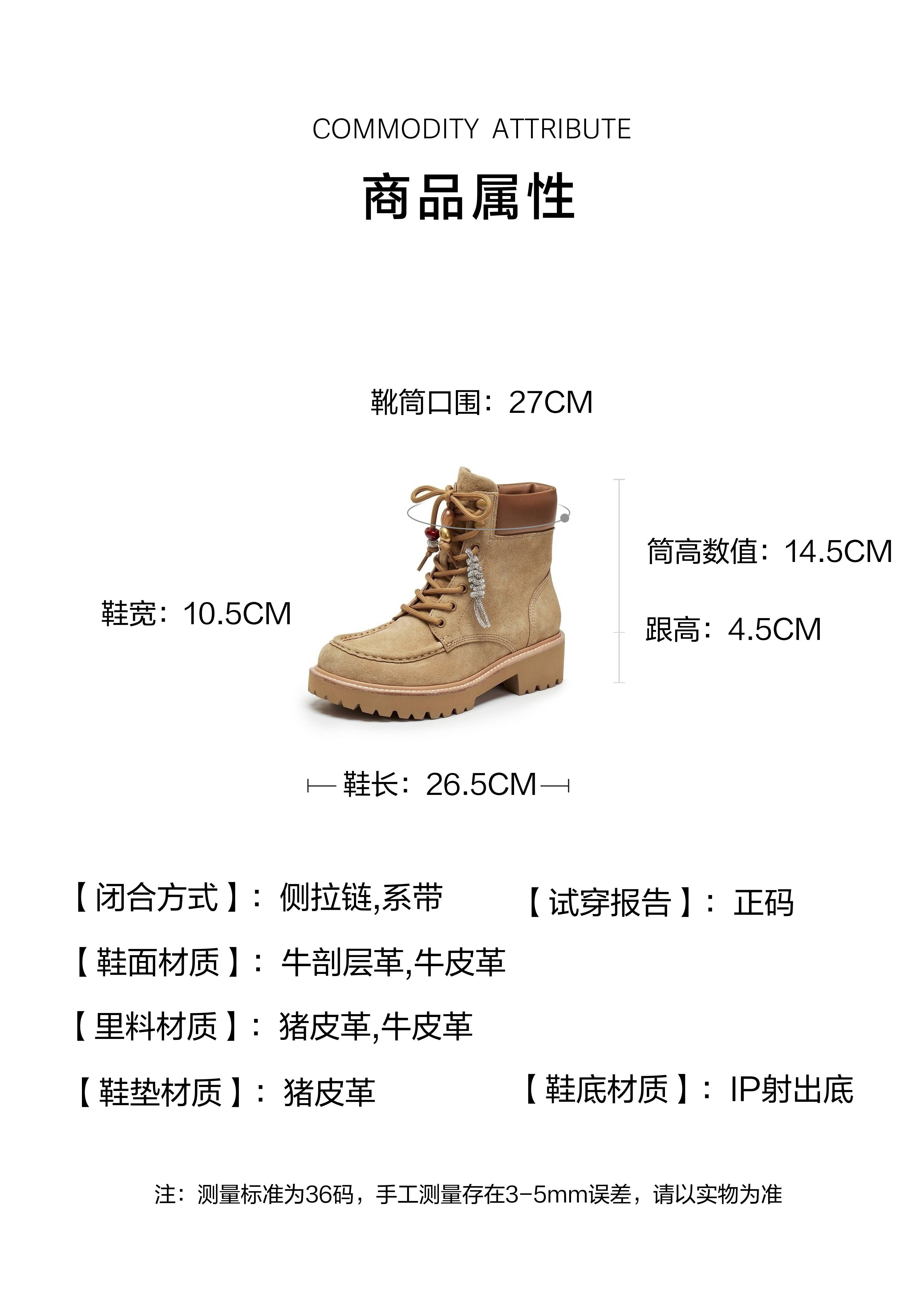 | 鞋底材质:IP射出底 | 靴筒内里材质:牛皮革猪皮革 | 内增高:无 | 鞋面材质:牛剖层革牛皮革 | 闭合方式:系带侧拉链 |