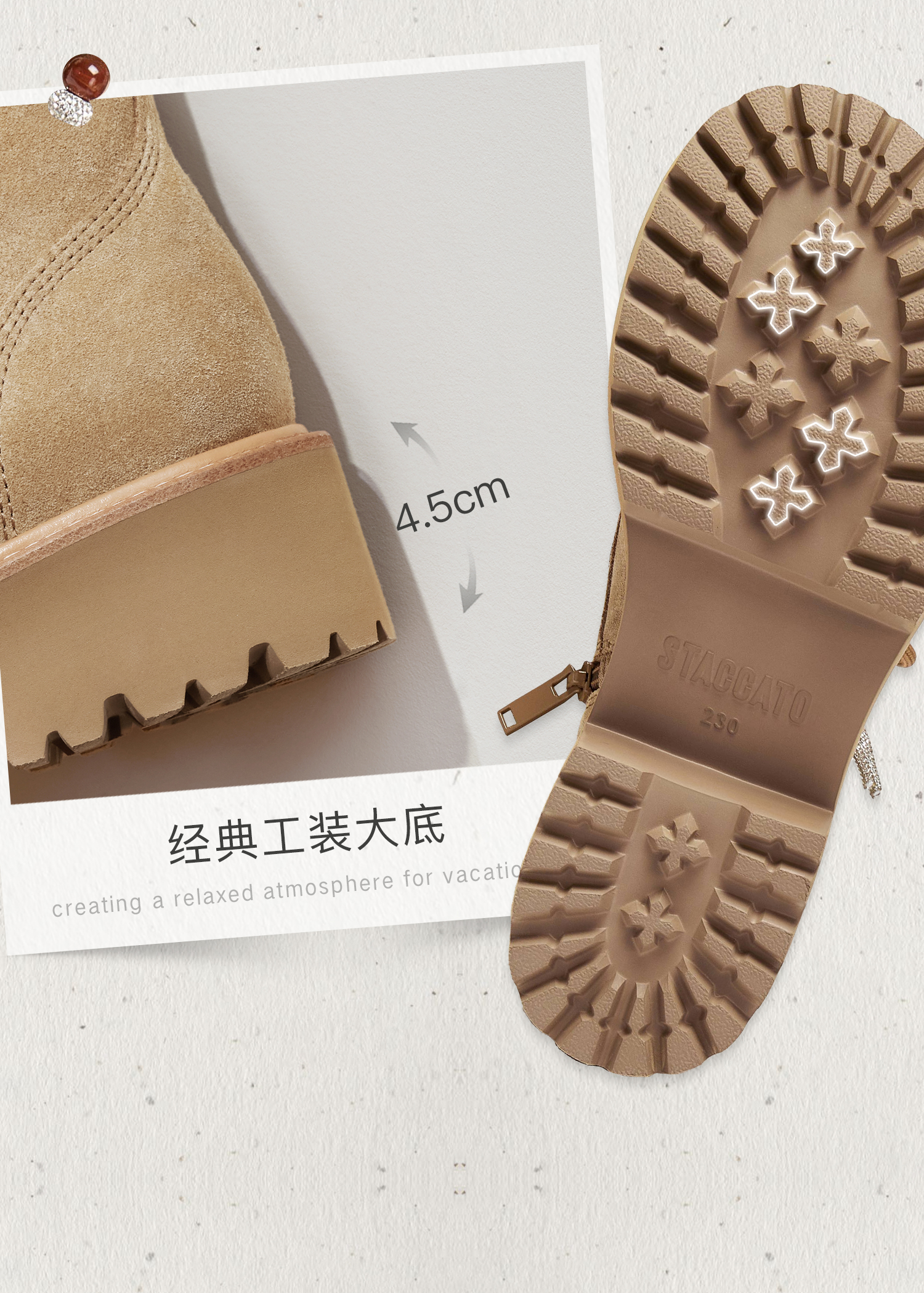 | 风格:时尚潮流 | 鞋面内里材质:牛皮革猪皮革 | 跟高数值:4.5CM | 色系:杏色 | 性别:女子 |