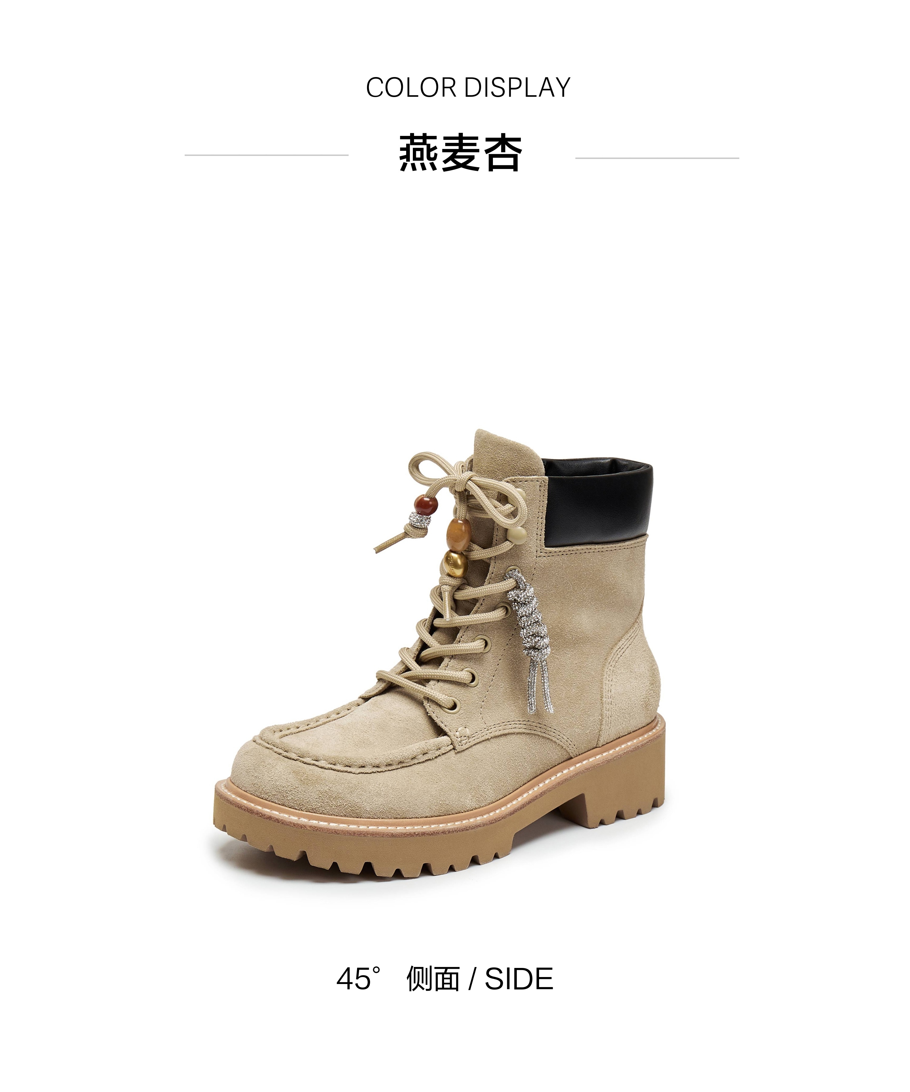 | 鞋底材质:IP射出底 | 靴筒内里材质:牛皮革猪皮革 | 内增高:无 | 鞋面材质:牛剖层革牛皮革 | 闭合方式:系带侧拉链 |