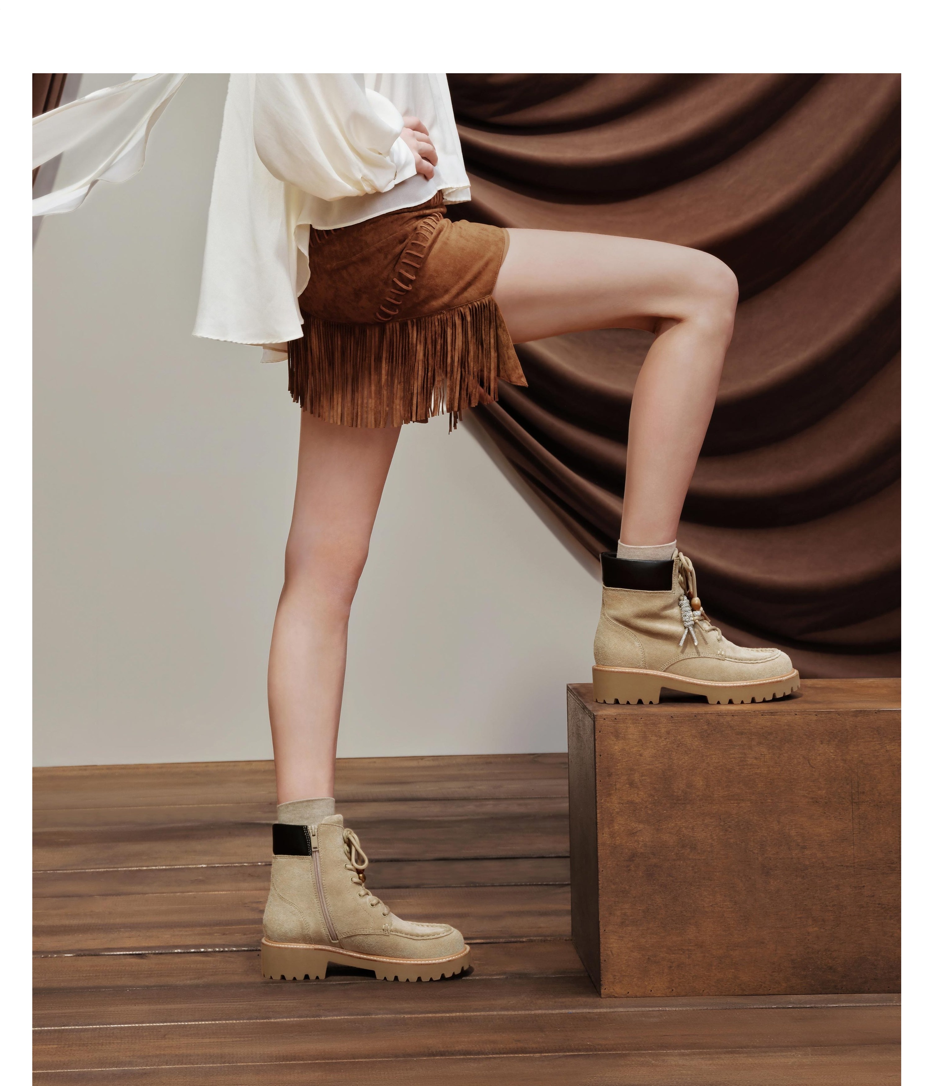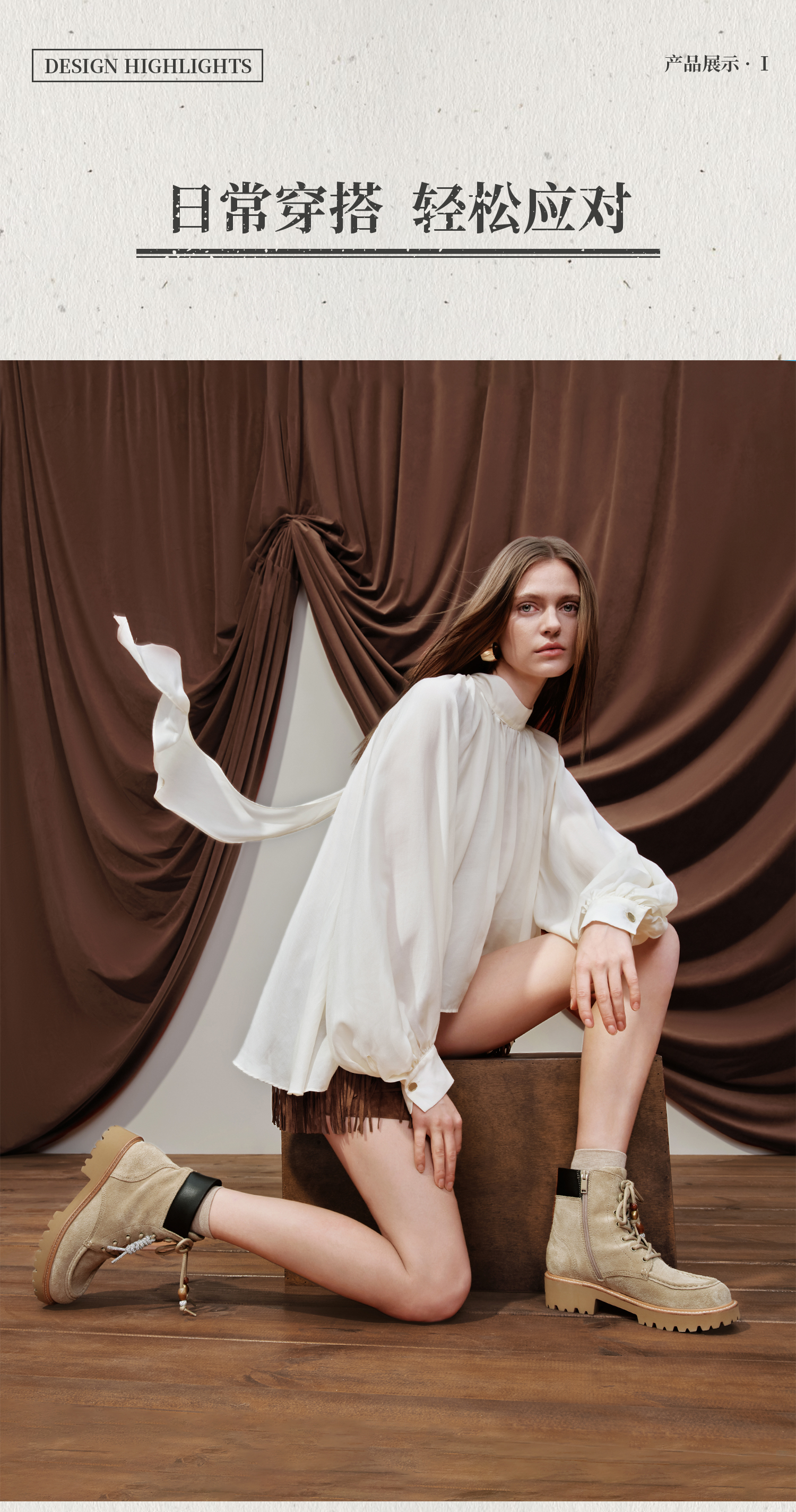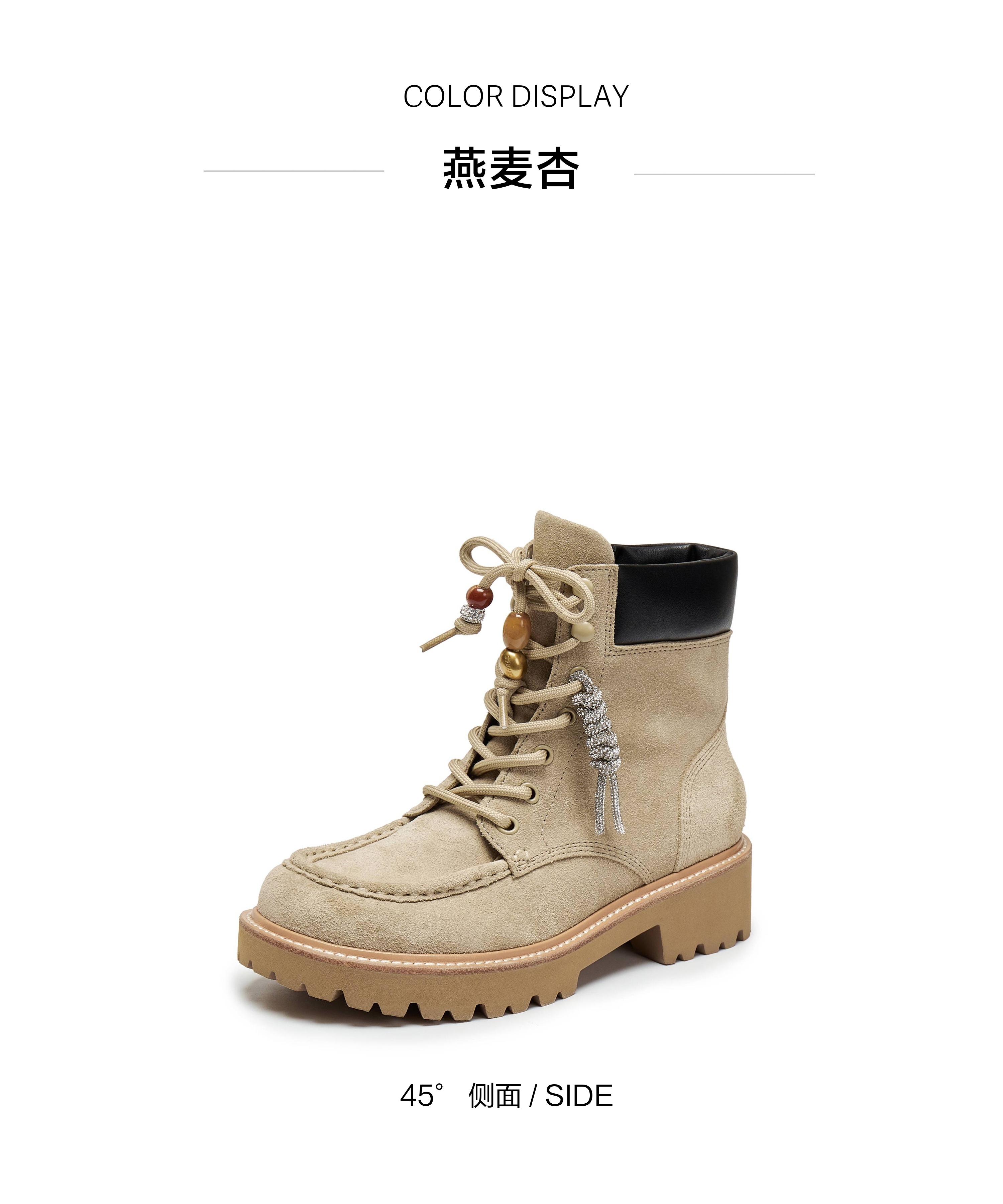 | 鞋底材质:IP射出底 | 靴筒内里材质:猪皮革牛皮革 | 内增高:无 | 鞋面材质:牛皮革牛剖层革 | 闭合方式:系带侧拉链 |