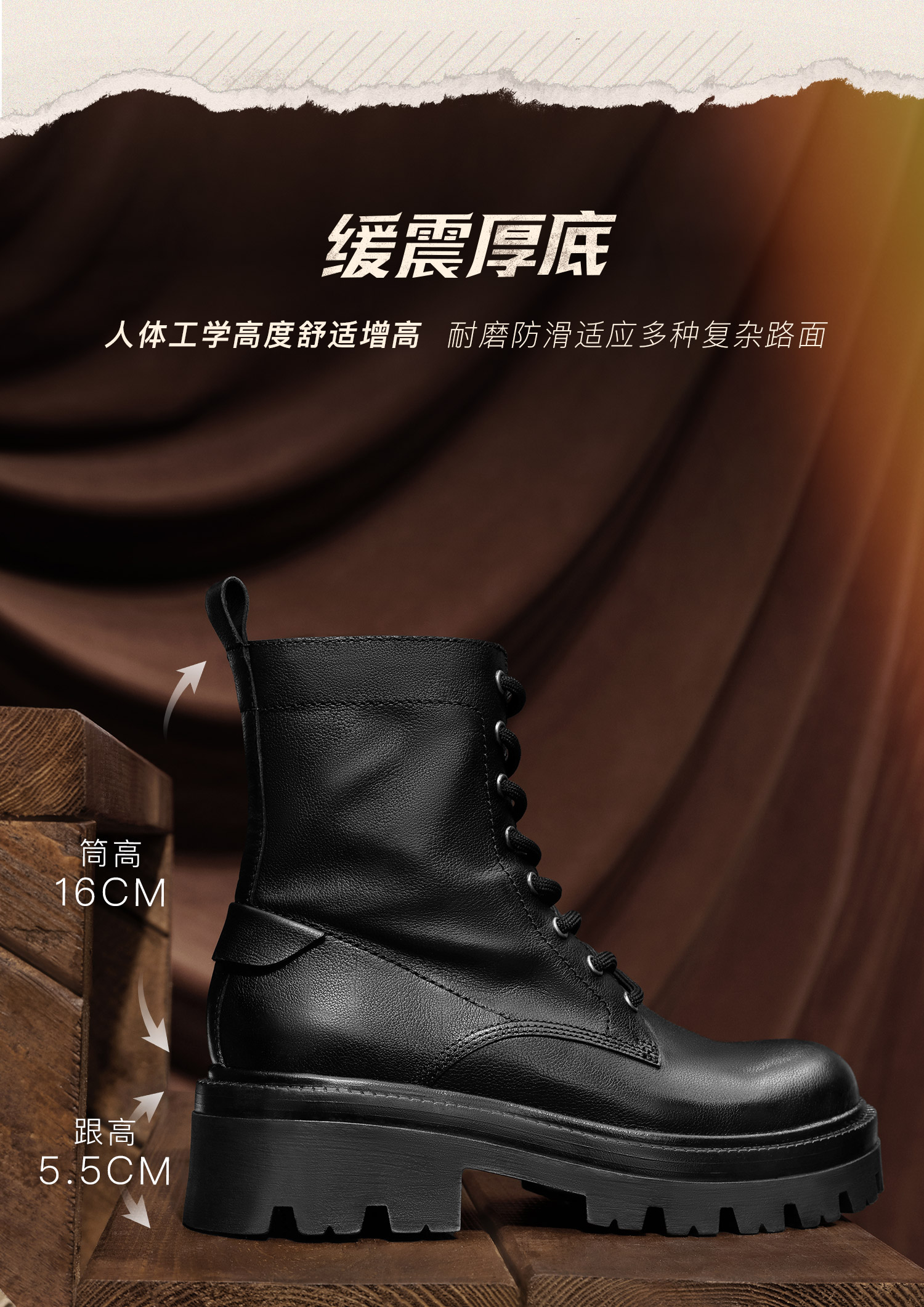 | 鞋底材质:TPR | 靴筒内里材质:猪皮革 | 内增高:无 | 鞋面材质:牛剖层革 | 闭合方式:系带侧拉链 |