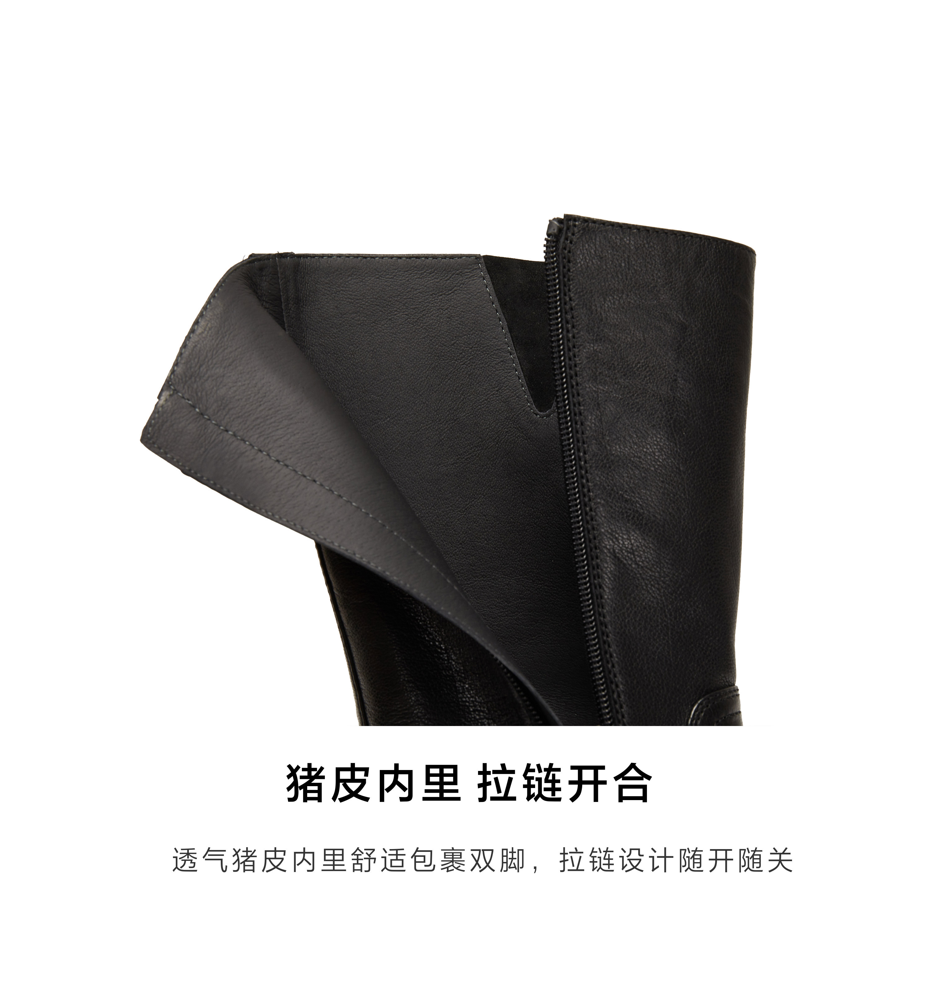 | 鞋底材质:TPR | 靴筒内里材质:猪皮革 | 内增高:无 | 鞋面材质:牛皮革 | 闭合方式:侧拉链 |