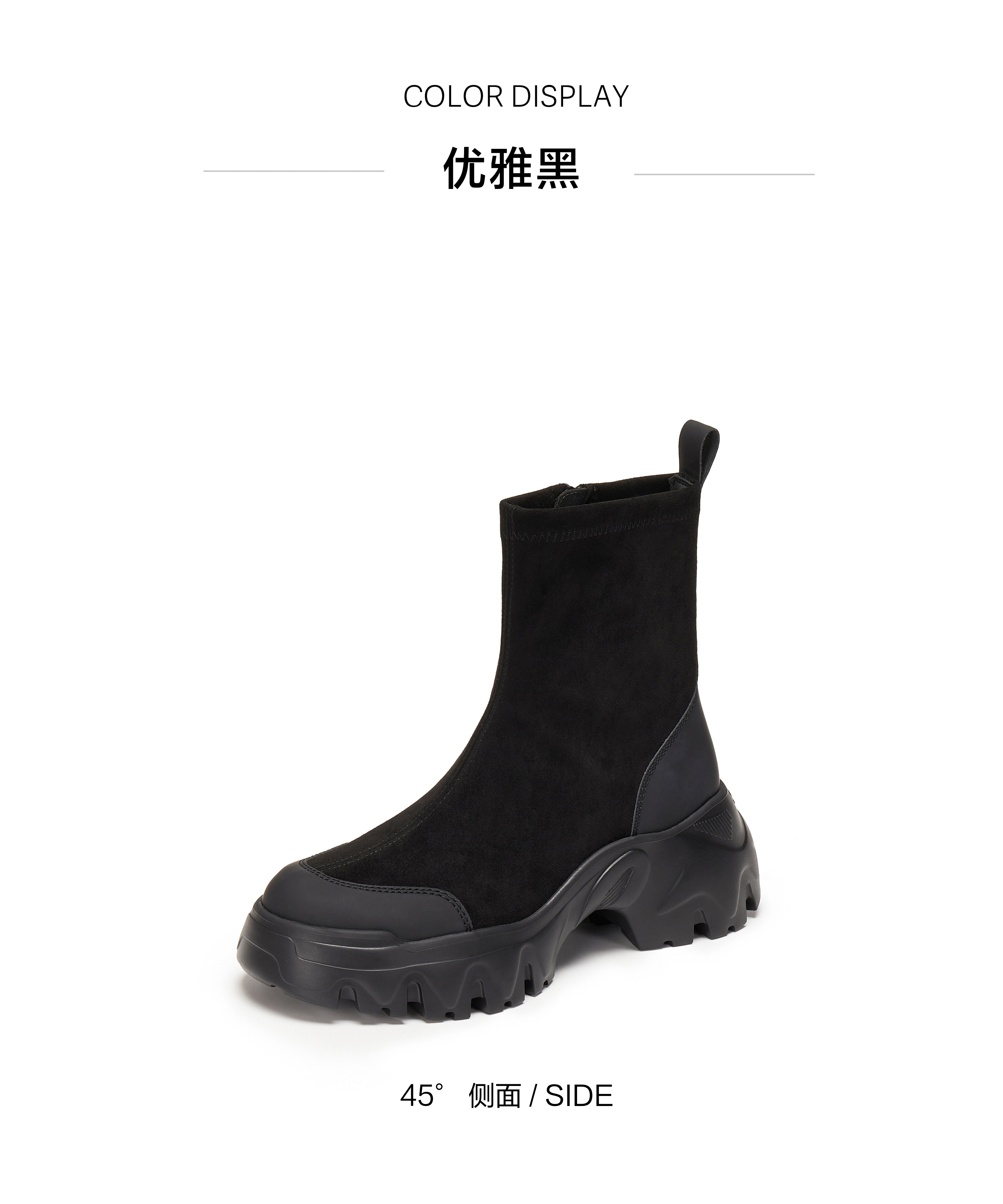 | 鞋底材质:IP射出底 | 靴筒内里材质:猪皮革织物 | 内增高:无 | 鞋面材质:织物牛皮革 | 闭合方式:侧拉链 |