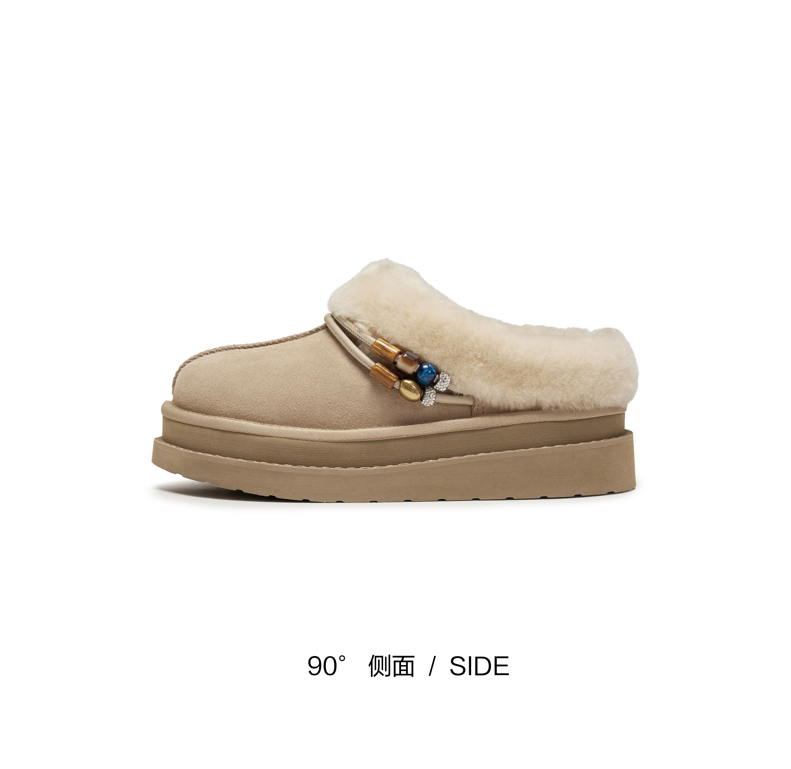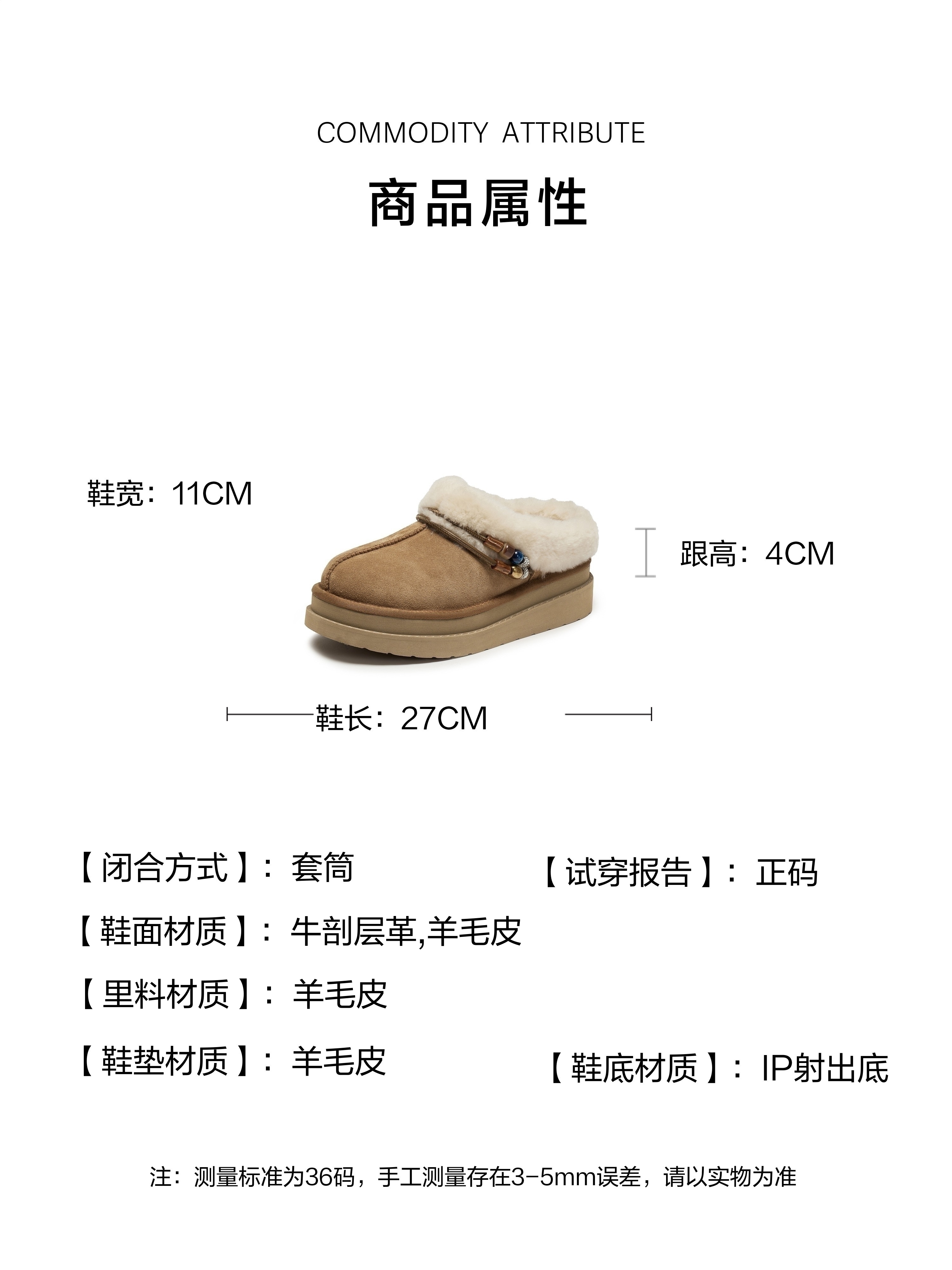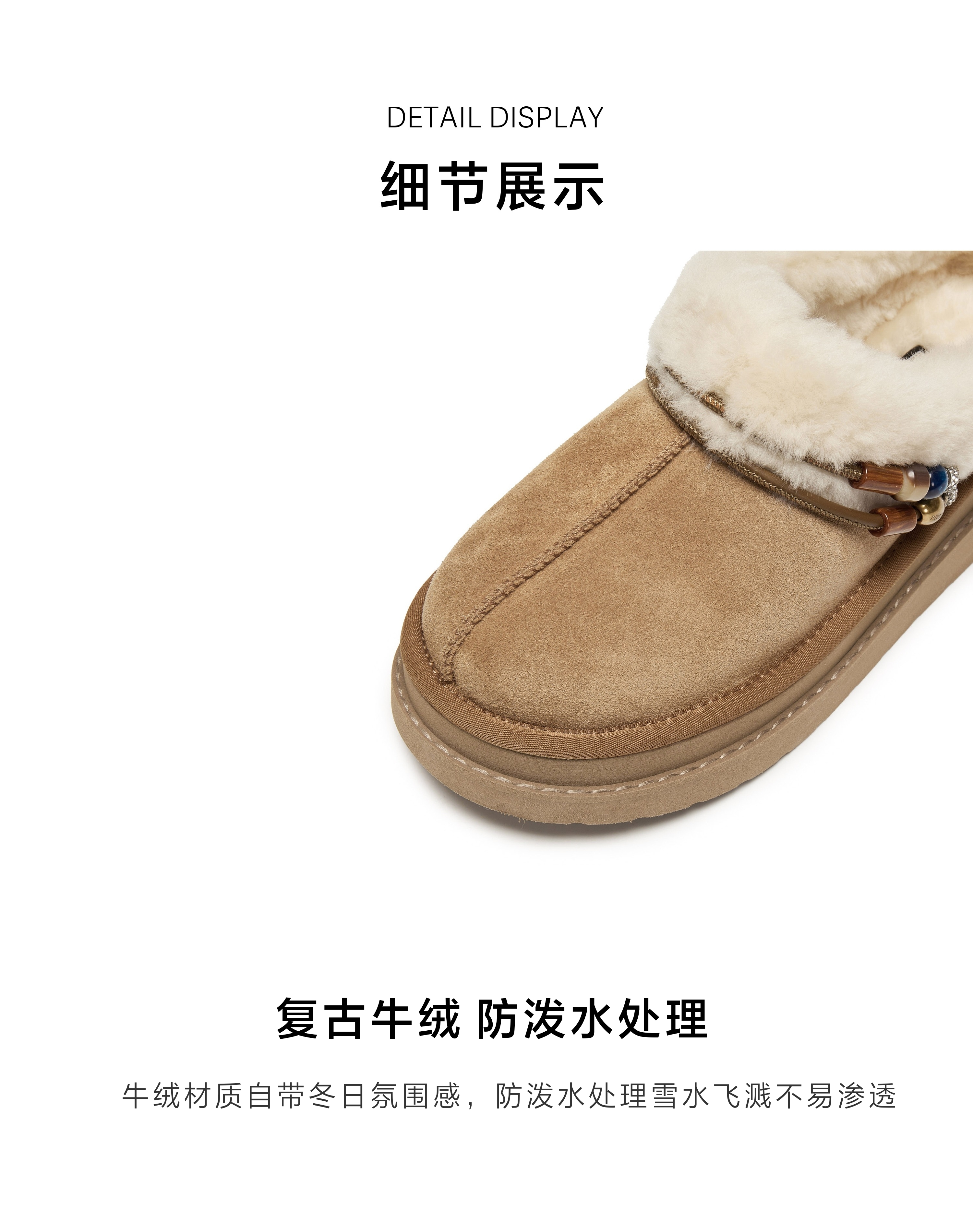 | 帮面材质:牛剖层革 | 配跟:无 | 上市时间:2025年冬季 | 鞋类流行款式:雪地靴 | 鞋头款式:圆头 |
