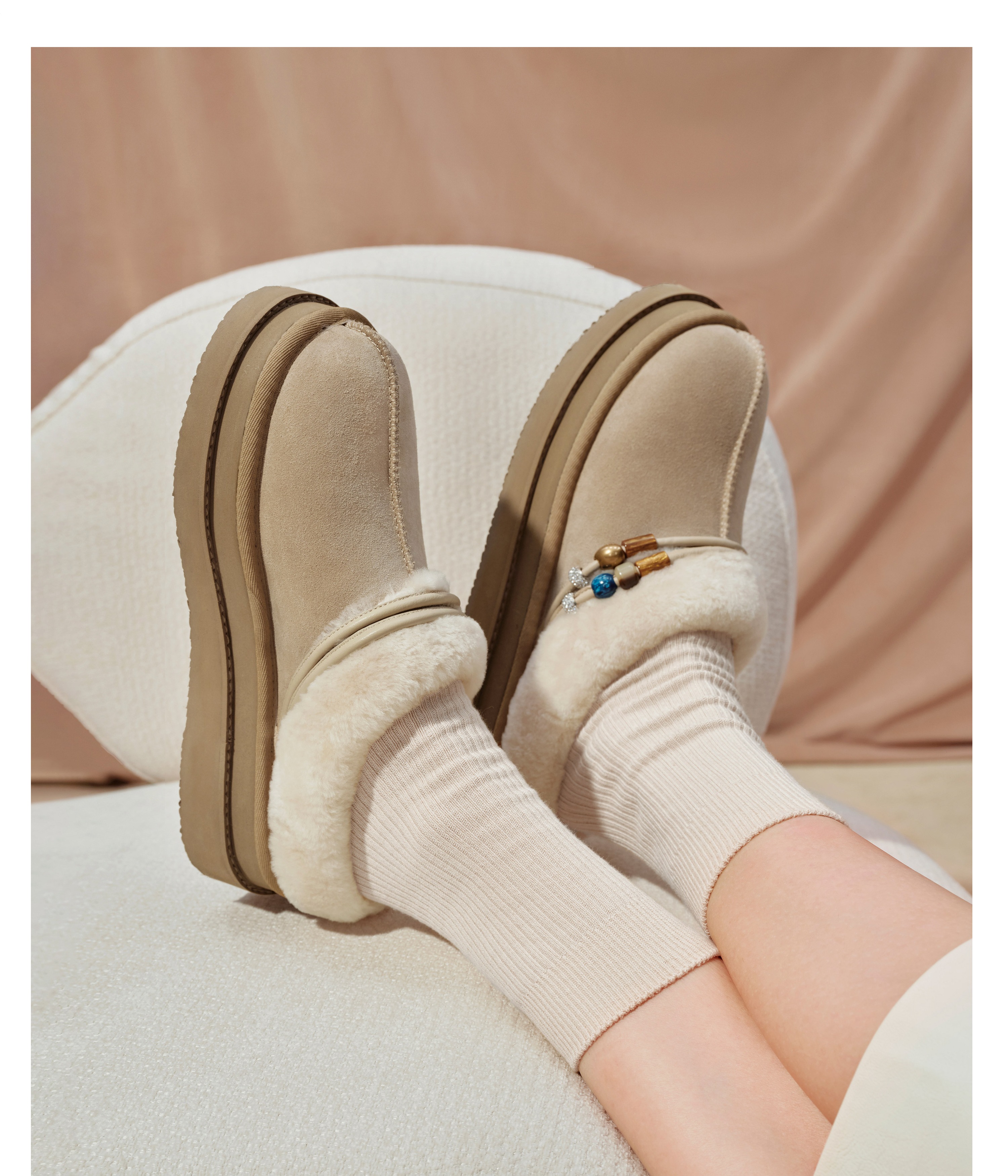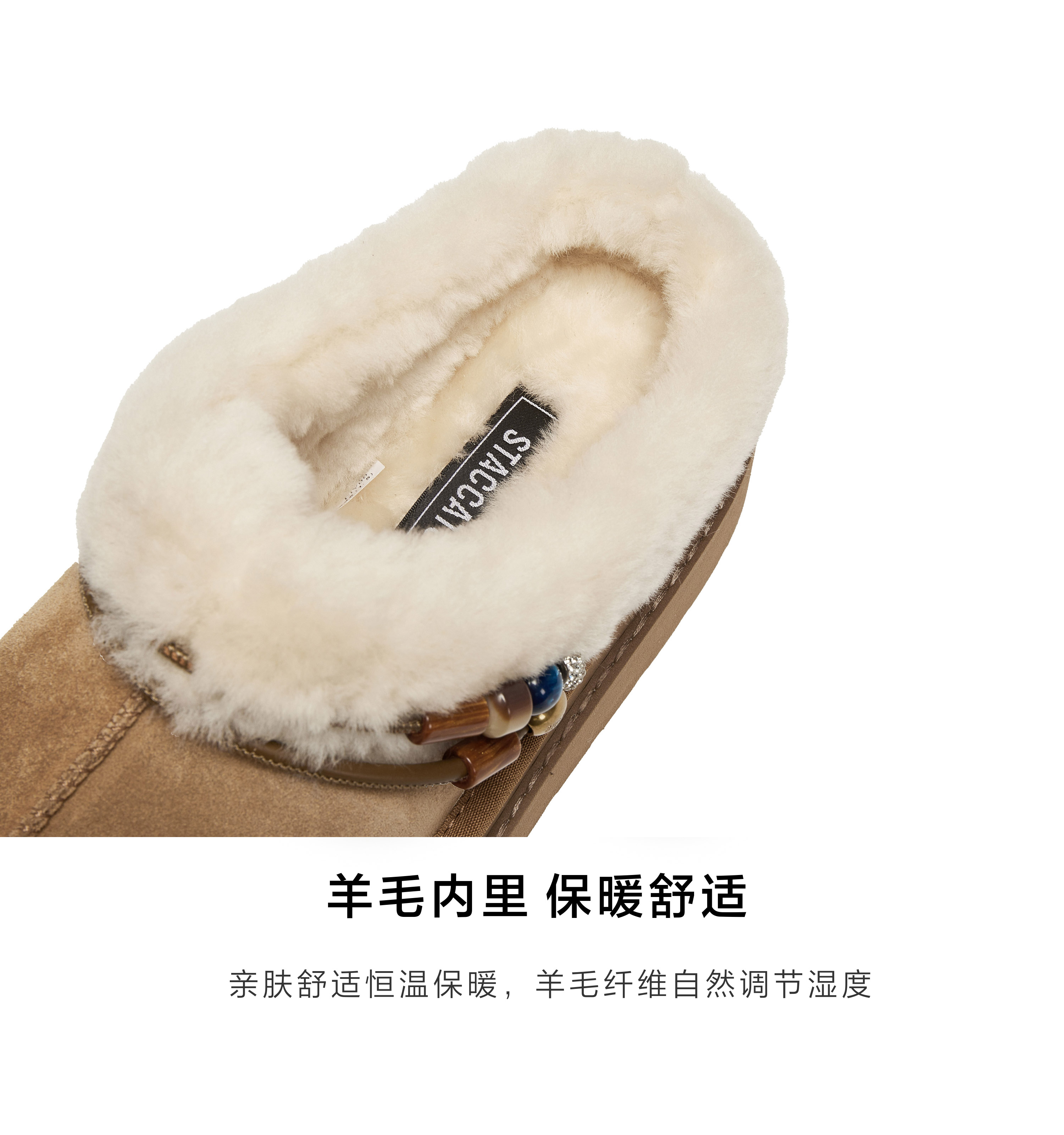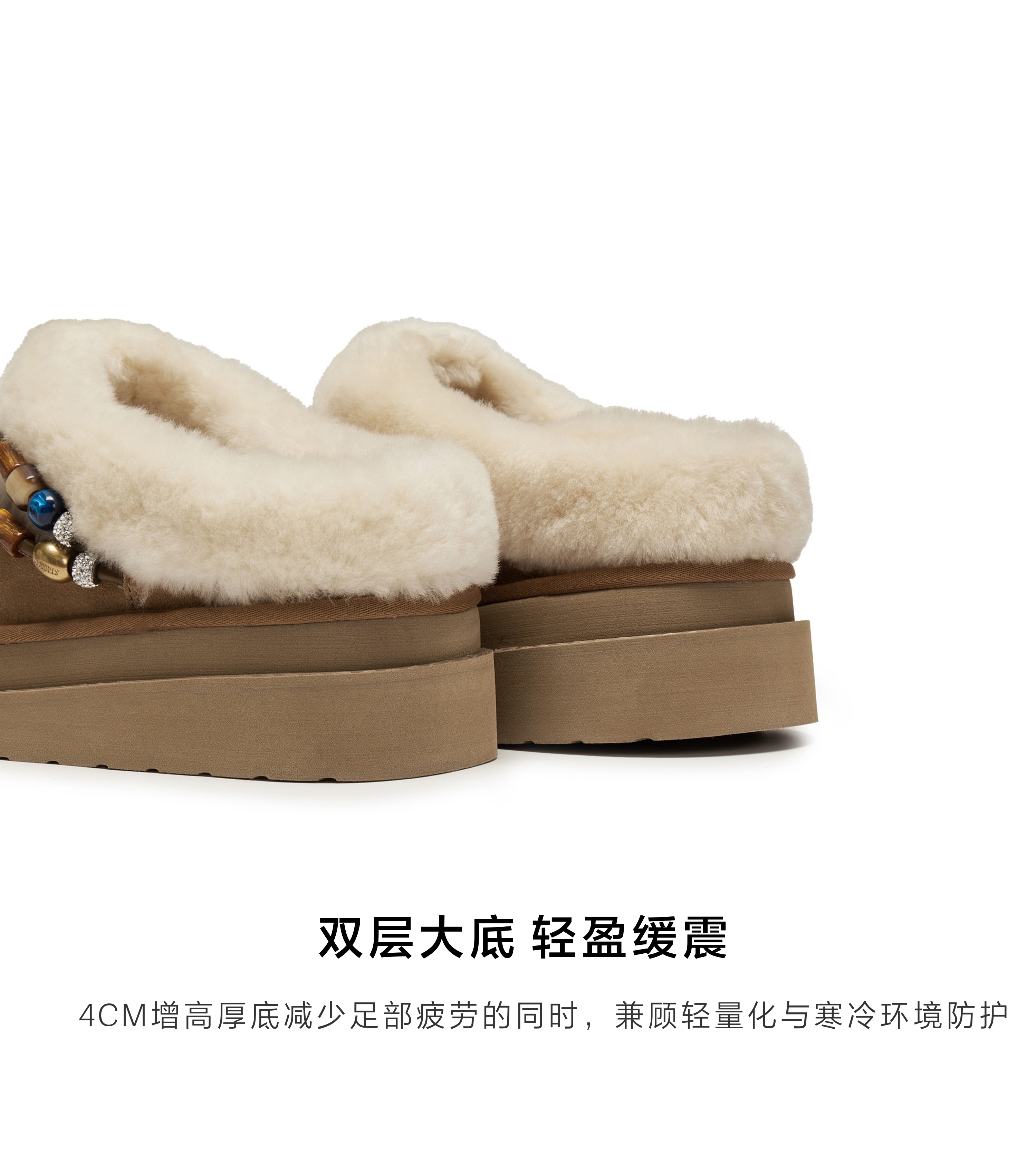 | 帮面材质:牛剖层革 | 配跟:无 | 上市时间:2025年冬季 | 鞋类流行款式:雪地靴 | 鞋头款式:圆头 |