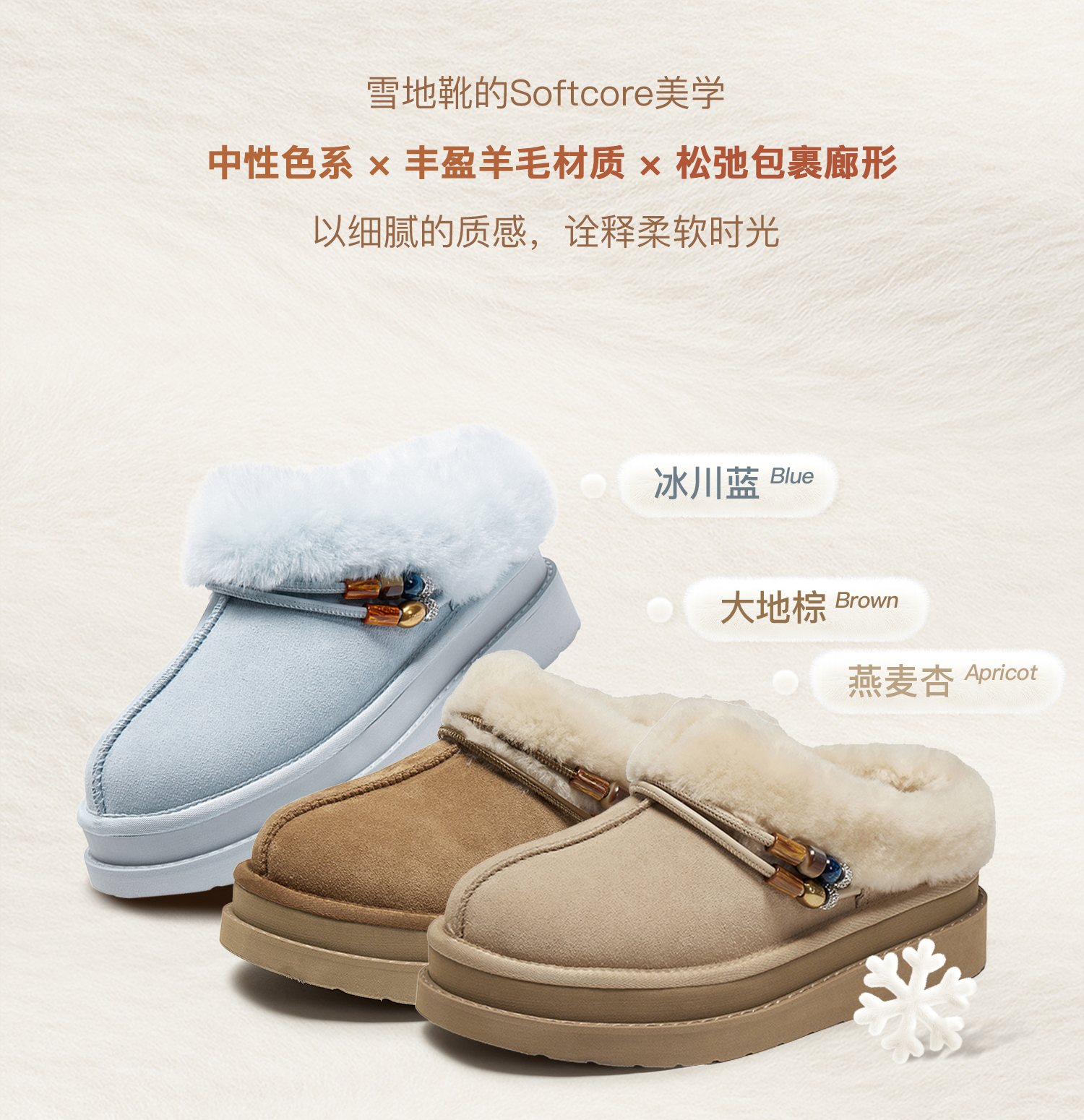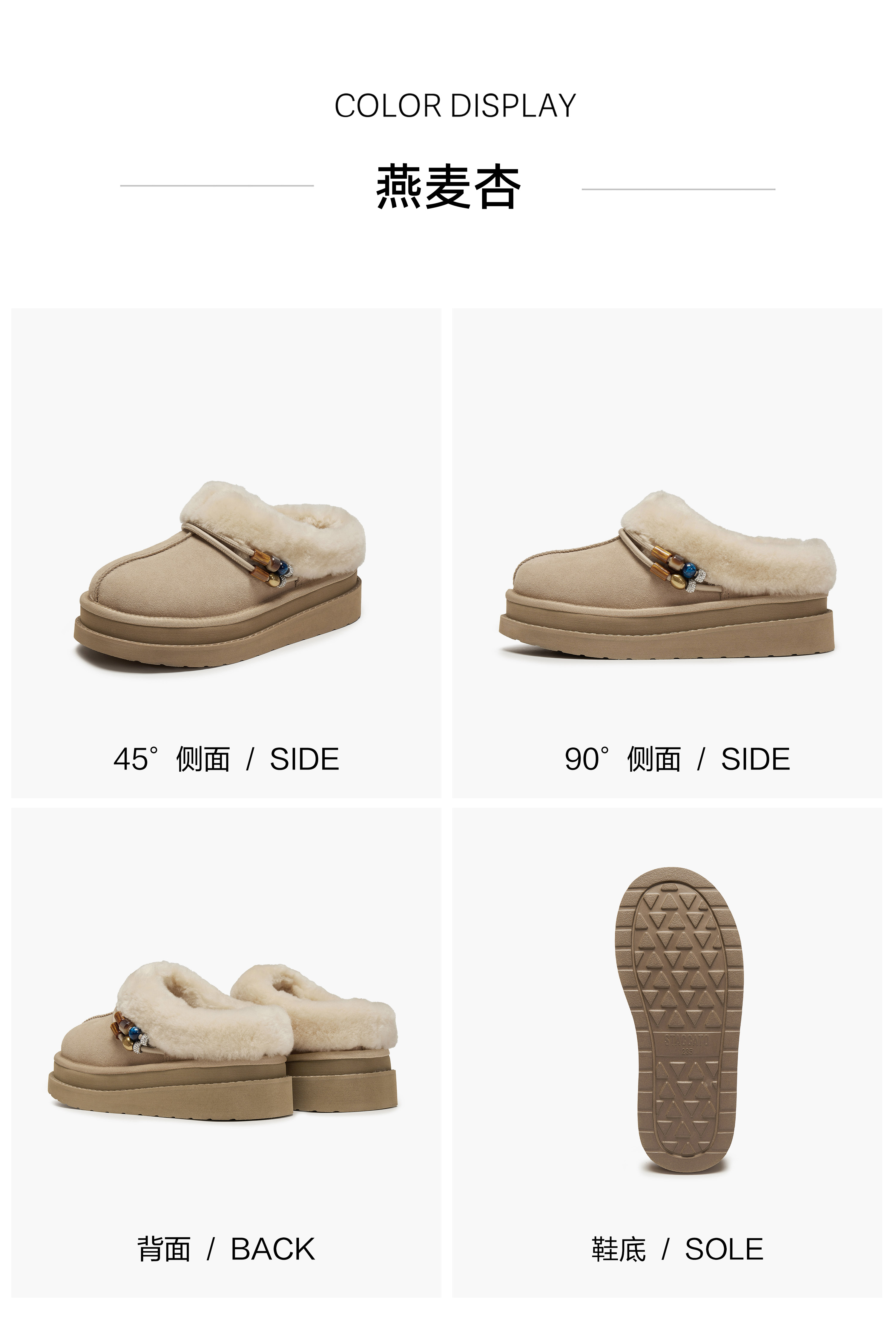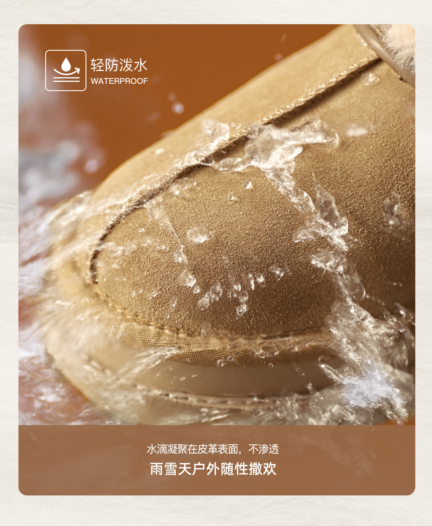 | 帮面材质:牛剖层革 | 配跟:无 | 上市时间:2025年冬季 | 鞋类流行款式:雪地靴 | 鞋头款式:圆头 |