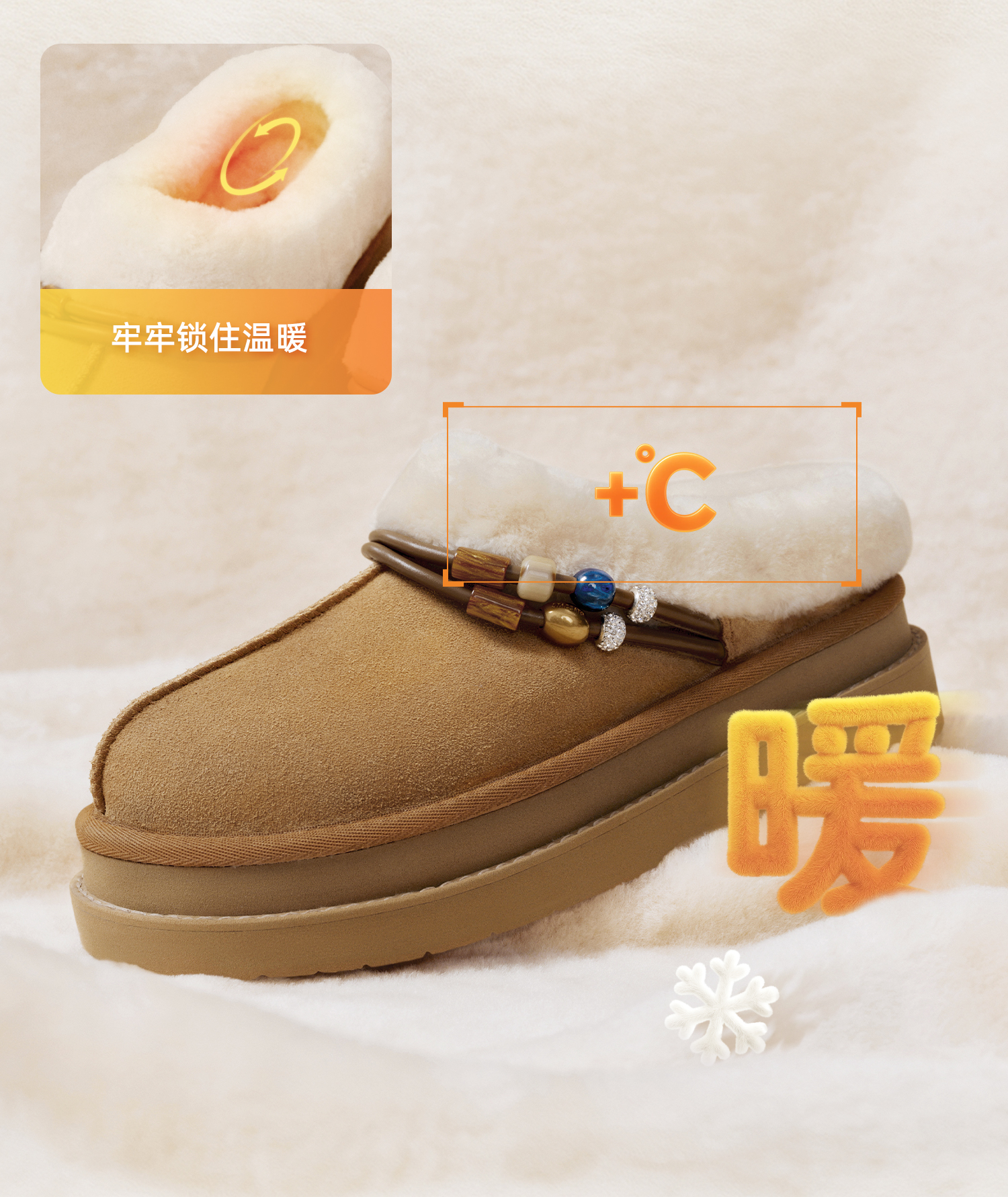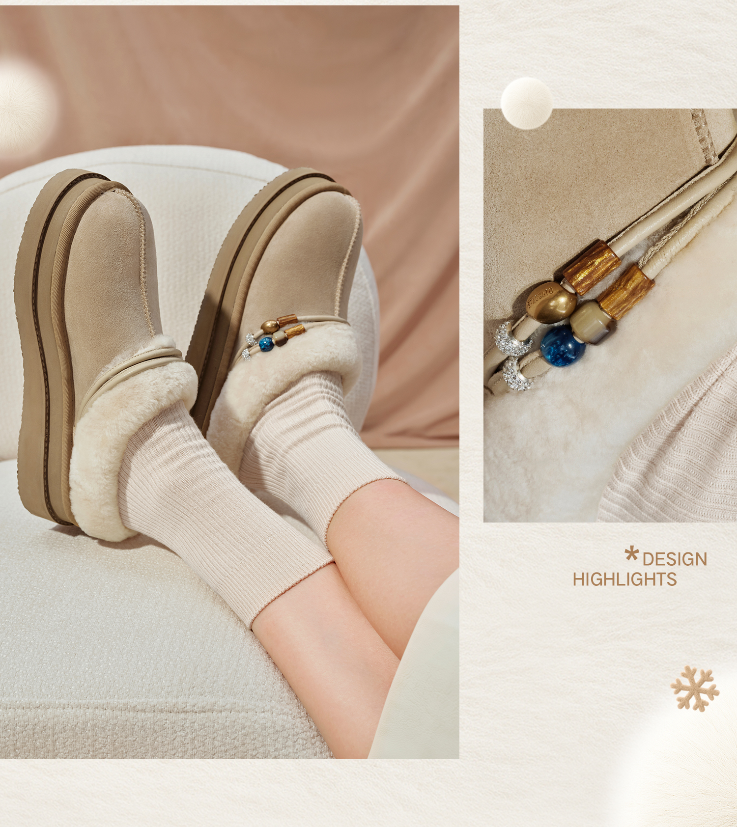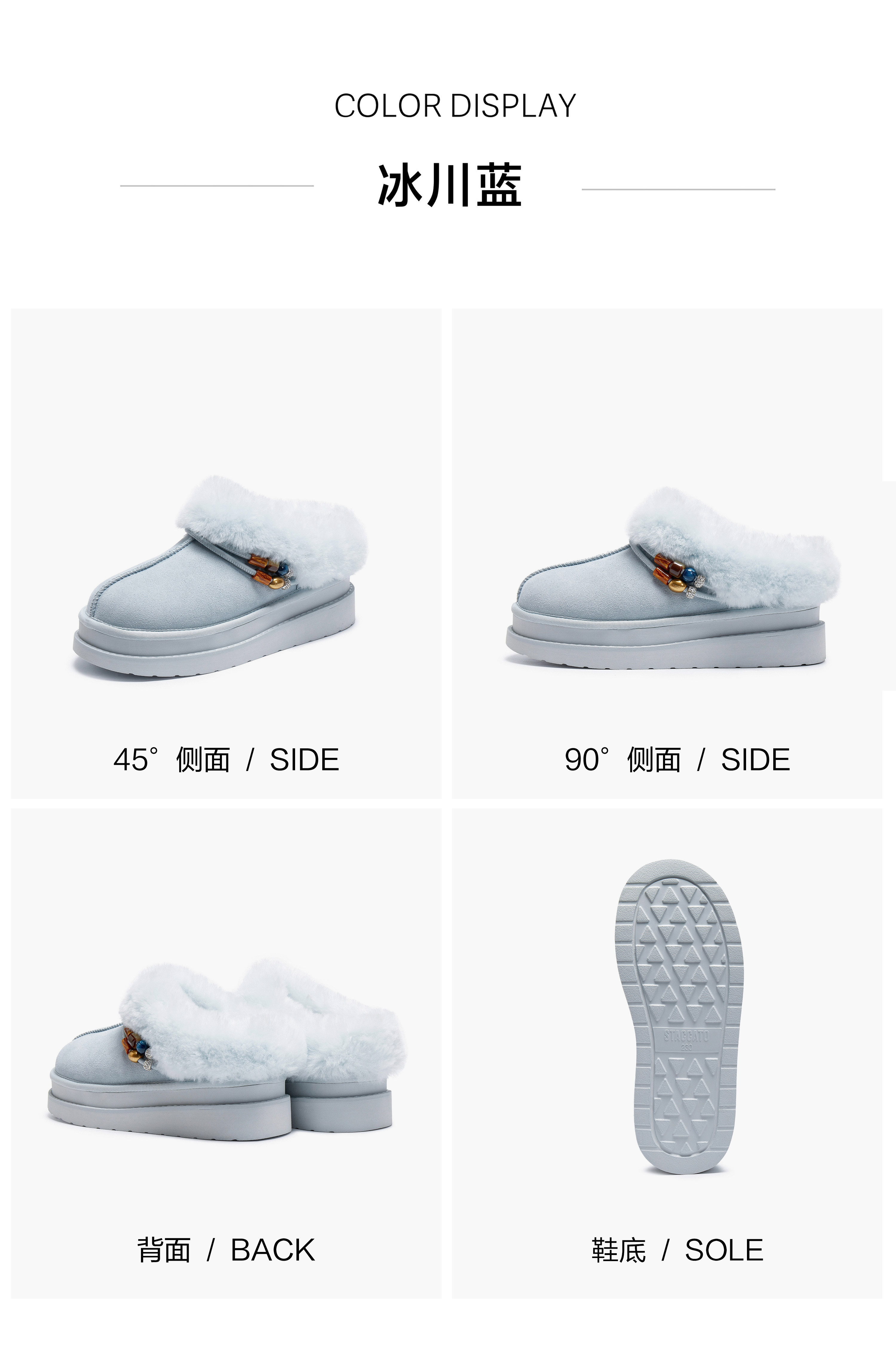 | 帮面材质:牛剖层革 | 配跟:无 | 上市时间:2025年冬季 | 鞋类流行款式:雪地靴 | 鞋头款式:圆头 |