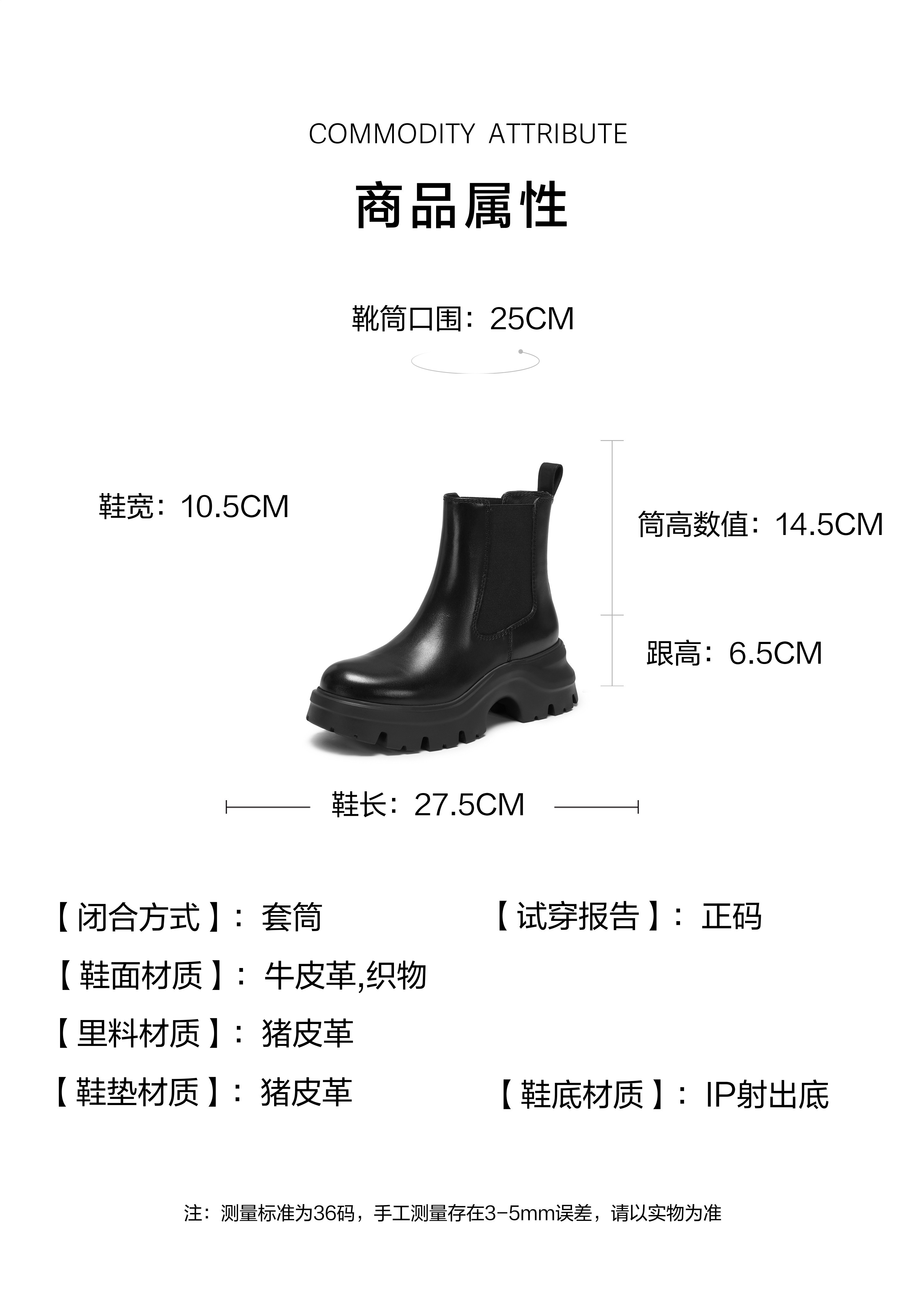 | 参考鞋宽(女):10.5CM | 风格:时尚潮流 | 鞋面内里材质:猪皮革 | 色系:黑色 | 跟高数值:6.5CM |