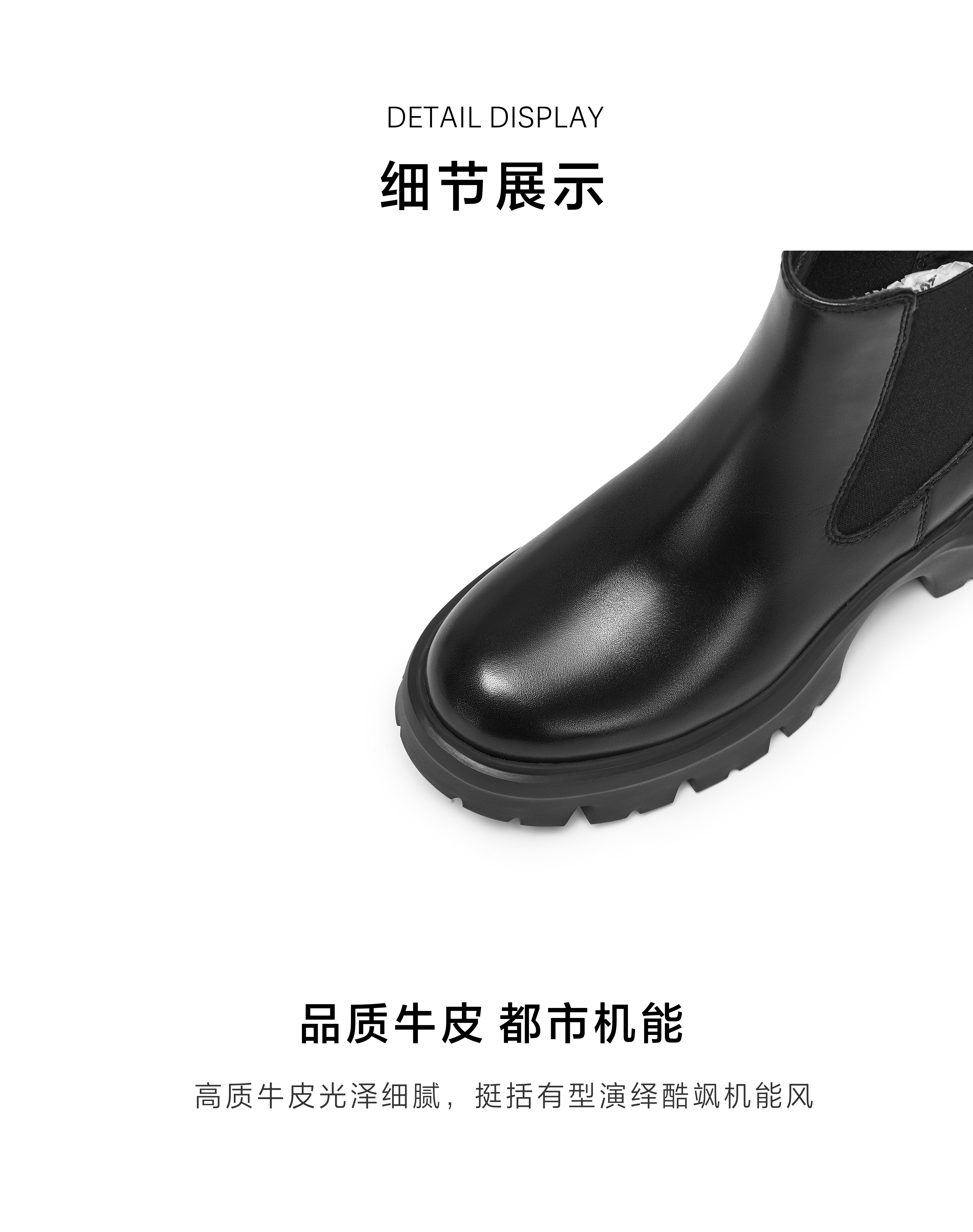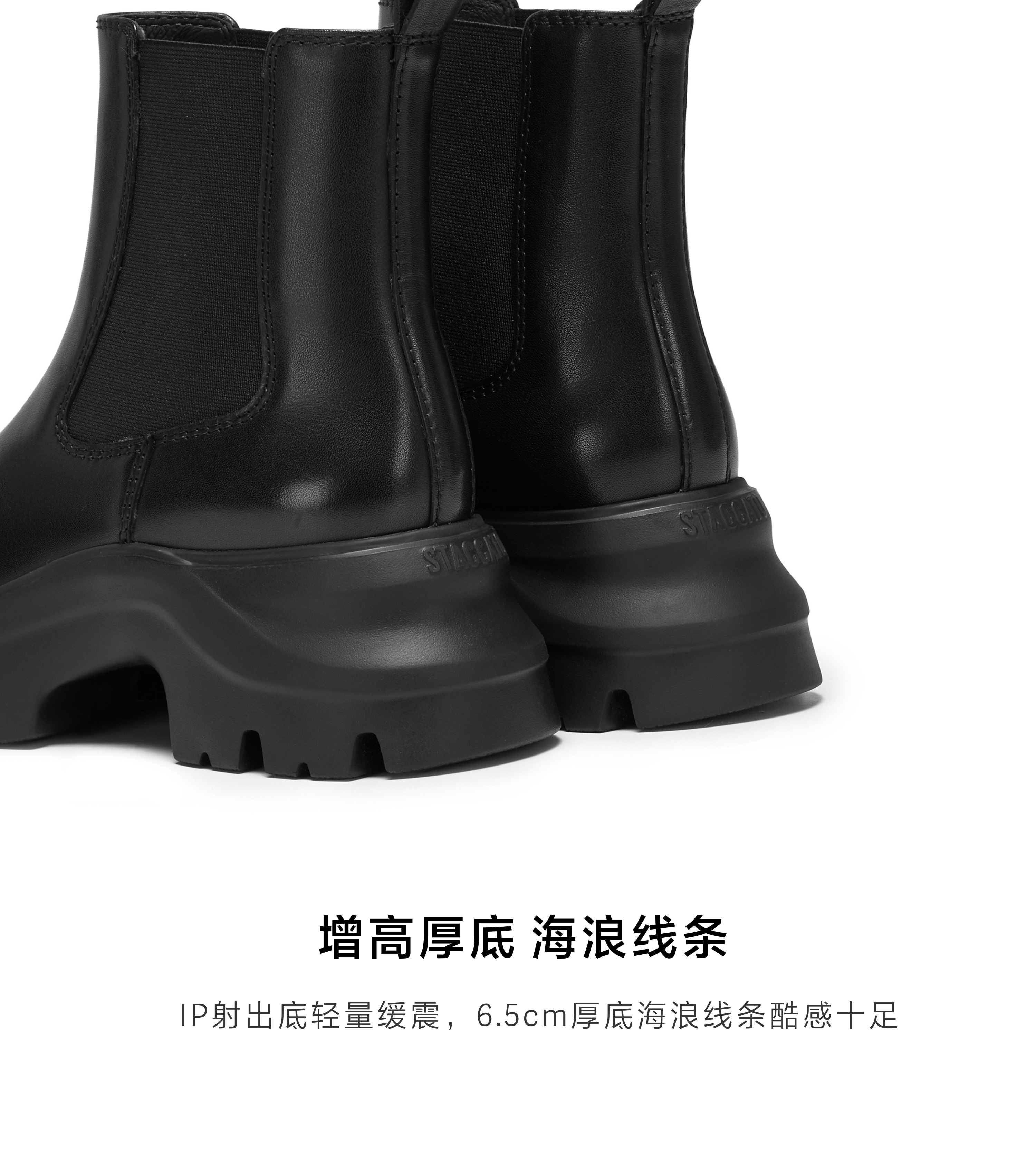 | 鞋底材质:IP射出底 | 靴筒内里材质:猪皮革 | 内增高:无 | 鞋面材质:织物牛皮革 | 闭合方式:套筒 |