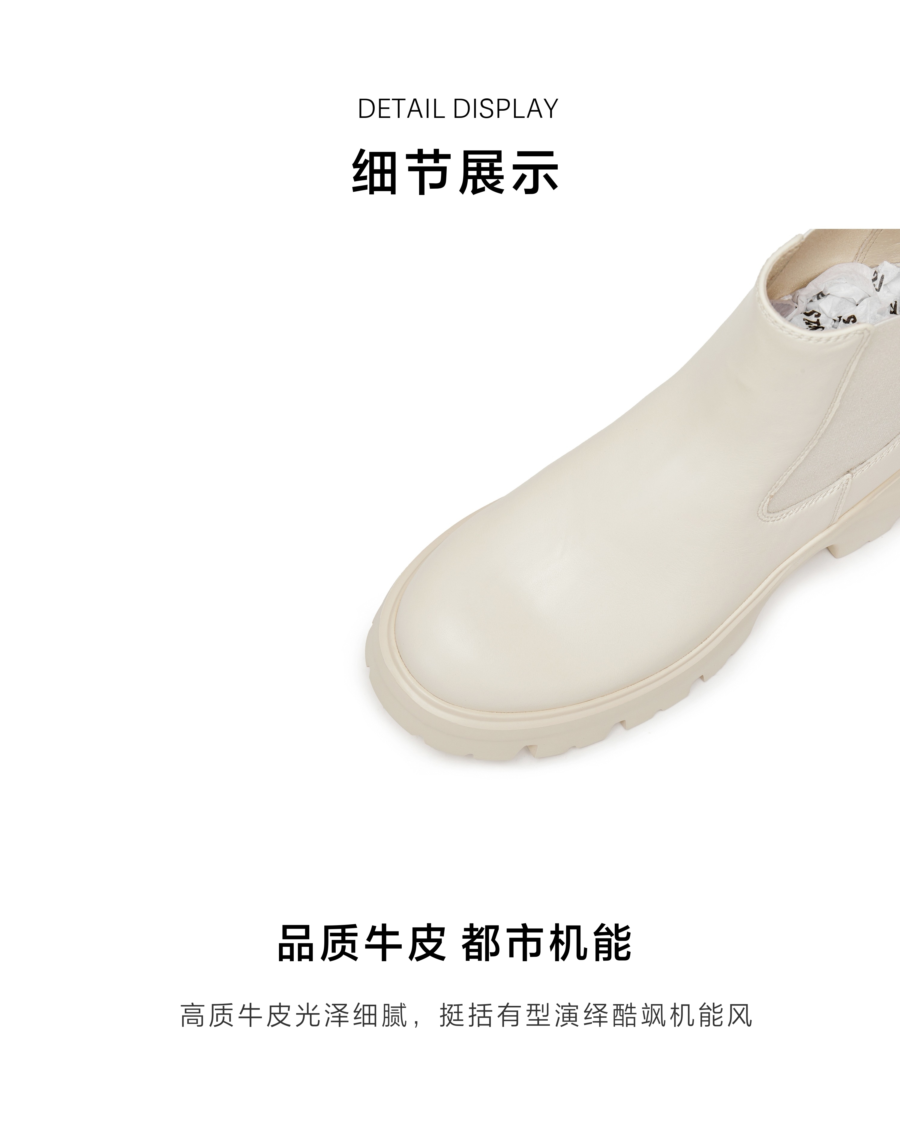 | 鞋底材质:IP射出底 | 靴筒内里材质:猪皮革 | 内增高:无 | 鞋面材质:织物牛皮革 | 闭合方式:套筒 |