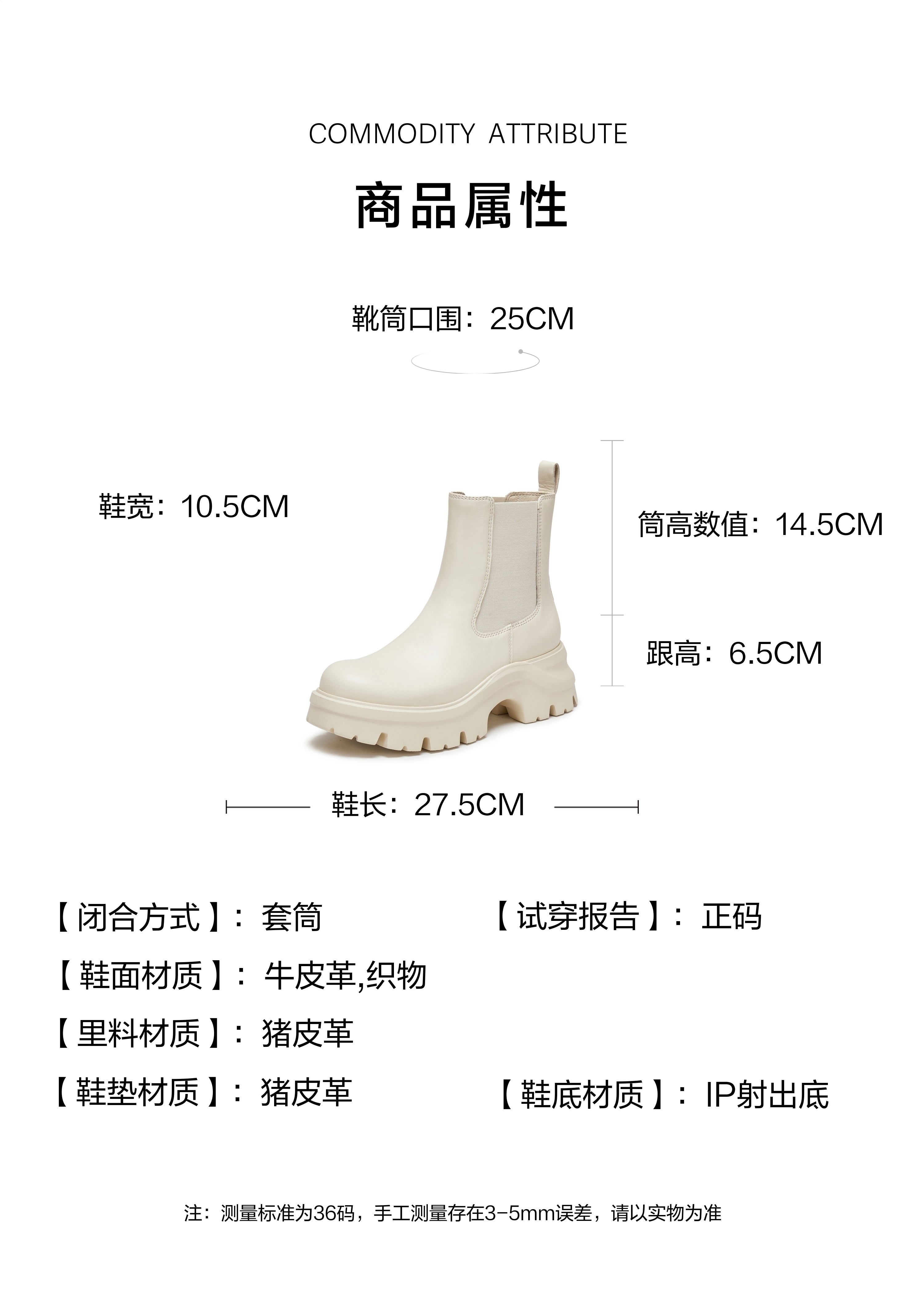 | 参考鞋宽(女):10.5CM | 风格:时尚潮流 | 鞋面内里材质:猪皮革 | 色系:米色 | 跟高数值:6.5CM |