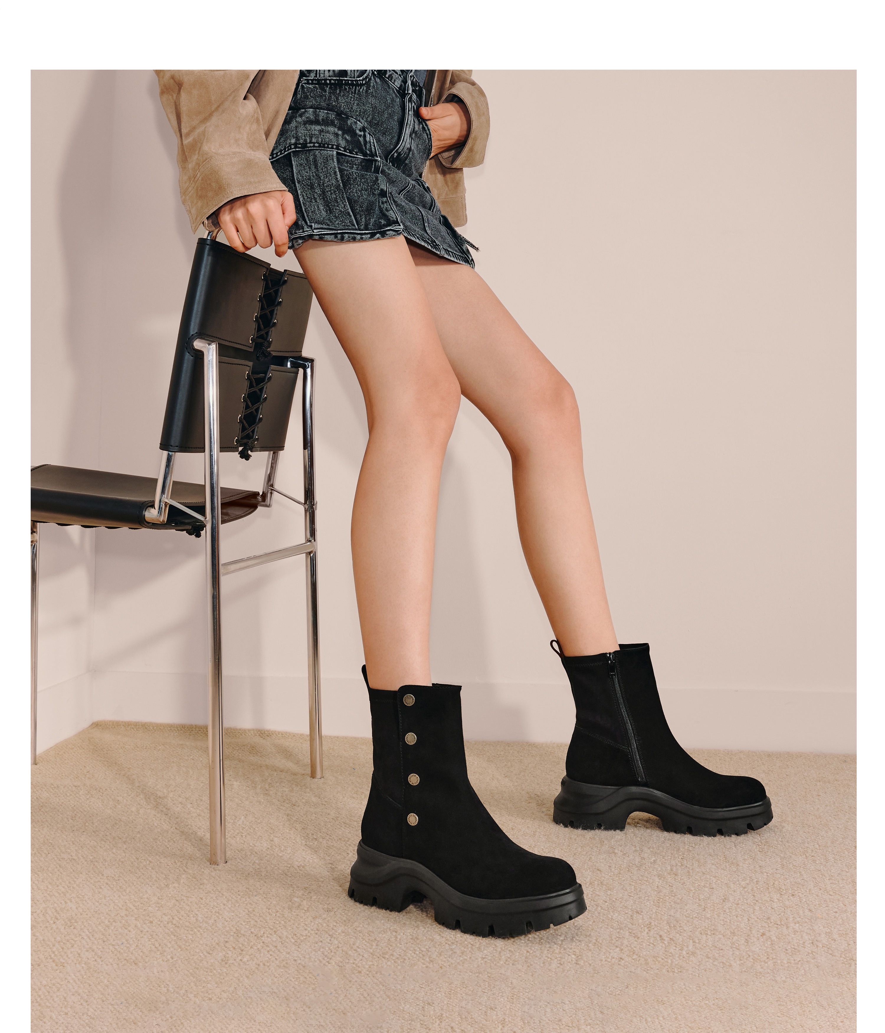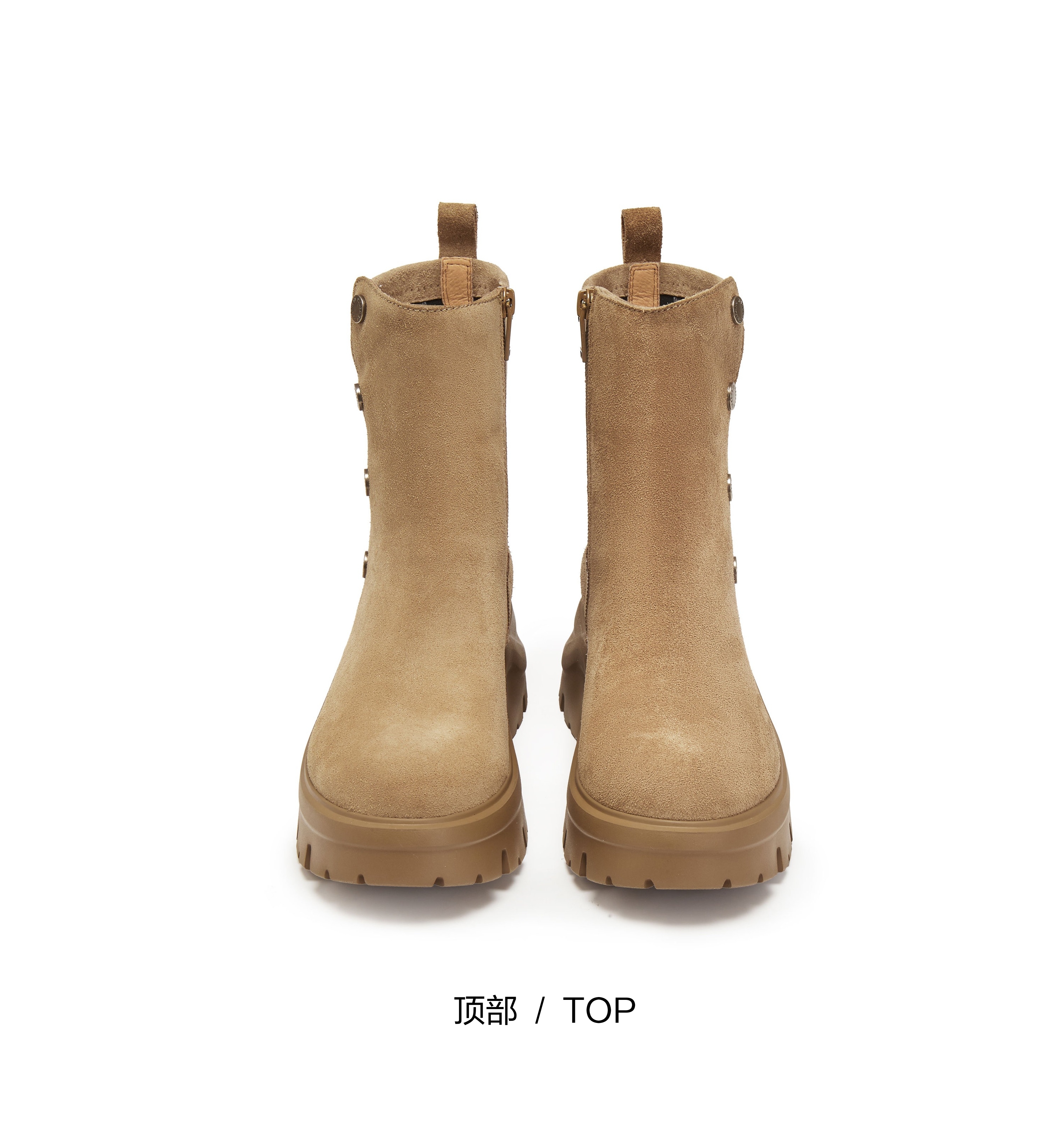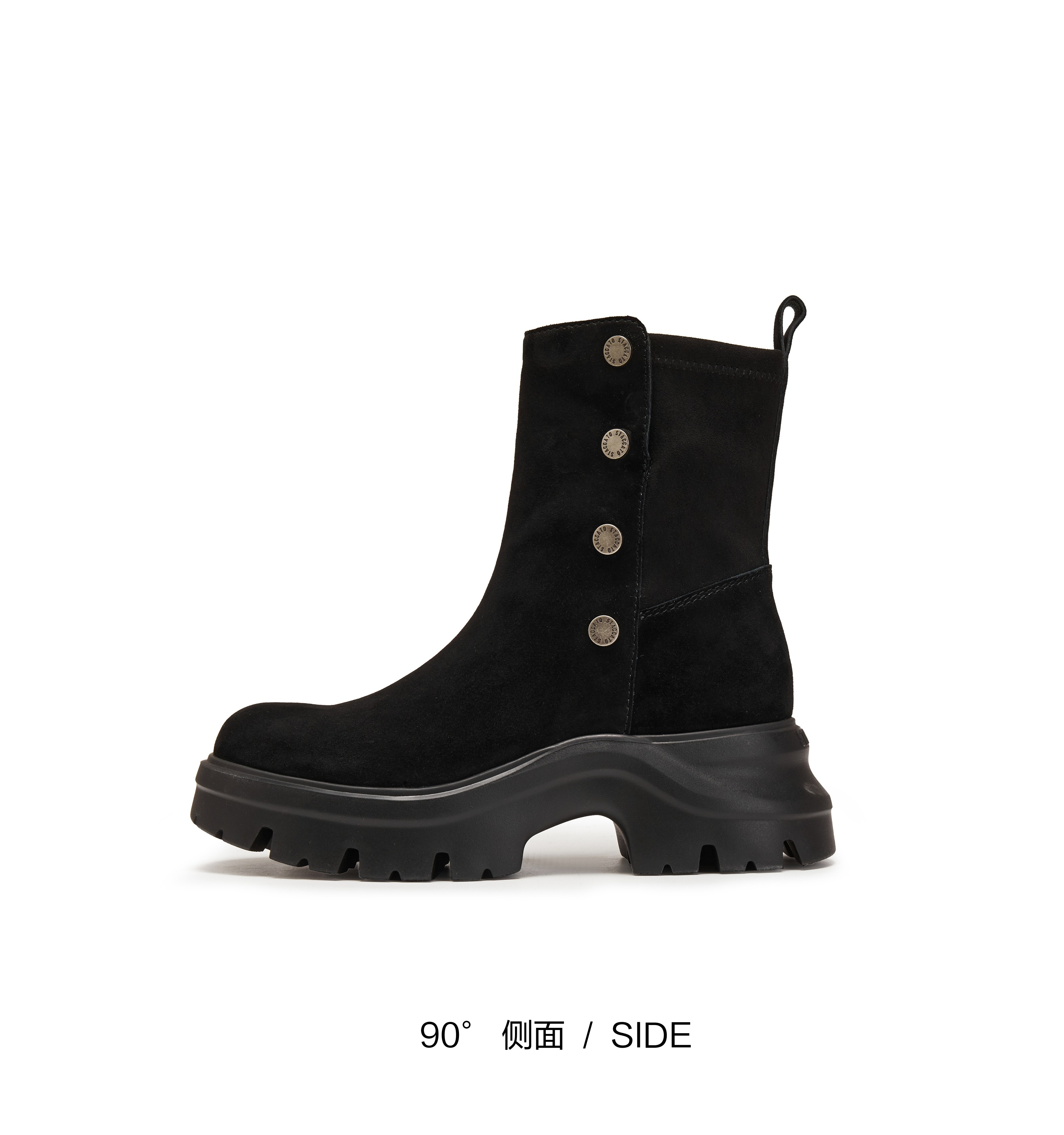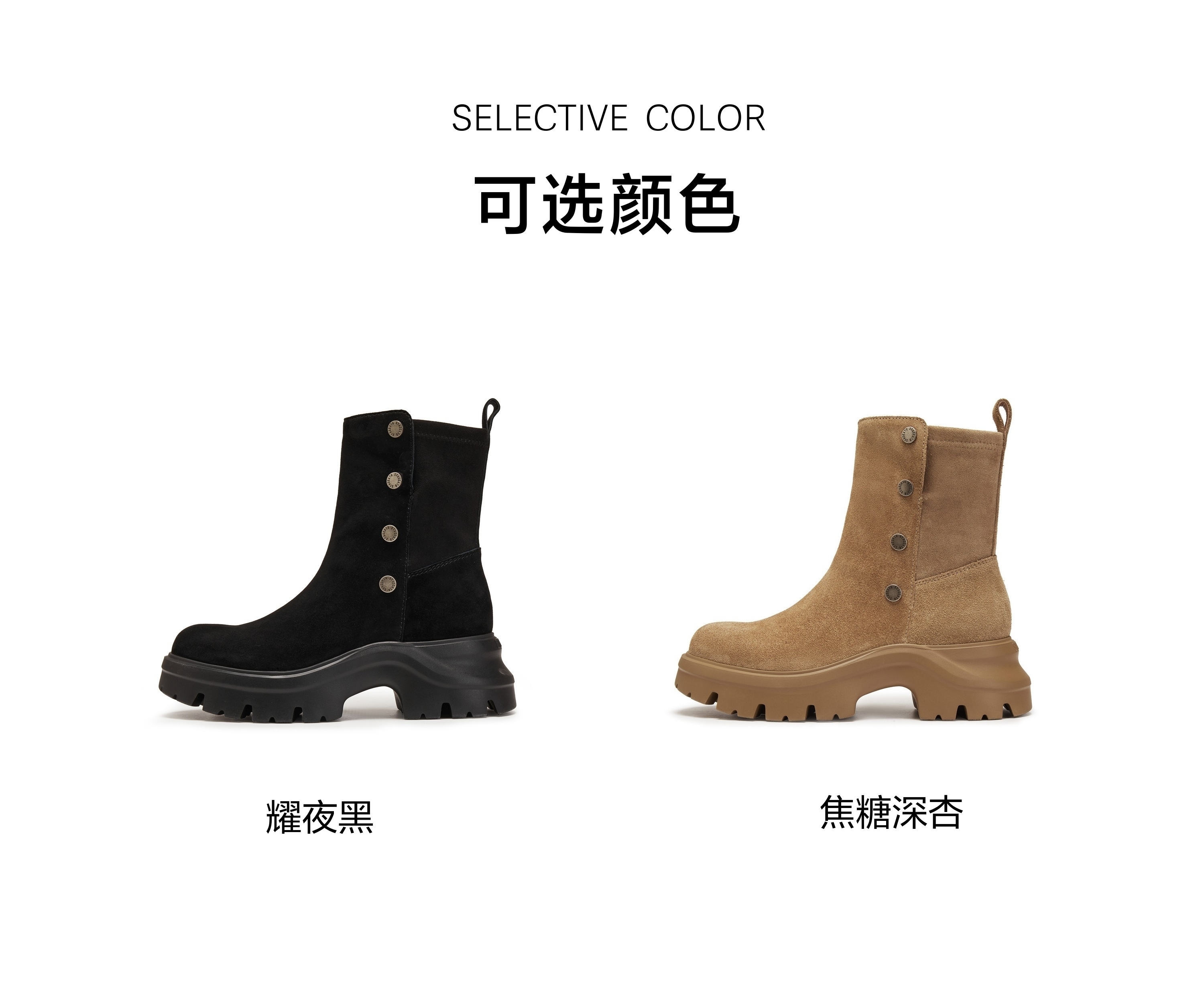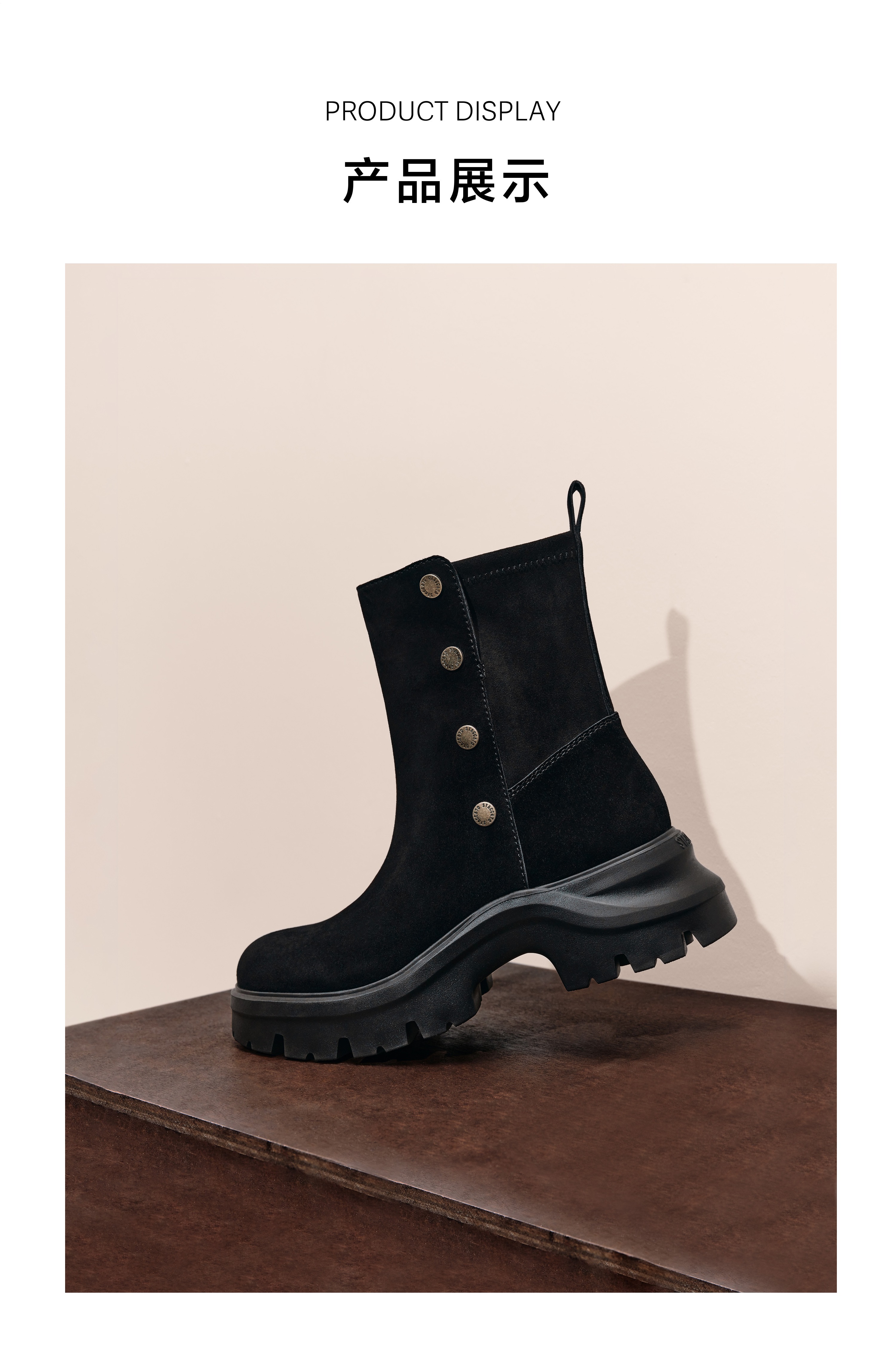 | 配跟:无 | 靴筒口围:25.5CM | 上市时间:2025年冬季 | 鞋类流行款式:中靴 | 鞋头款式:圆头 |