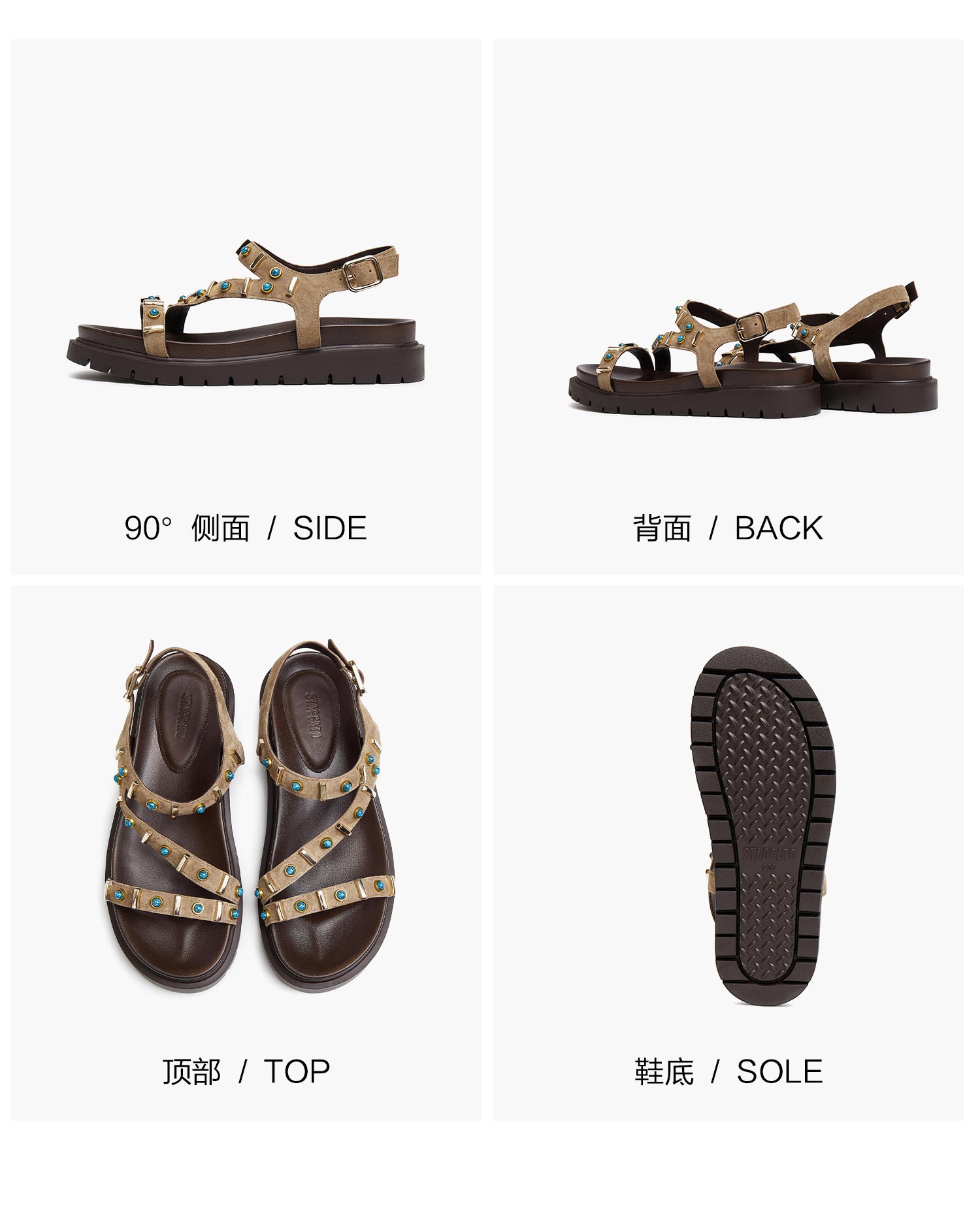 思加图(STACCATO),一个代表着年轻时尚、多元化的时装鞋履品牌,目标将时尚潮流带到女性的现实生活中。“STACCATO”是乐章上的音符,轻轻一点,谱出优美的旋律,为音乐带来多样性。穿上STACCATO单鞋的时代女性,踏出自信又轻松的脚步,犹如跳跃的音符,反映年轻与时尚的生活态度。目前品牌开设门店已超1100家,遍布中国、韩国、澳洲、新加坡、马来西亚、罗马尼亚、沙特阿拉伯等地。