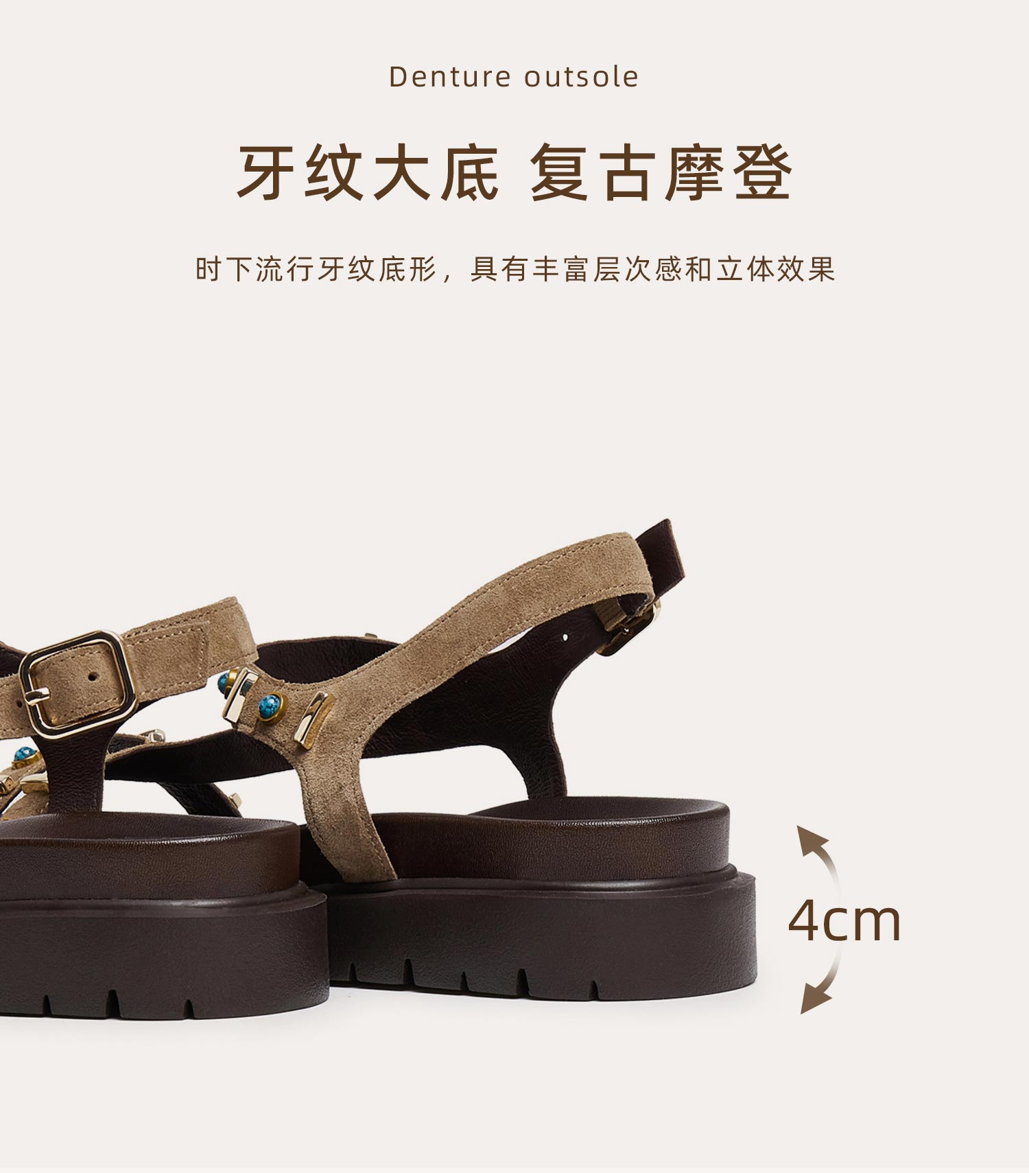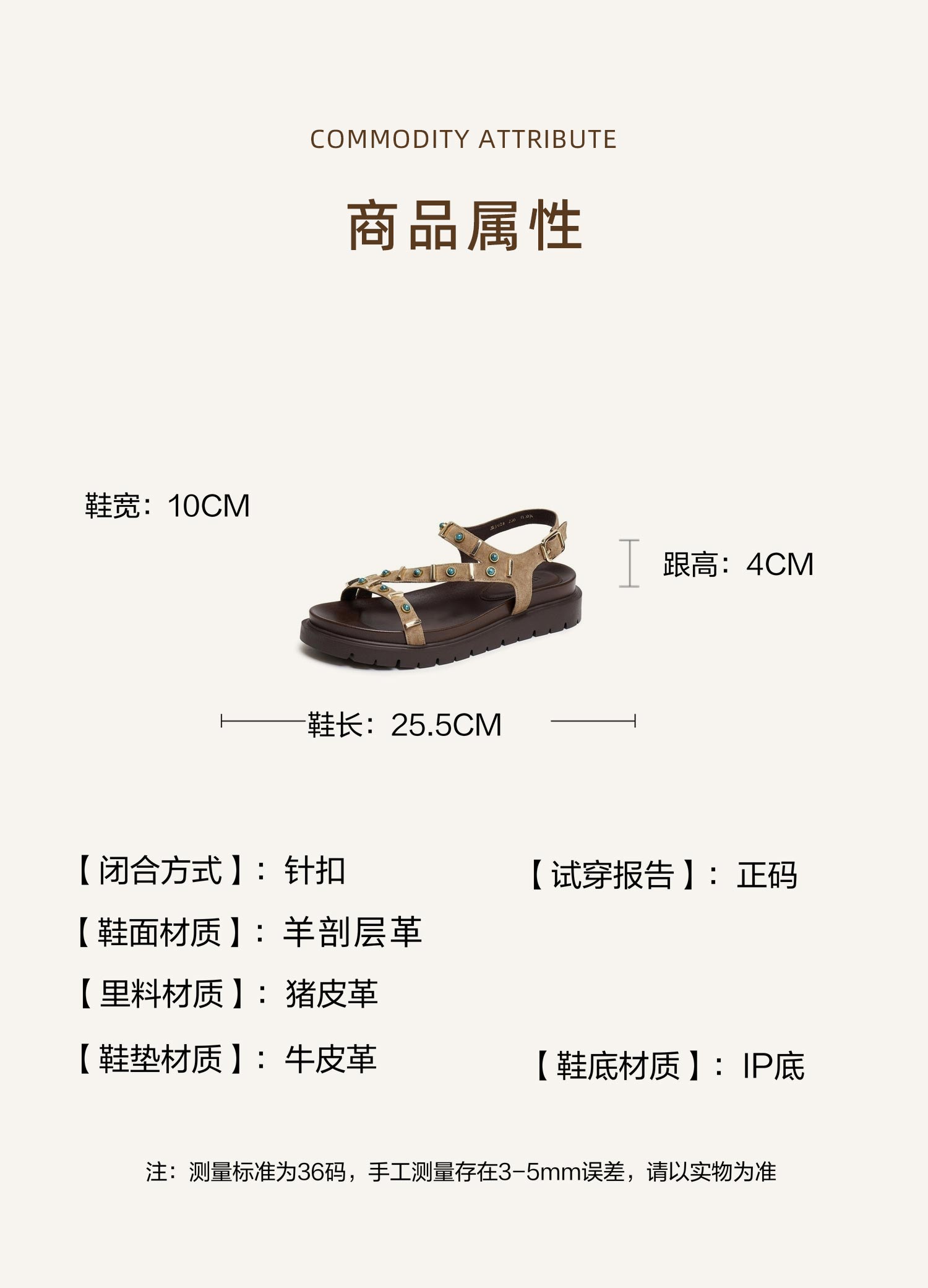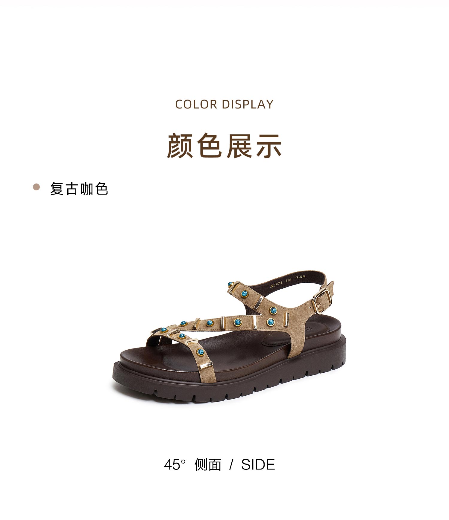 | 上市时间:2025年夏季 | 款式季节:夏季 | 鞋垫材质:牛皮革 | 前掌高度:3CM | 皮质特征:绒面皮 |