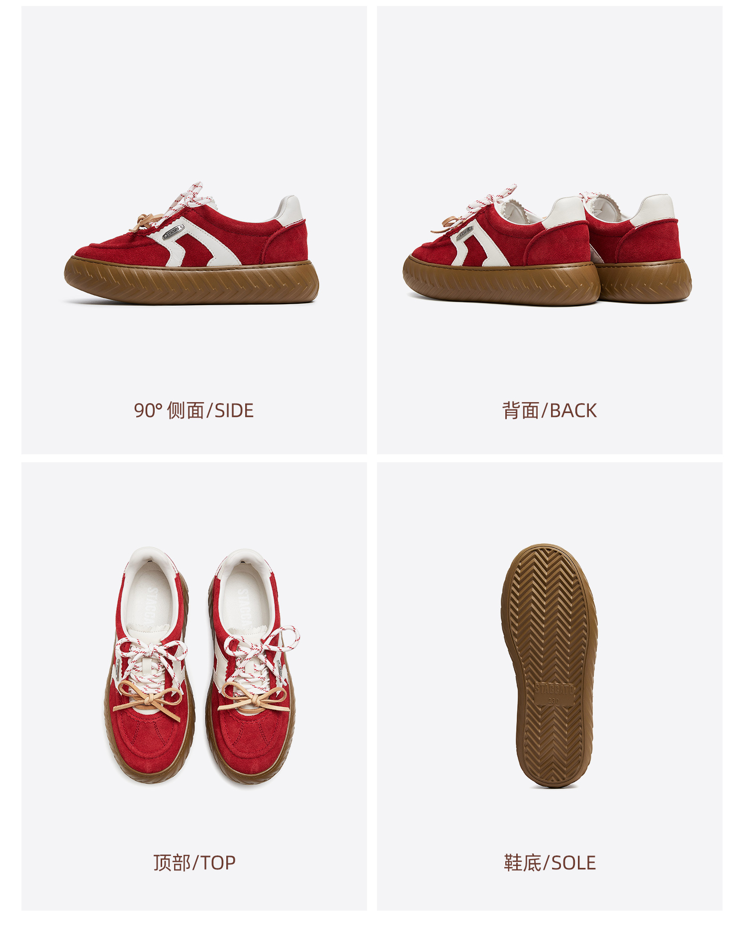 | 鞋帮:低帮 | 鞋头款式:圆头 | 鞋底材质:IP射出底 | 鞋面图案:拼色 | 鞋跟形状:厚底 |