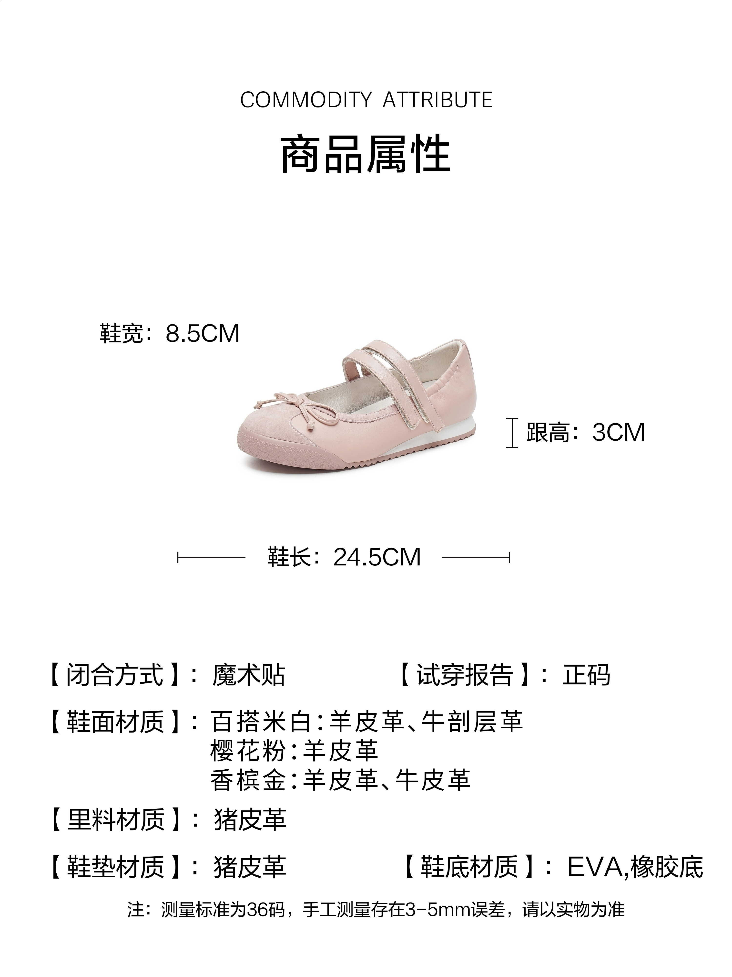 | 参考鞋宽(女):8.5CM | 风格:时尚潮流 | 年份:2025年 | 色系:粉色 | 参考标准尺码:36码 |