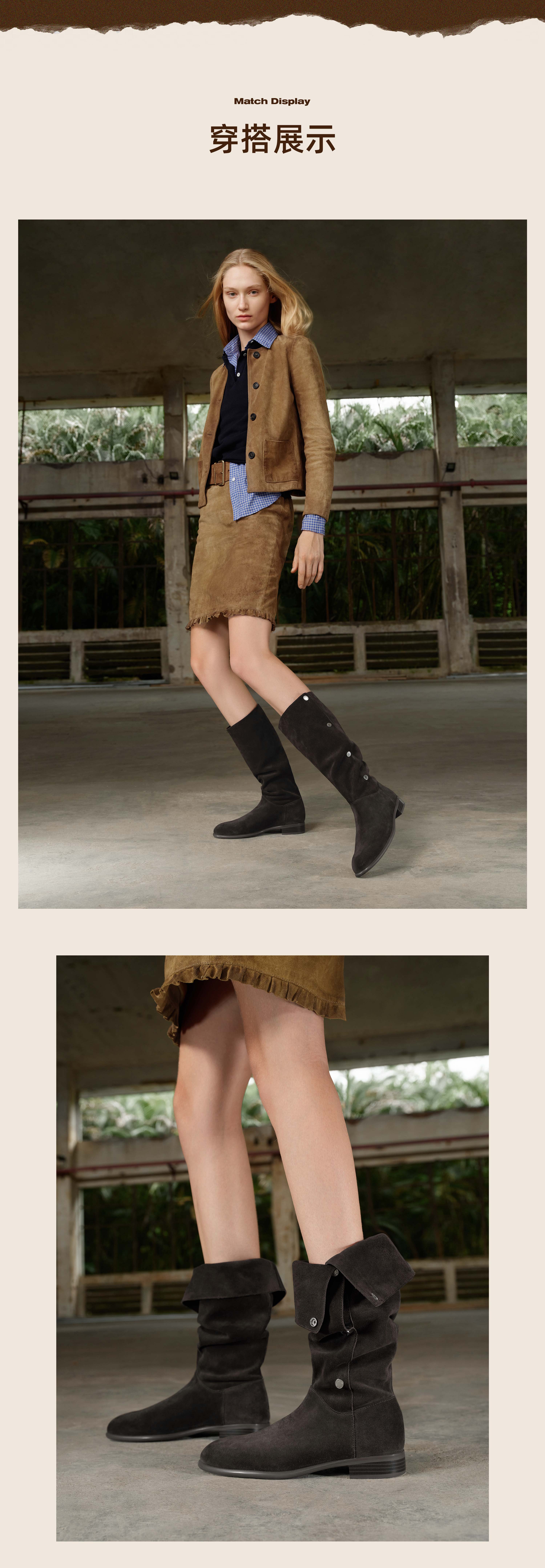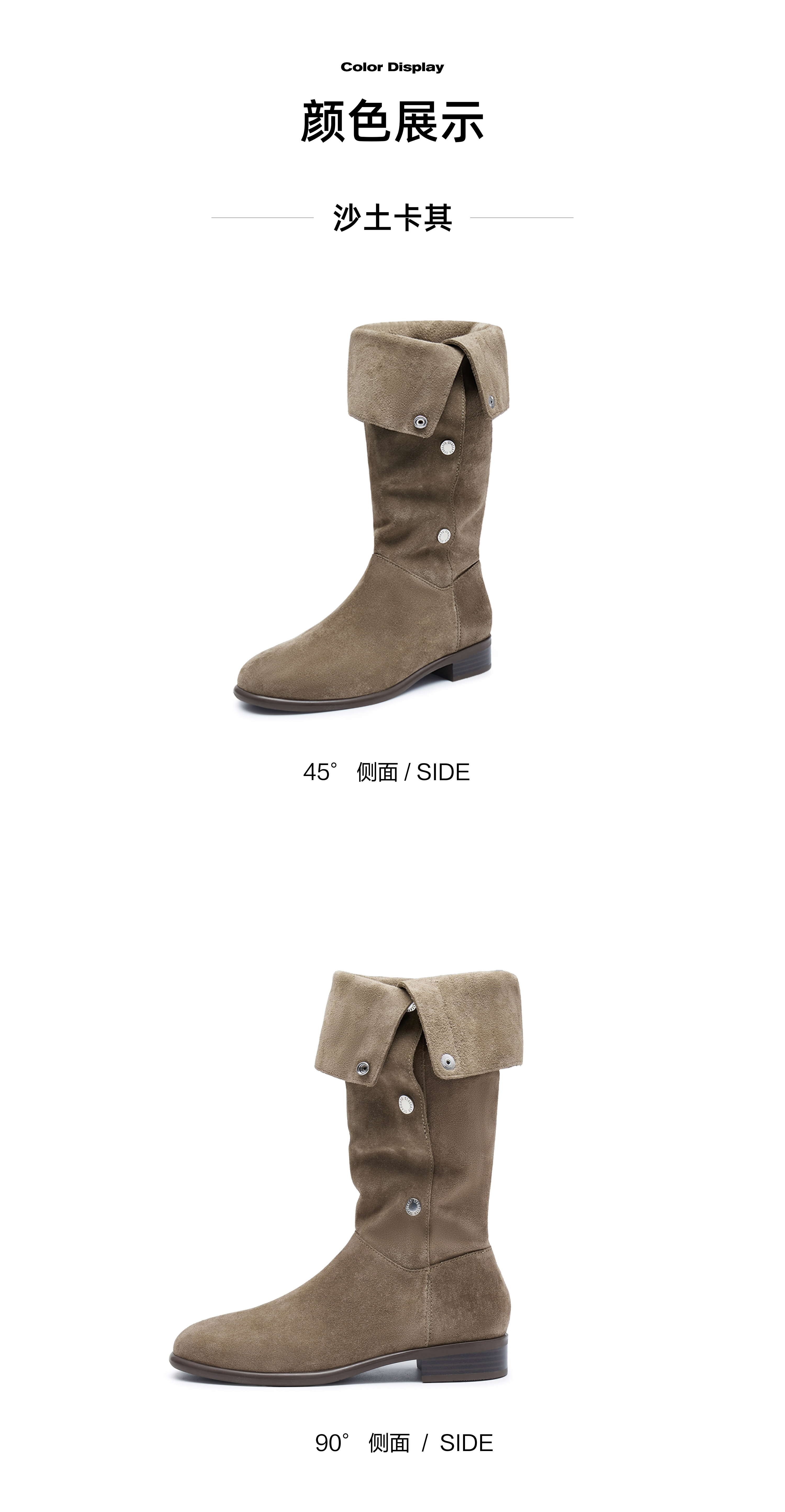 | 鞋底材质:橡胶底 | 靴筒内里材质:猪皮革 | 内增高:无 | 鞋面材质:牛剖层皮革 | 闭合方式:搭扣 |