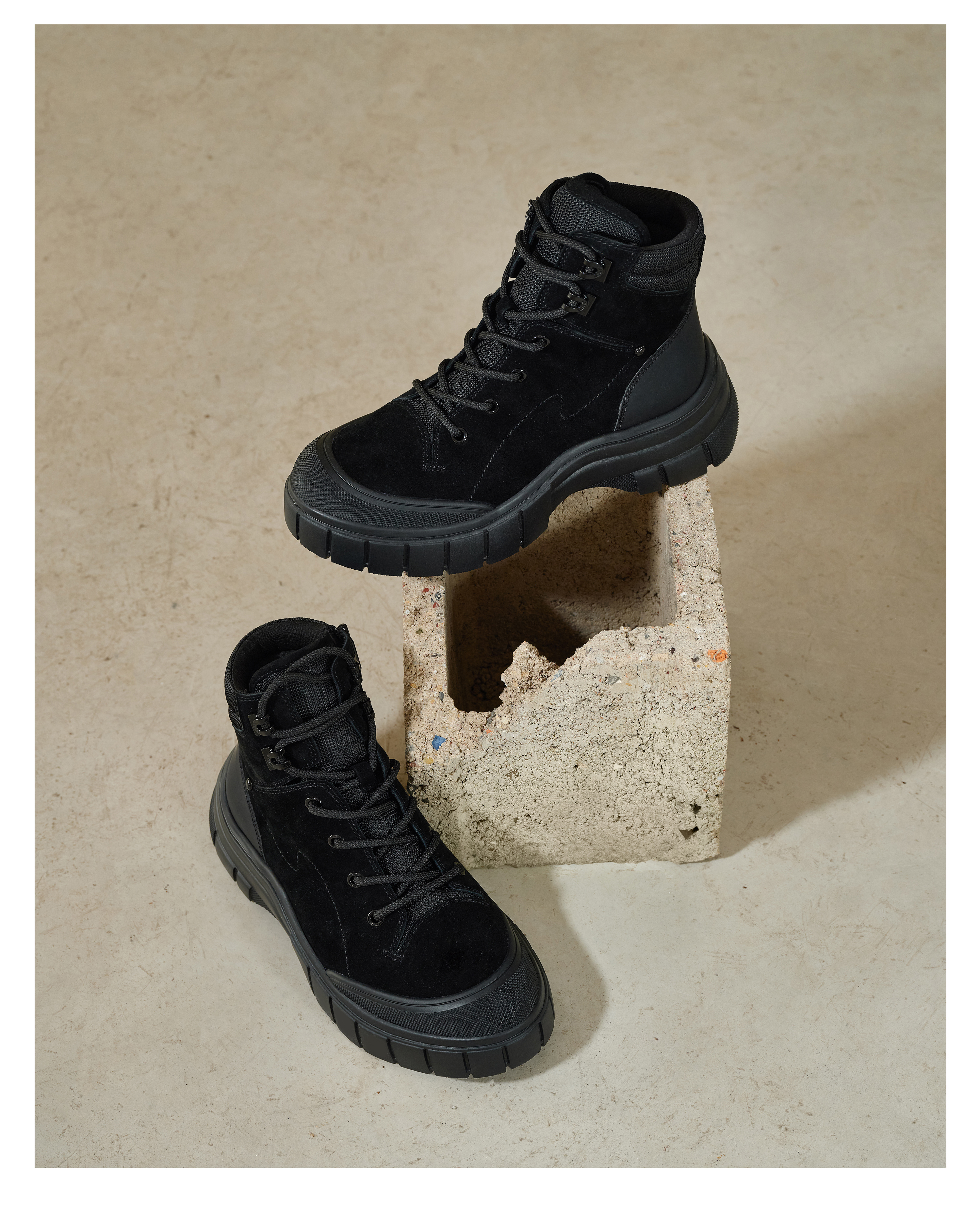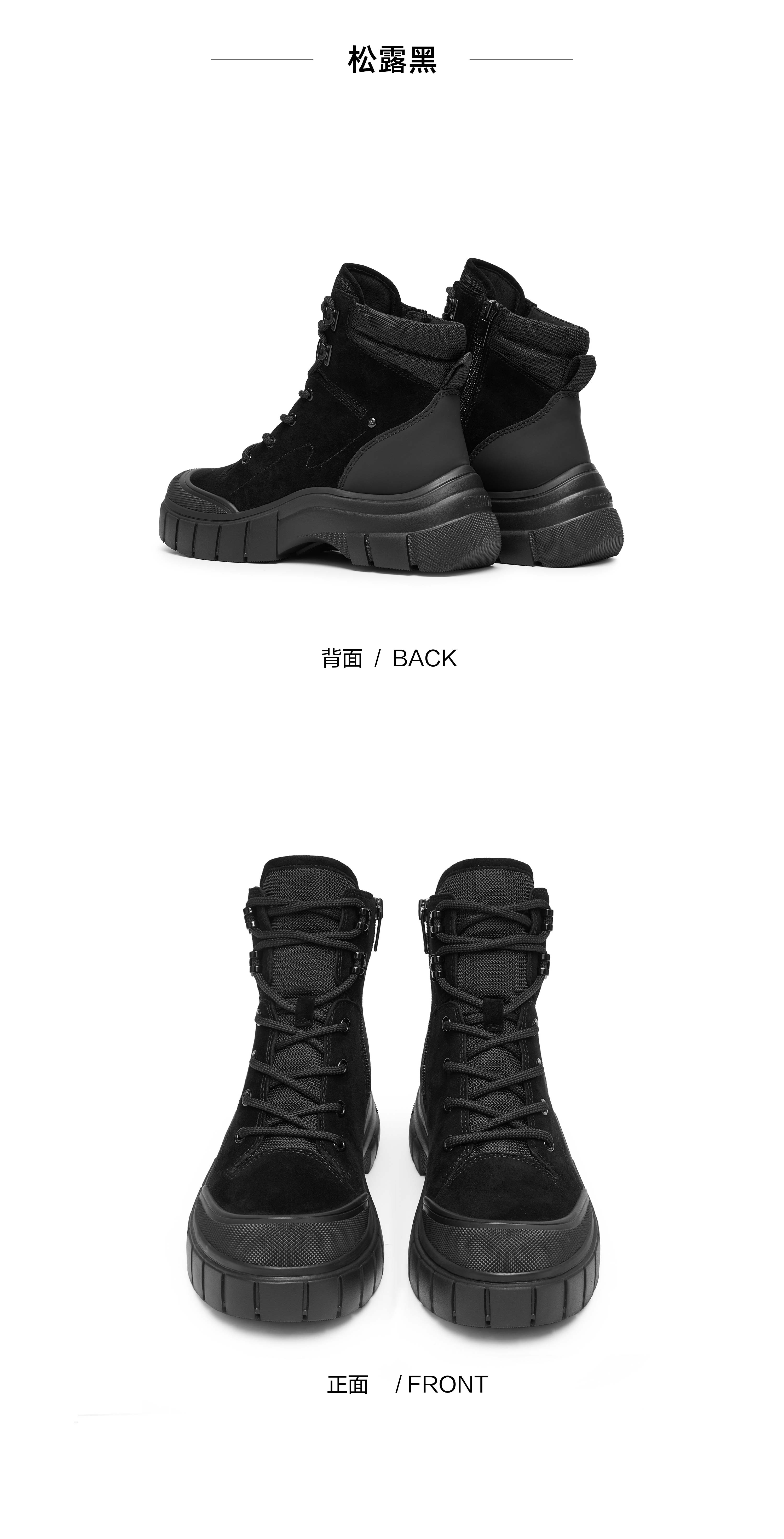 | 鞋底材质:IP发泡底 | 靴筒内里材质:织物猪皮革 | 内增高:无 | 鞋面材质:羊皮革纺织品牛皮革 | 闭合方式:系带侧拉链 |