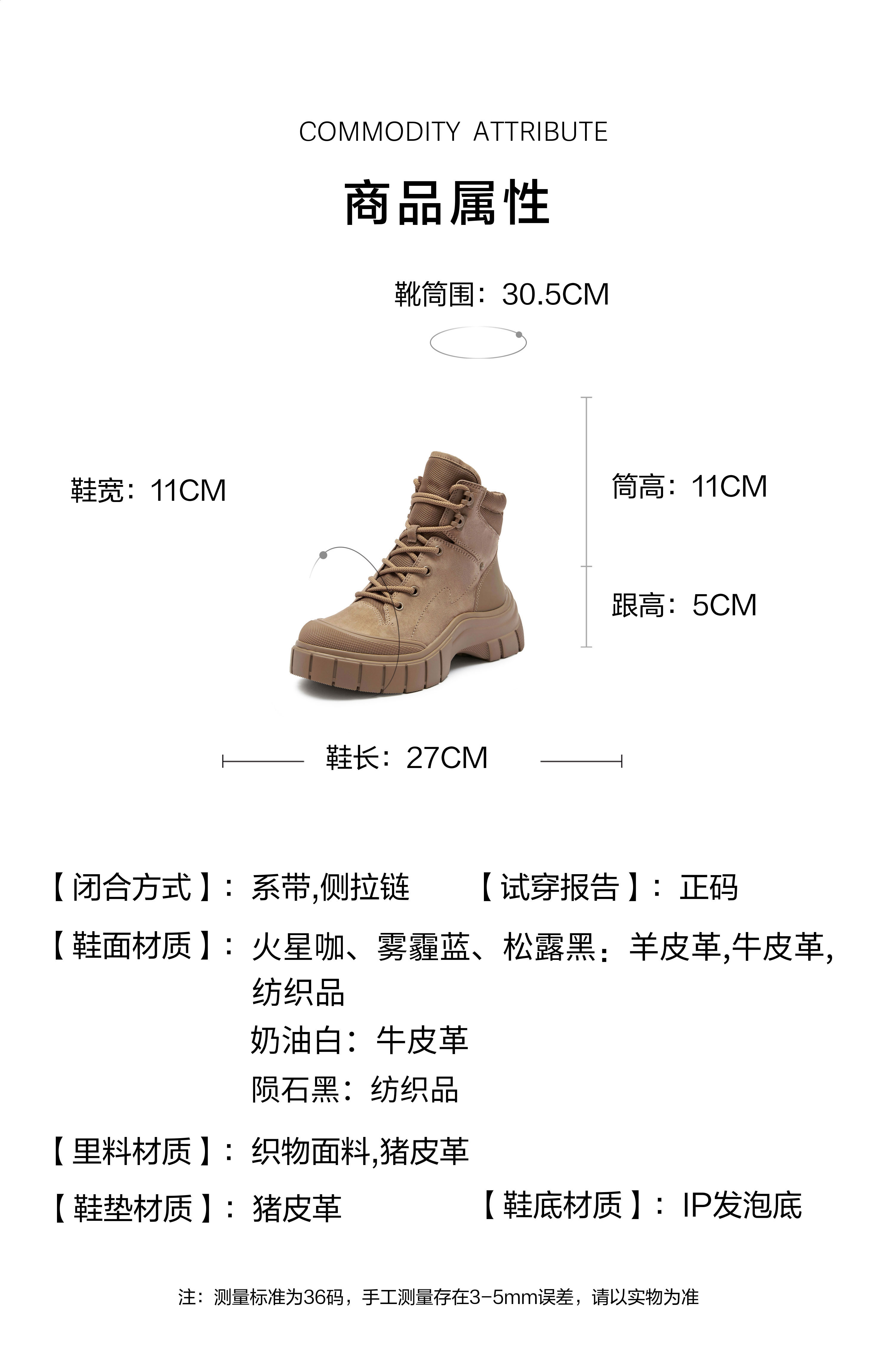 | 帮面材质:牛皮革 | 配跟:无 | 靴筒口围:30.5CM | 上市时间:2025年冬季 | 鞋类流行款式:工装靴 |