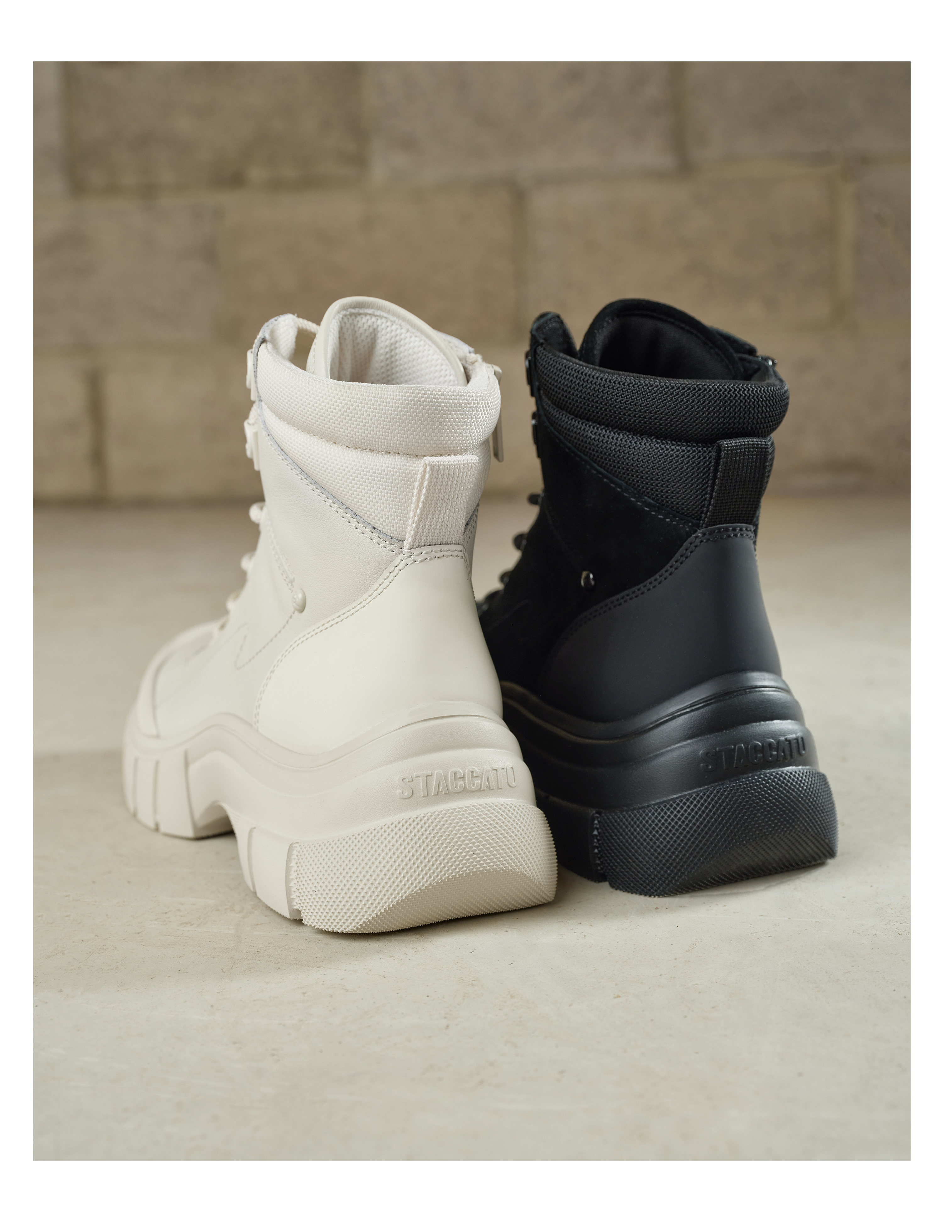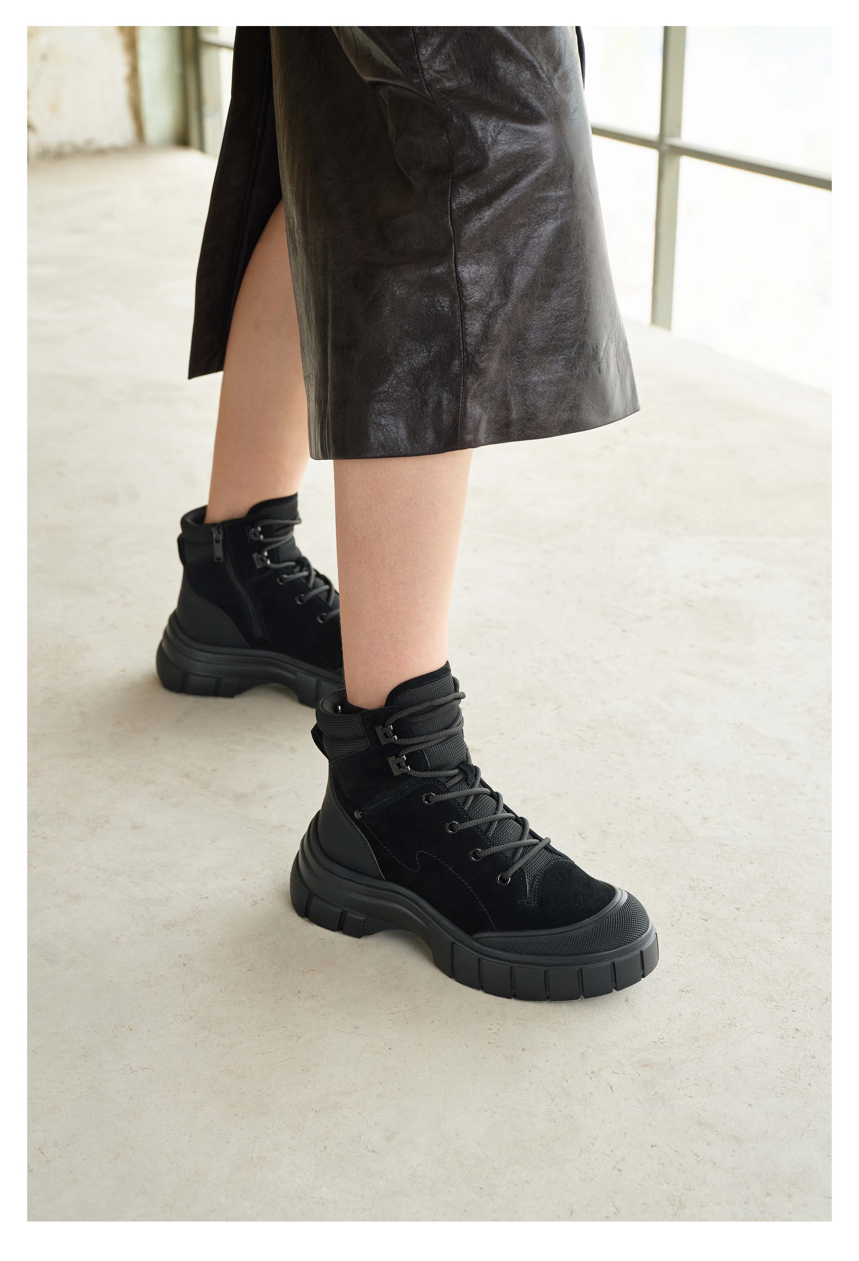 | 鞋底材质:IP发泡底 | 靴筒内里材质:猪皮革织物面料 | 内增高:无 | 鞋面材质:羊皮革纺织品牛皮革 | 闭合方式:系带侧拉链 |