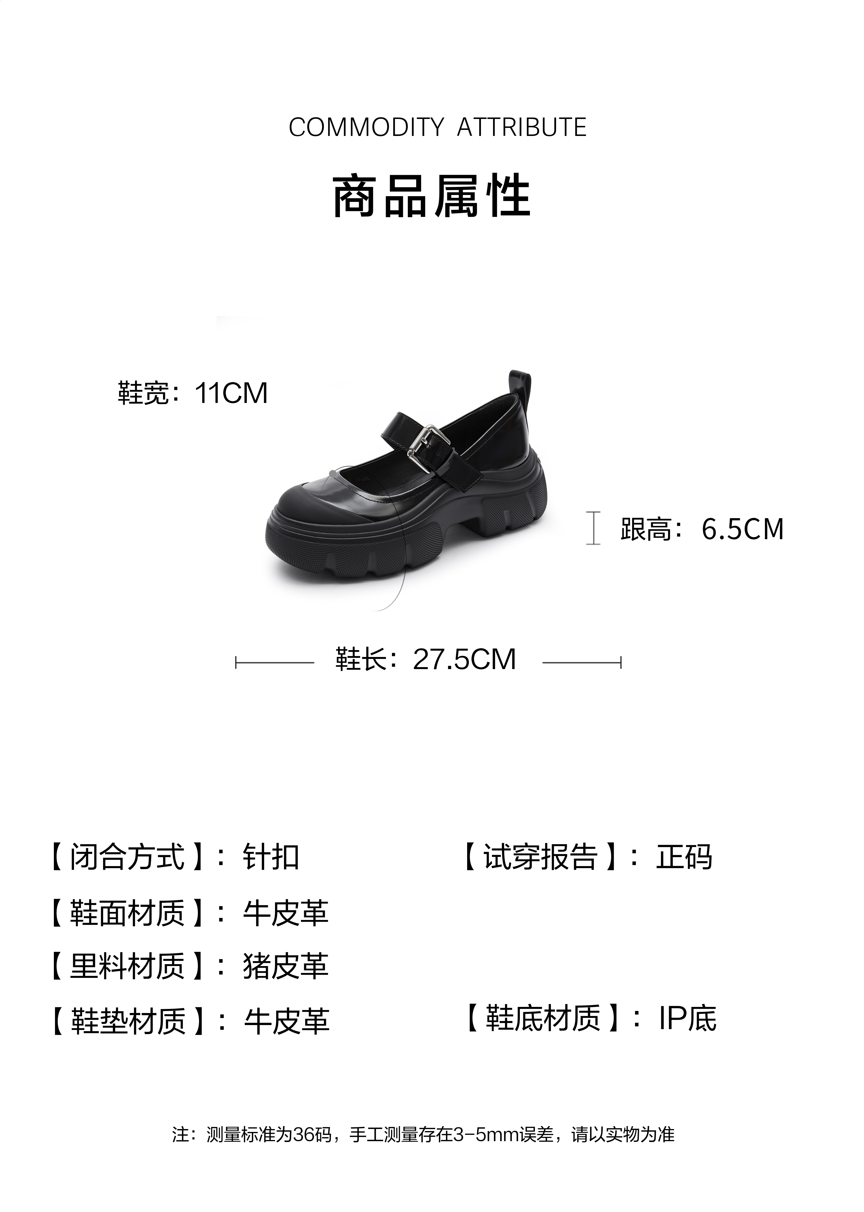 | 参考鞋长(女):26.5CM | 参考鞋宽(女):10CM | 风格:时尚潮流 | 色系:黑色 | 参考标准尺码:36码 |