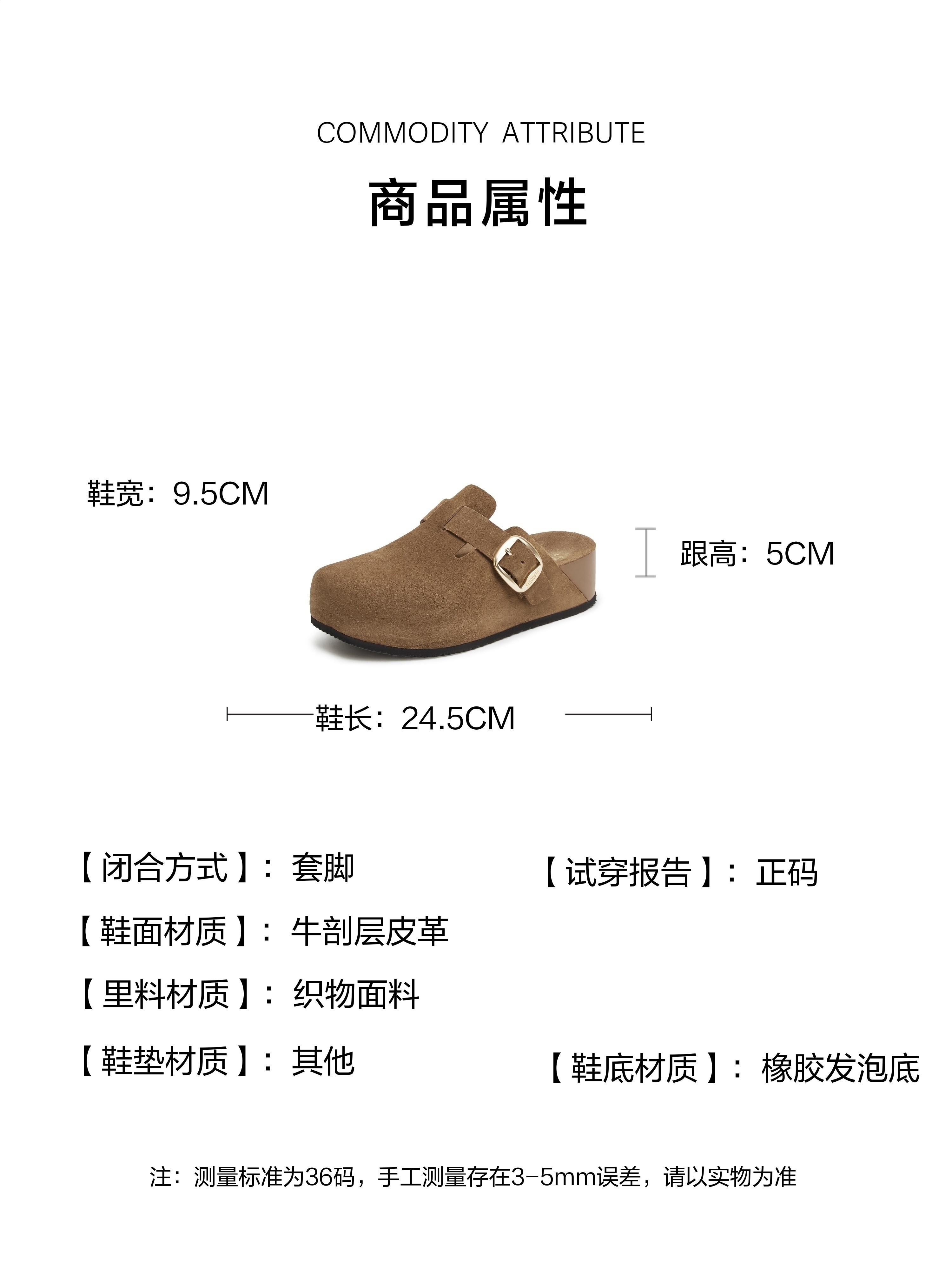 | 色系:棕色 | 跟高数值:5CM | 配跟:无 | 性别:女子 | 里料材质:织物面料 |