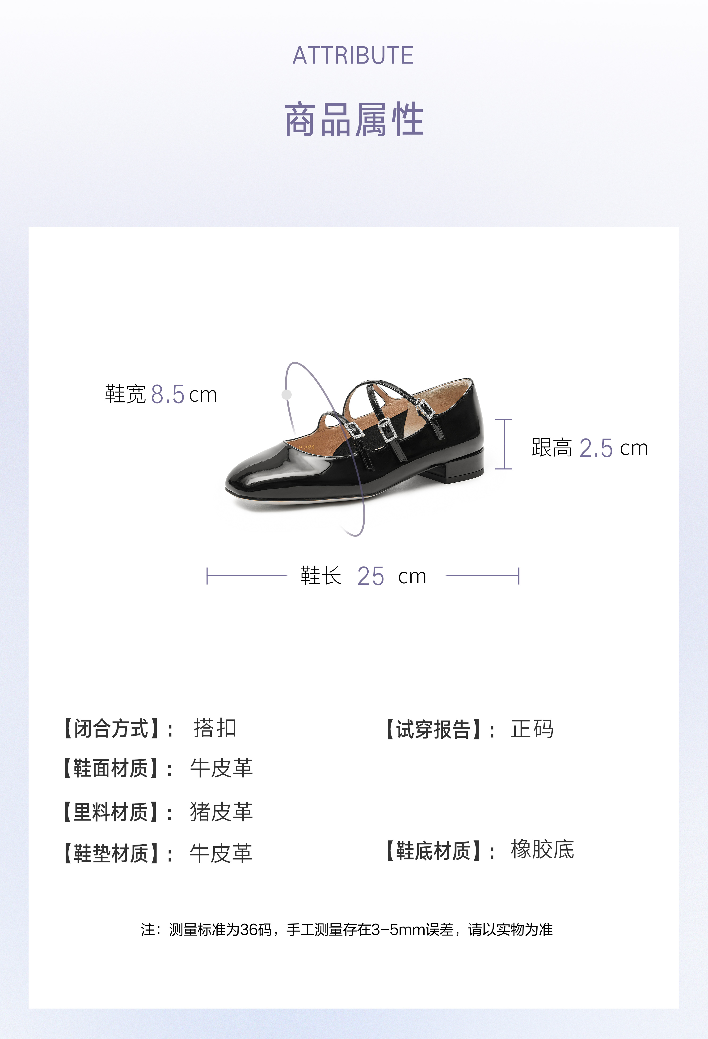 | 前掌高度:1CM | 皮质特征:牛皮革 | 鞋类流行款式:玛丽珍鞋 |