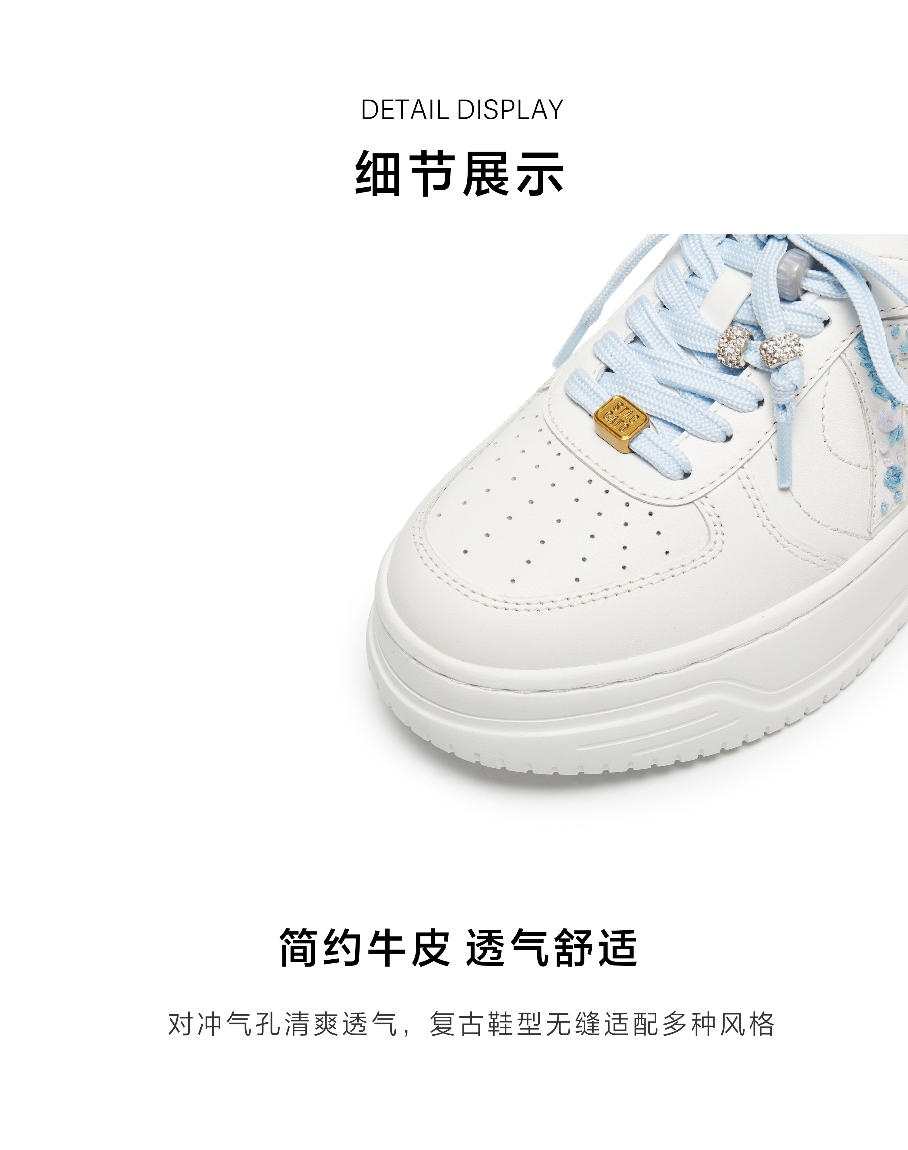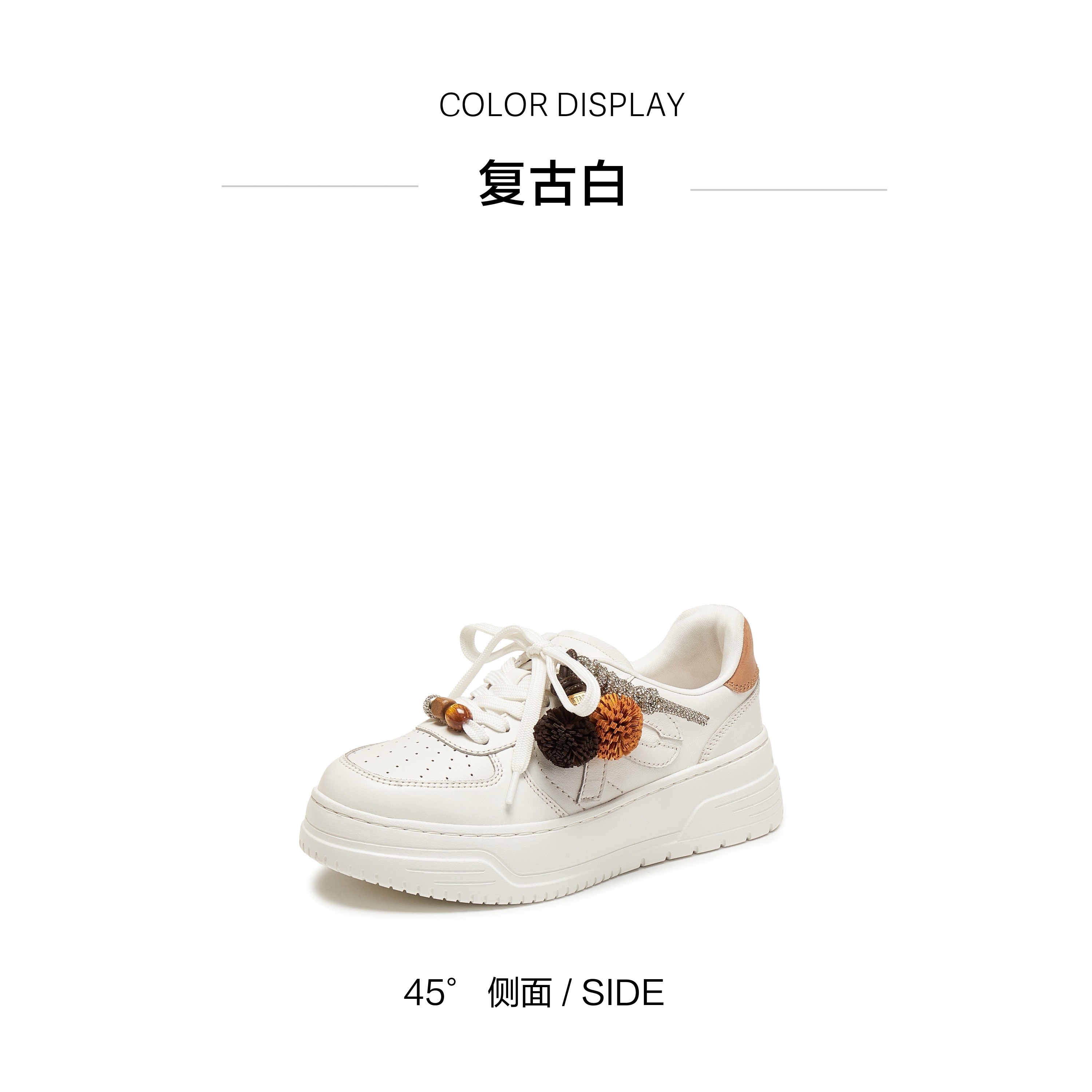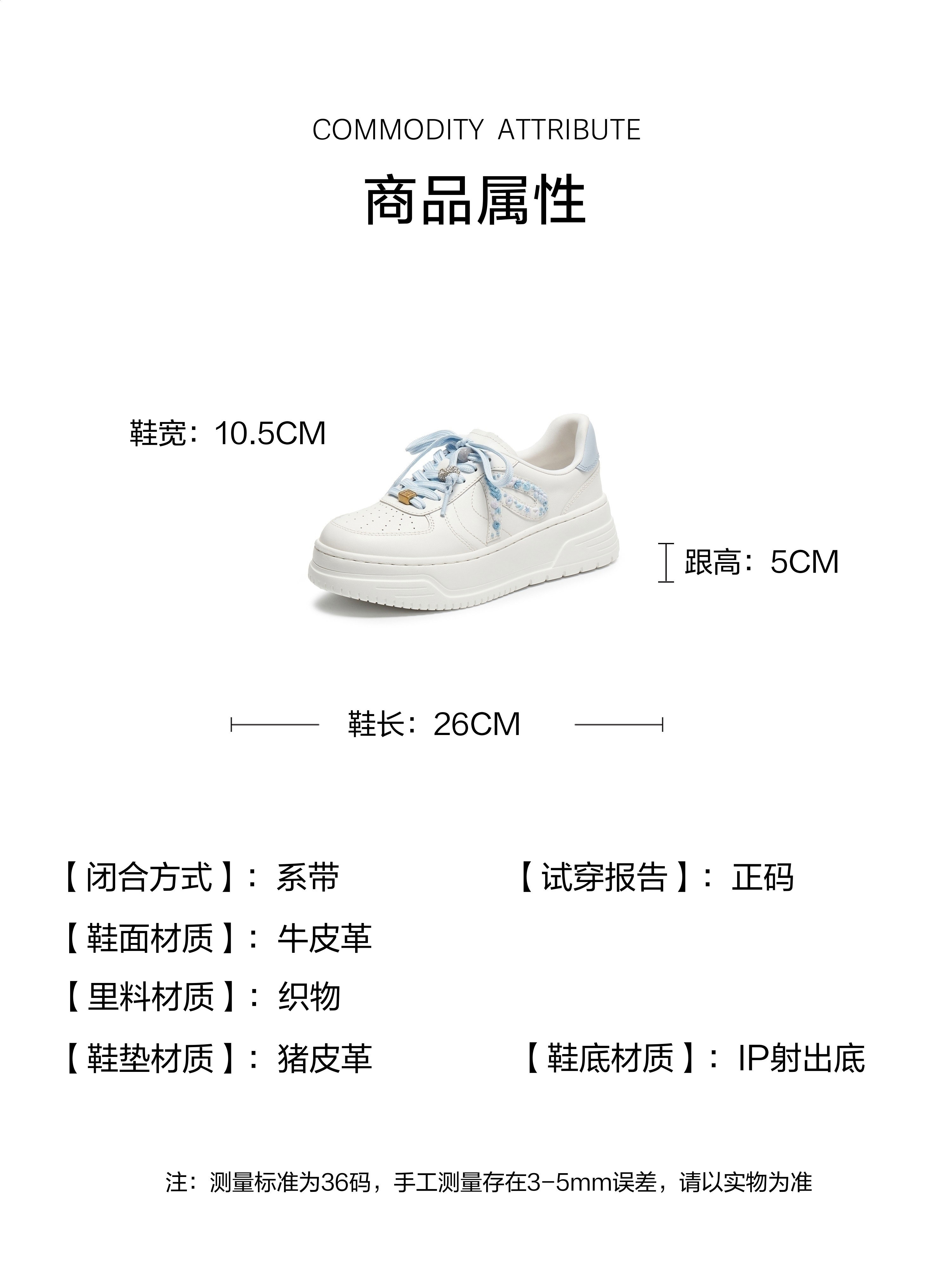 | 闭合方式:系带 | 风格:时尚潮流 | 色系:白色 | 跟高数值:5CM | 适用人群:成人 |