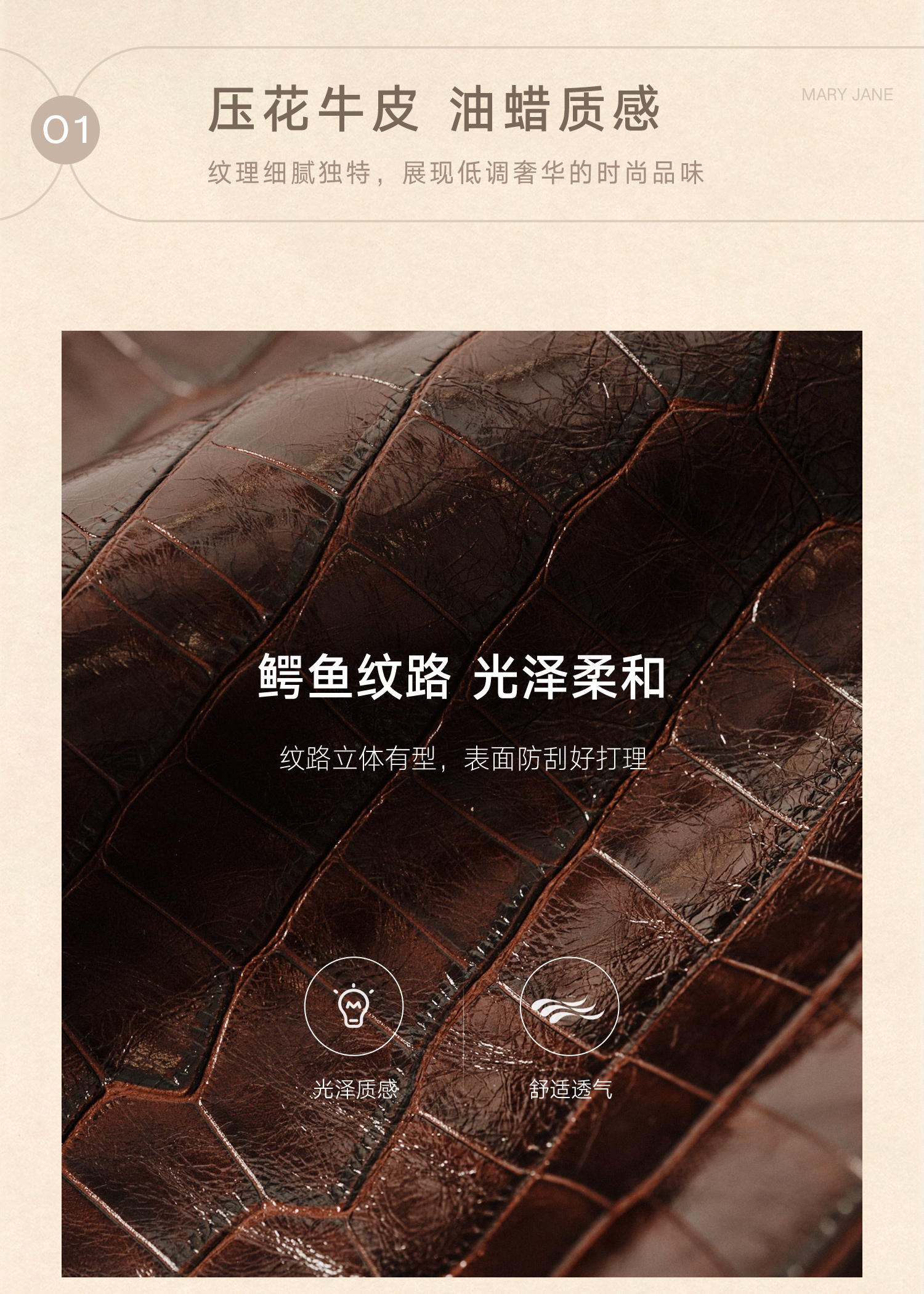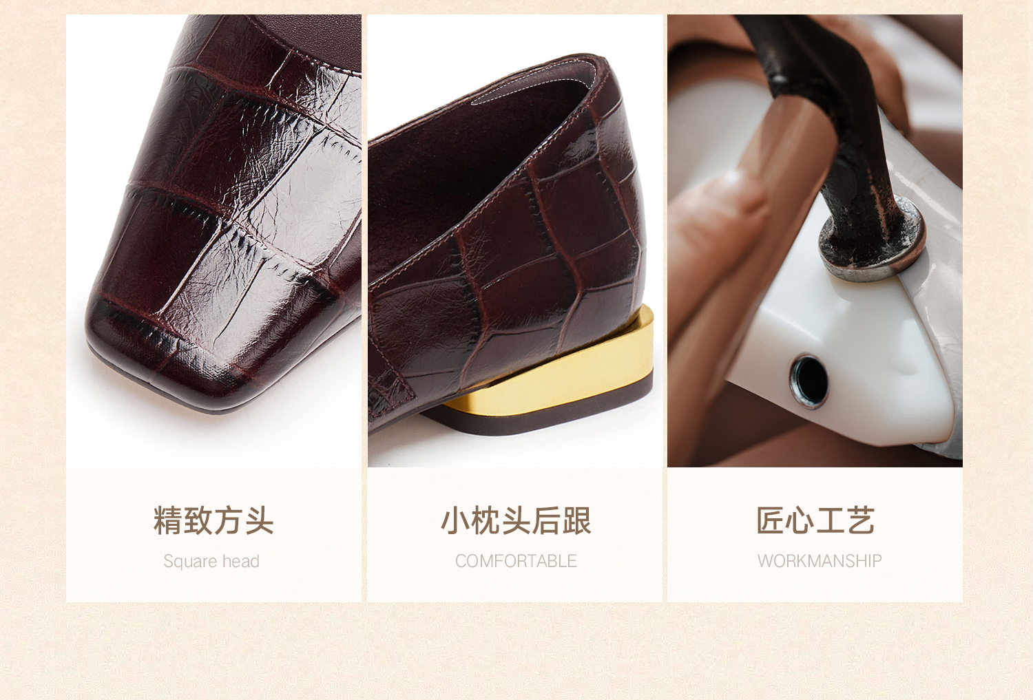| 鞋头款式:方头 | 鞋底材质:橡胶底 | 鞋面图案:纯色 | 鞋跟形状:方跟 | 鞋面材质:牛皮革 |