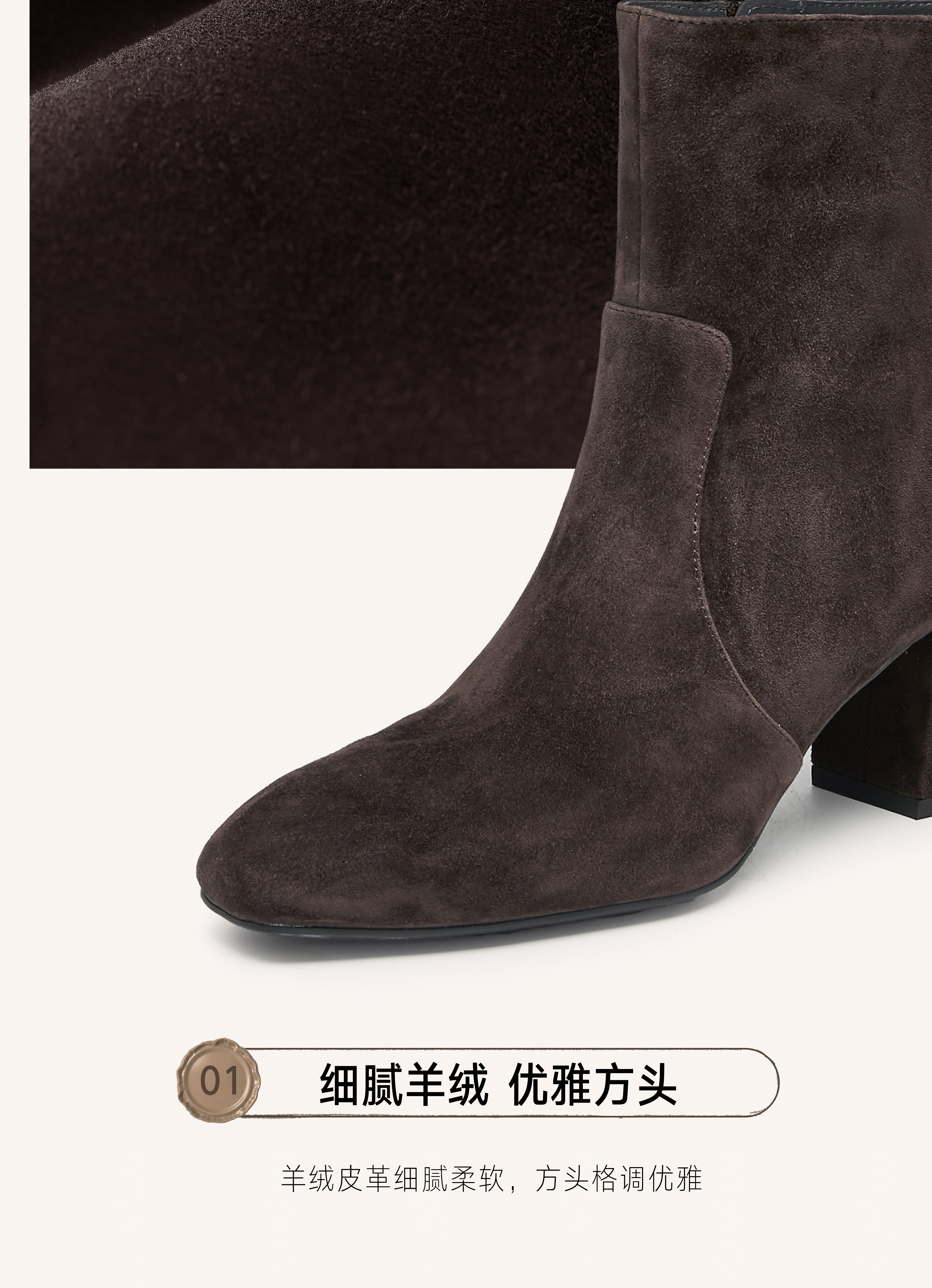 | 鞋头款式:方头 | 鞋面图案:纯色 | 鞋跟形状:粗跟 | 参考鞋长(女):24CM | 流行元素:绒面 |