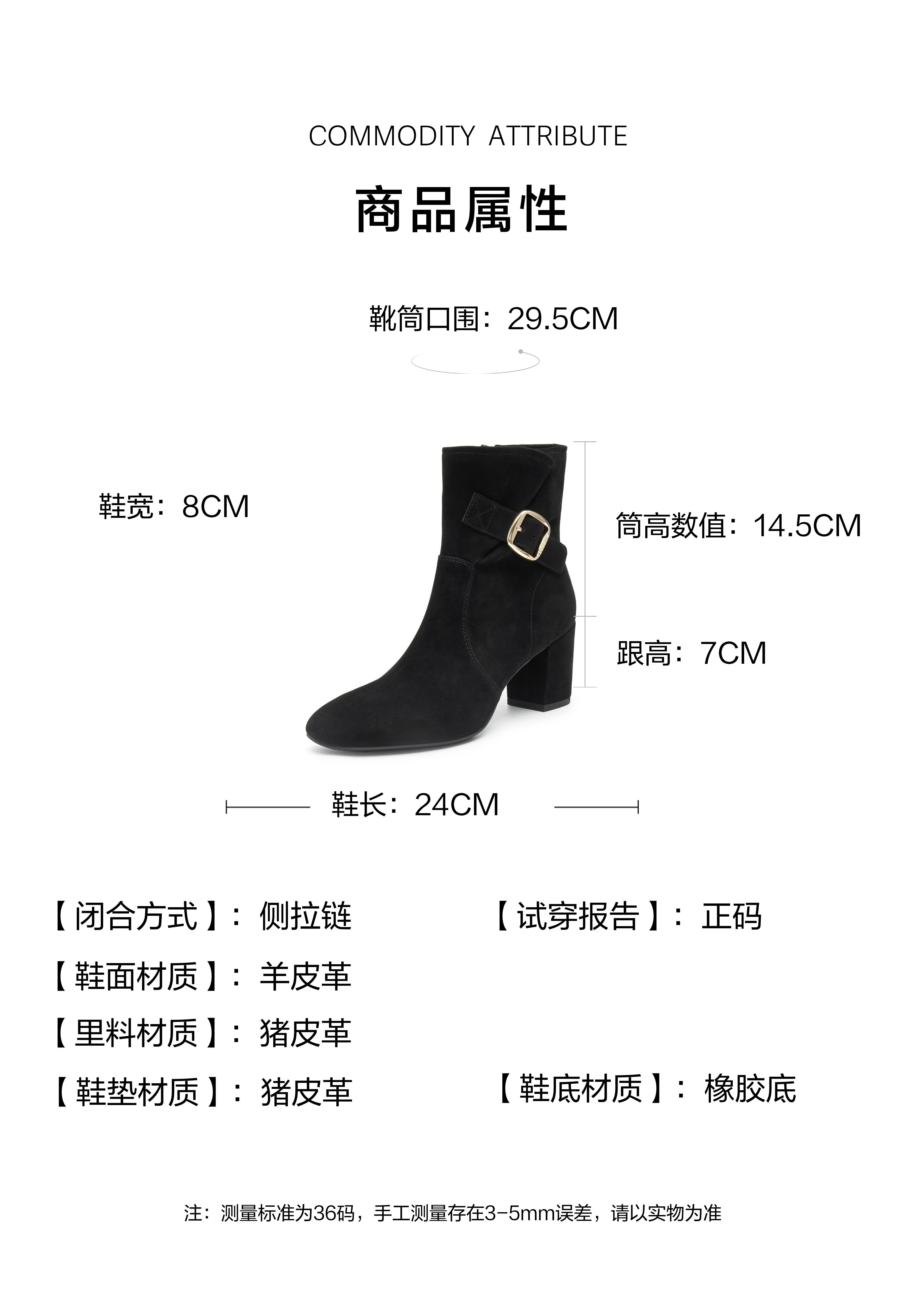 | 风格:时尚潮流 | 年份:2024年 | 色系:黑色 | 参考标准尺码:36码 | 跟高数值:7CM |