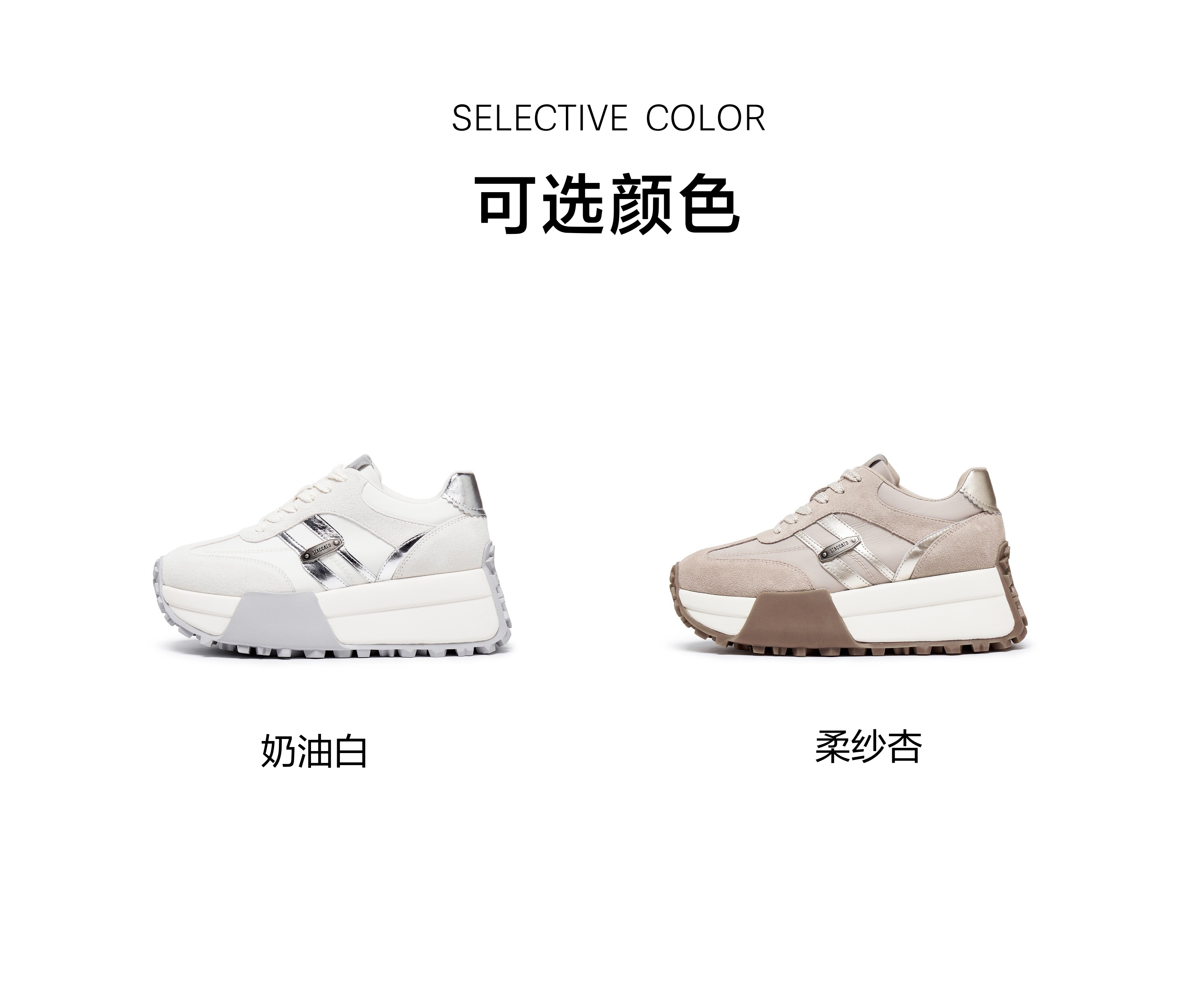 思加图(STACCATO),一个代表着年轻时尚、多元化的时装鞋履品牌,目标将时尚潮流带到女性的现实生活中。“STACCATO”是乐章上的音符,轻轻一点,谱出优美的旋律,为音乐带来多样性。穿上STACCATO单鞋的时代女性,踏出自信又轻松的脚步,犹如跳跃的音符,反映年轻与时尚的生活态度。目前品牌开设门店已超1100家,遍布中国、韩国、澳洲、新加坡、马来西亚、罗马尼亚、沙特阿拉伯等地。