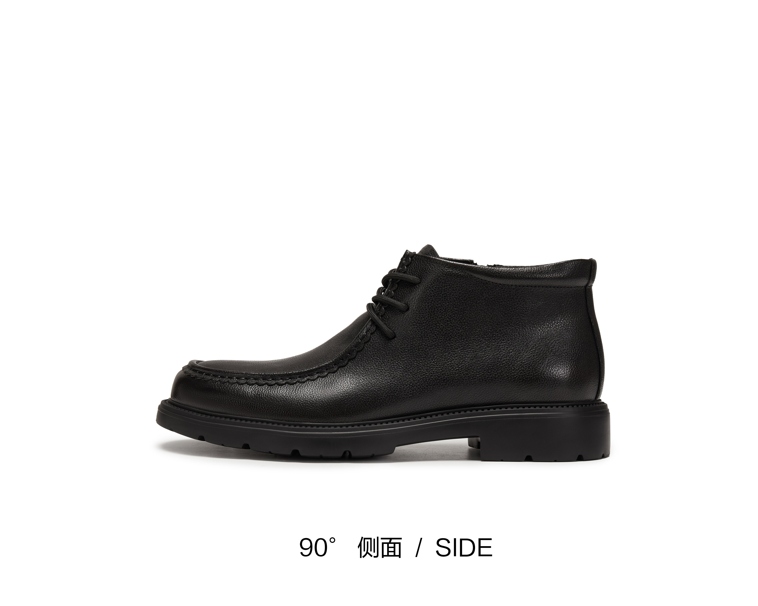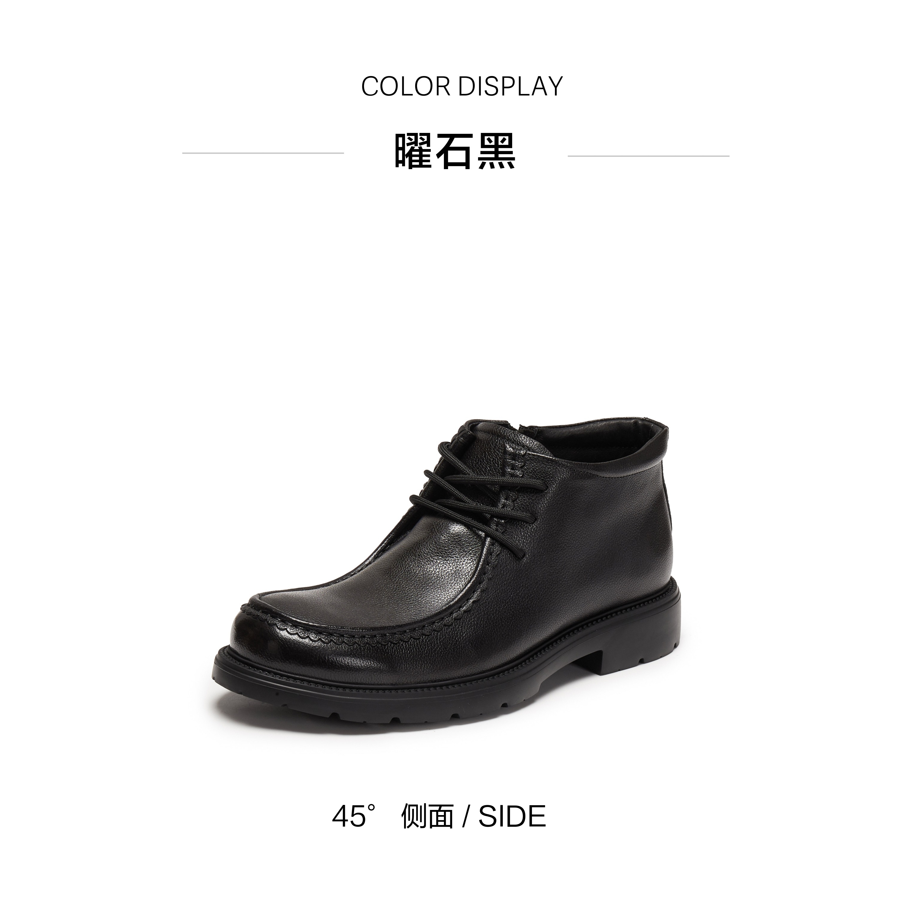 | 鞋面内里材质:猪皮革 | 跟高数值:3.5CM | 色系:黑色 | 性别:男子 | 筒高数值:14.5CM |