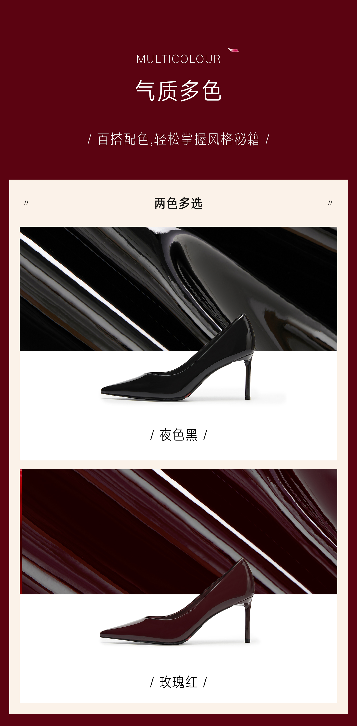 | 鞋头款式:尖头 | 鞋底材质:橡胶底 | 鞋面图案:纯色 | 内增高:无 | 鞋跟形状:细跟 |