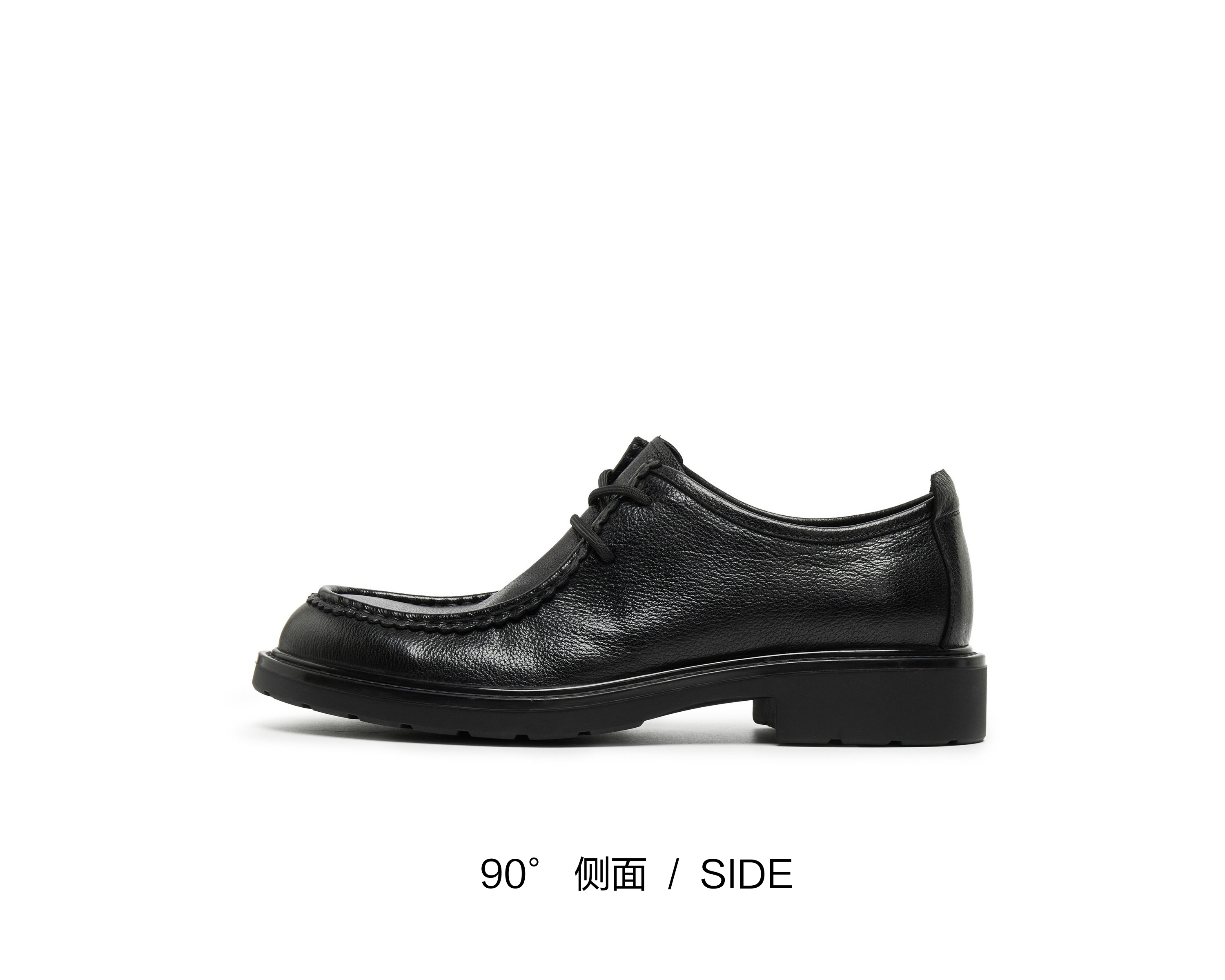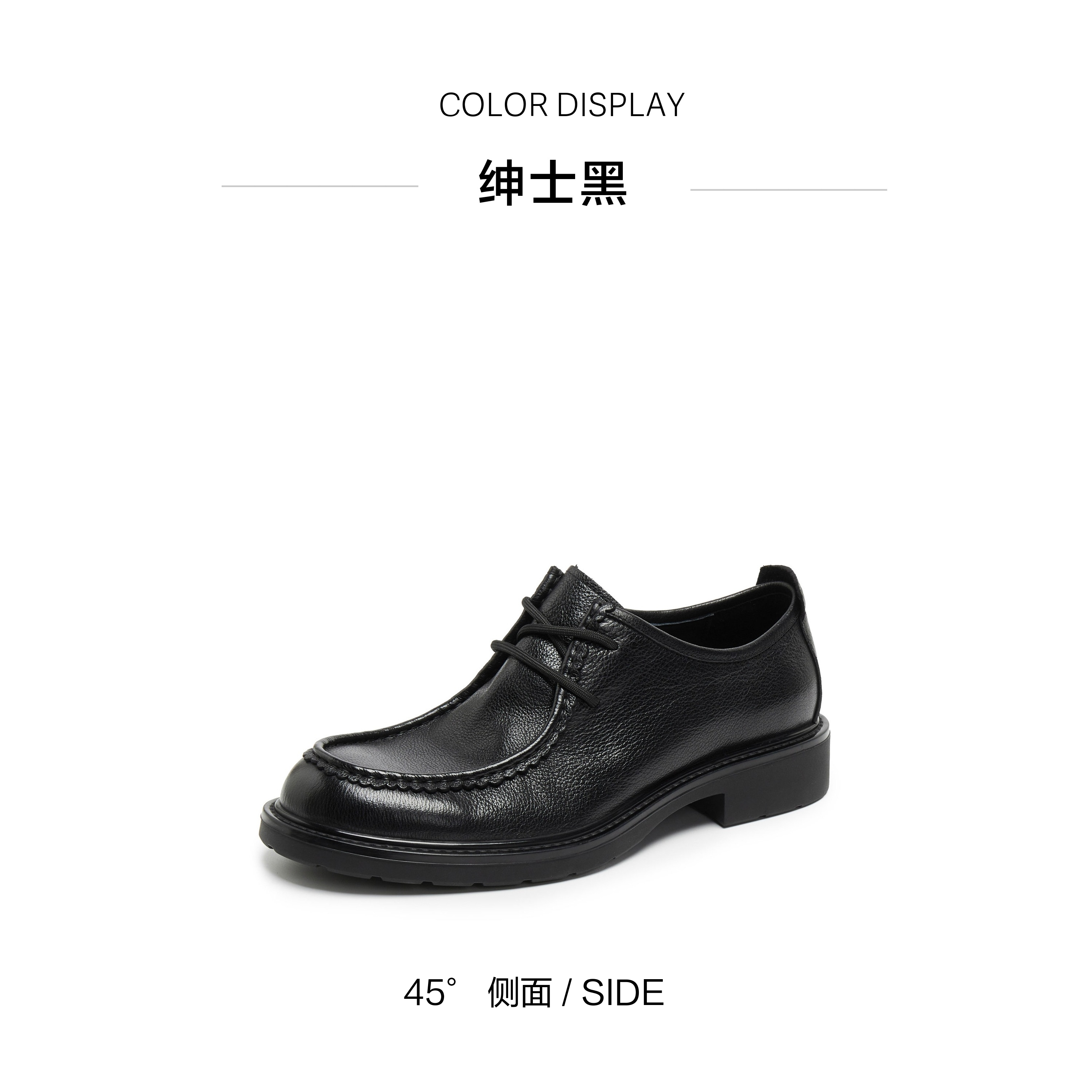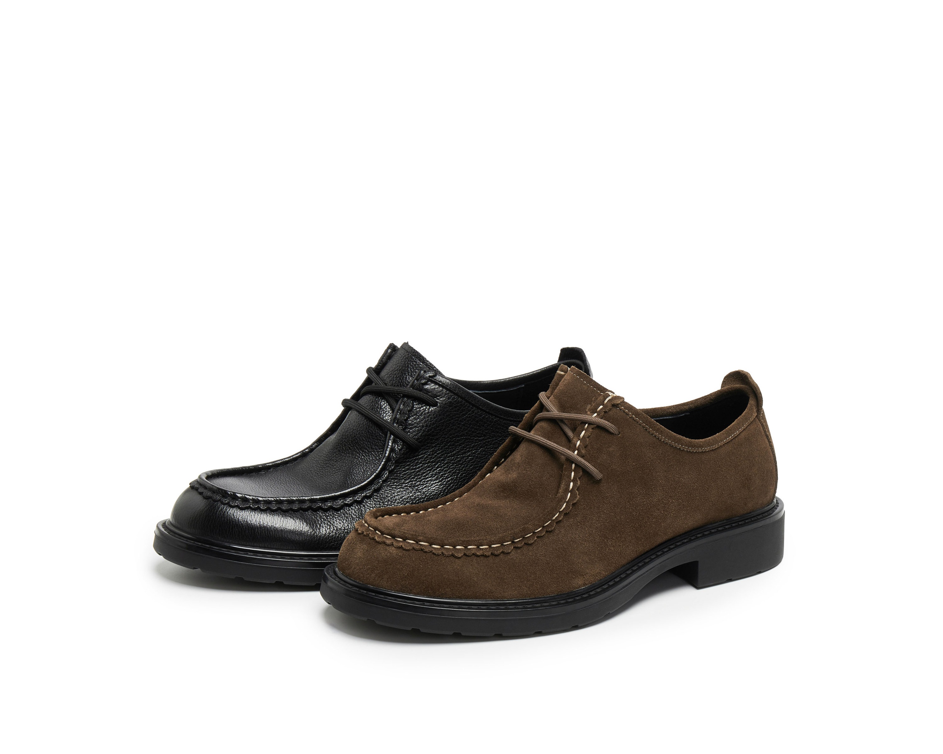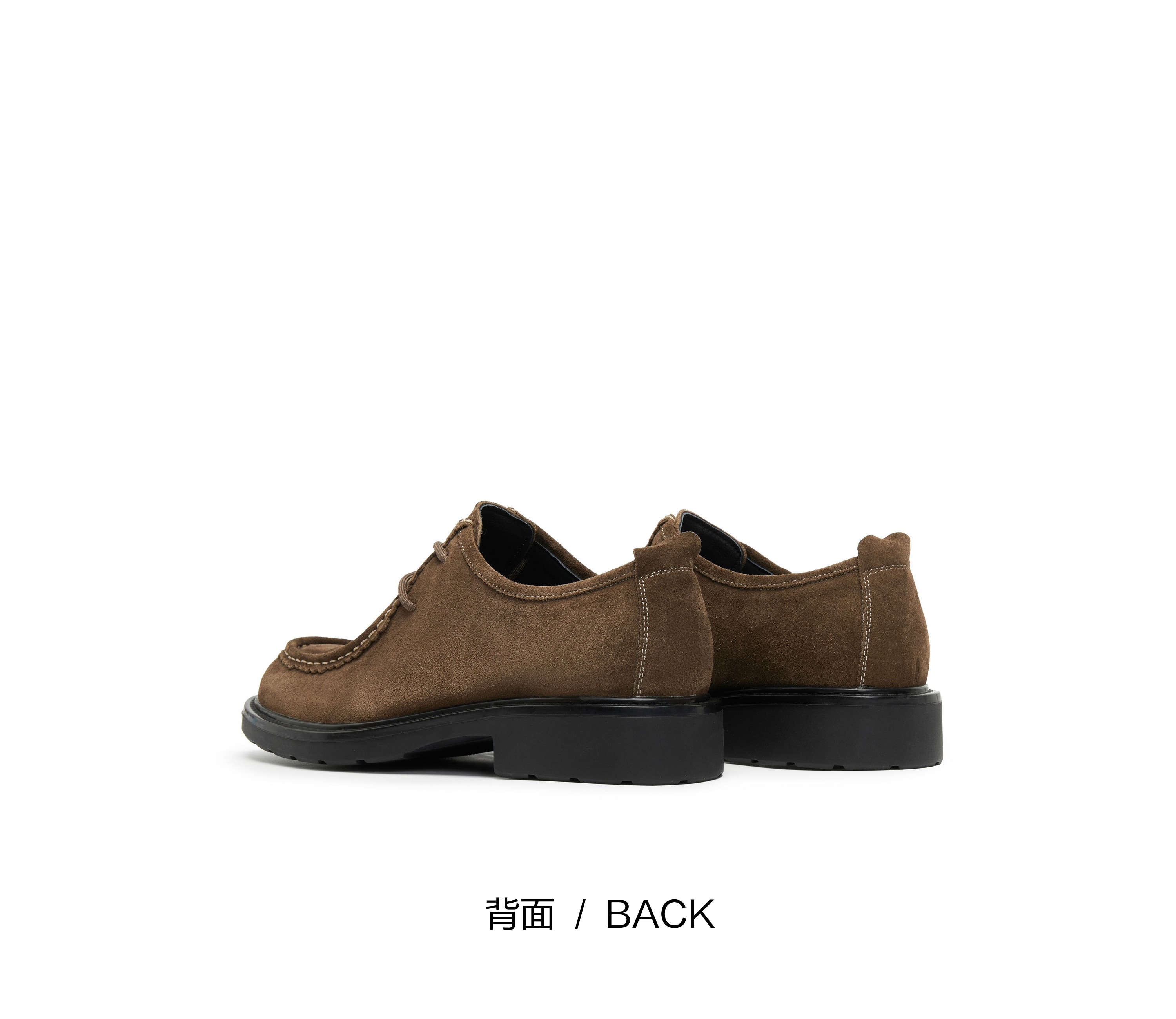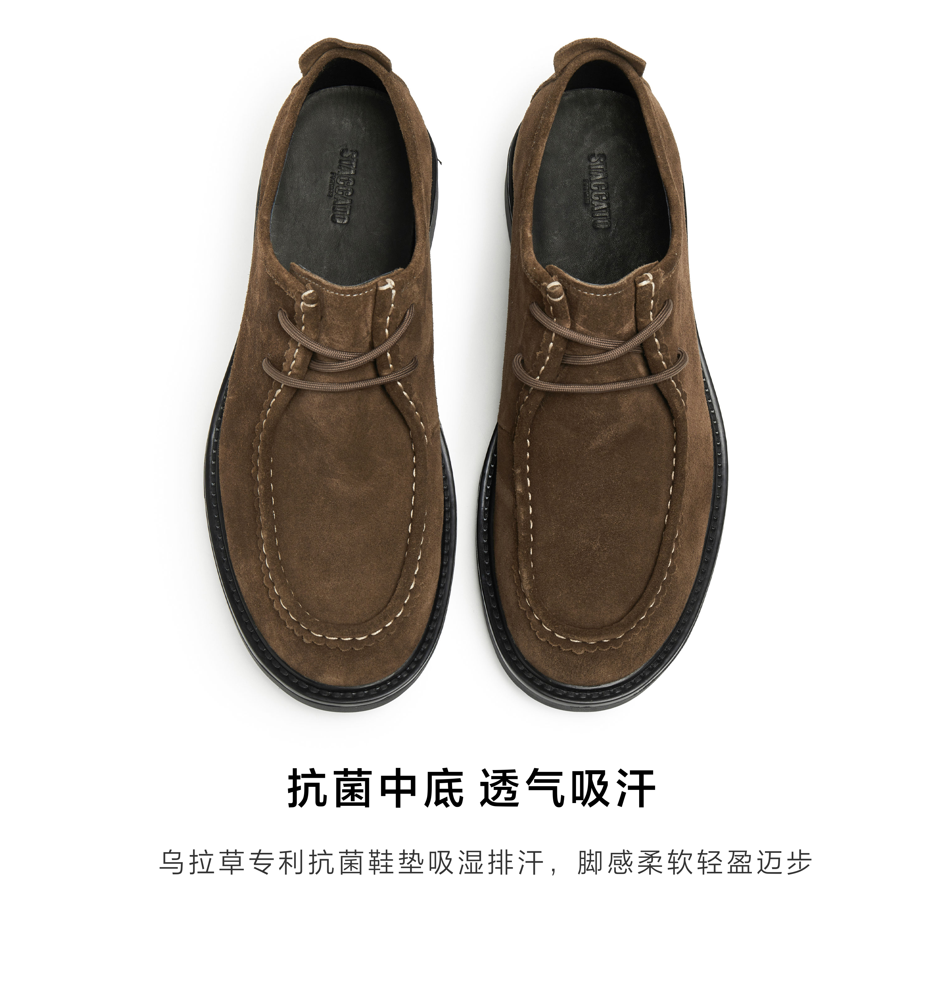 | 鞋跟形状:粗跟 | 鞋面材质:牛剖层革 | 流行元素:绒面 | 闭合方式:系带 | 风格:休闲商务 |