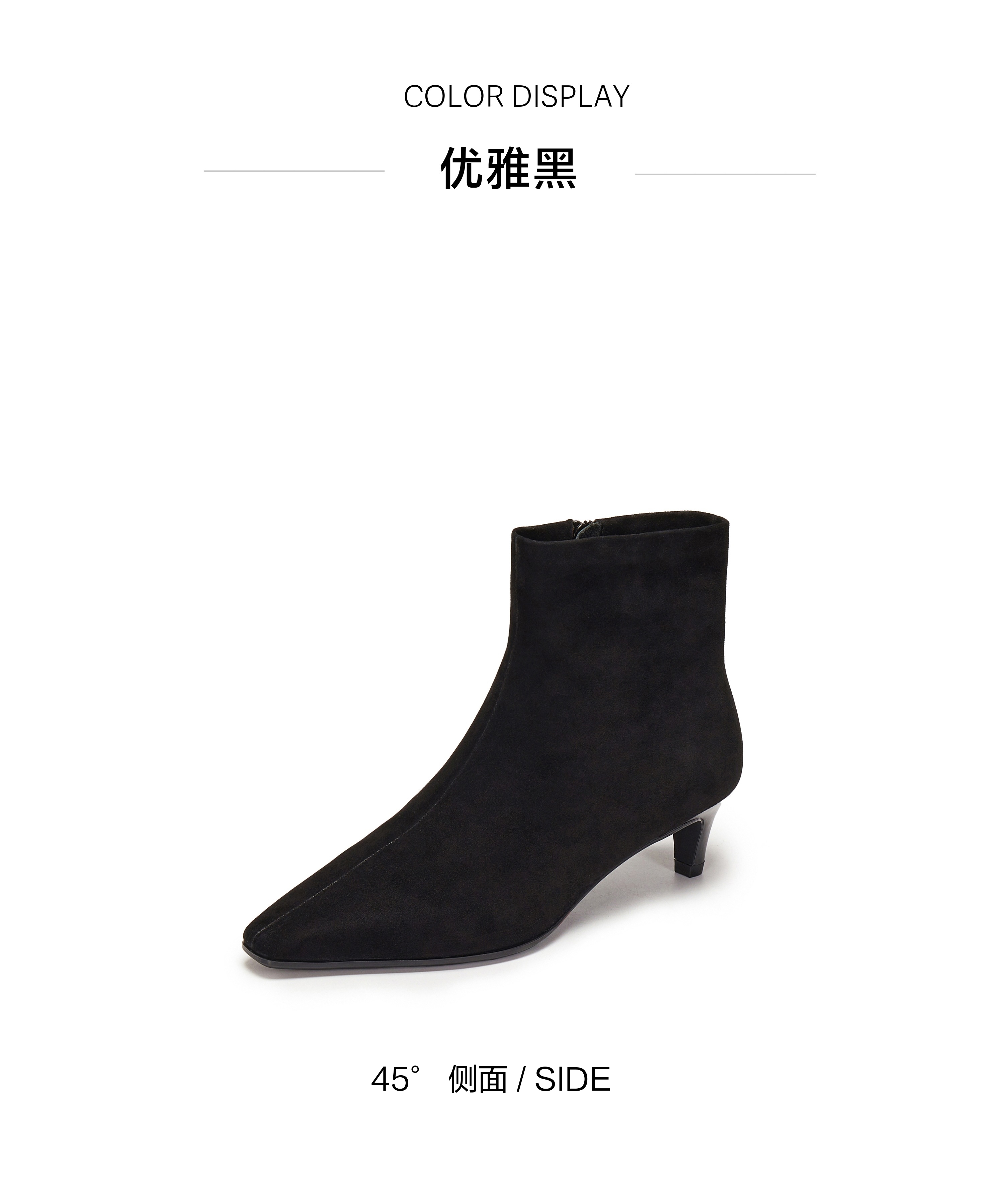 | 鞋底材质:橡胶底 | 靴筒内里材质:织物 | 内增高:无 | 鞋面材质:羊皮革 | 闭合方式:侧拉链 |