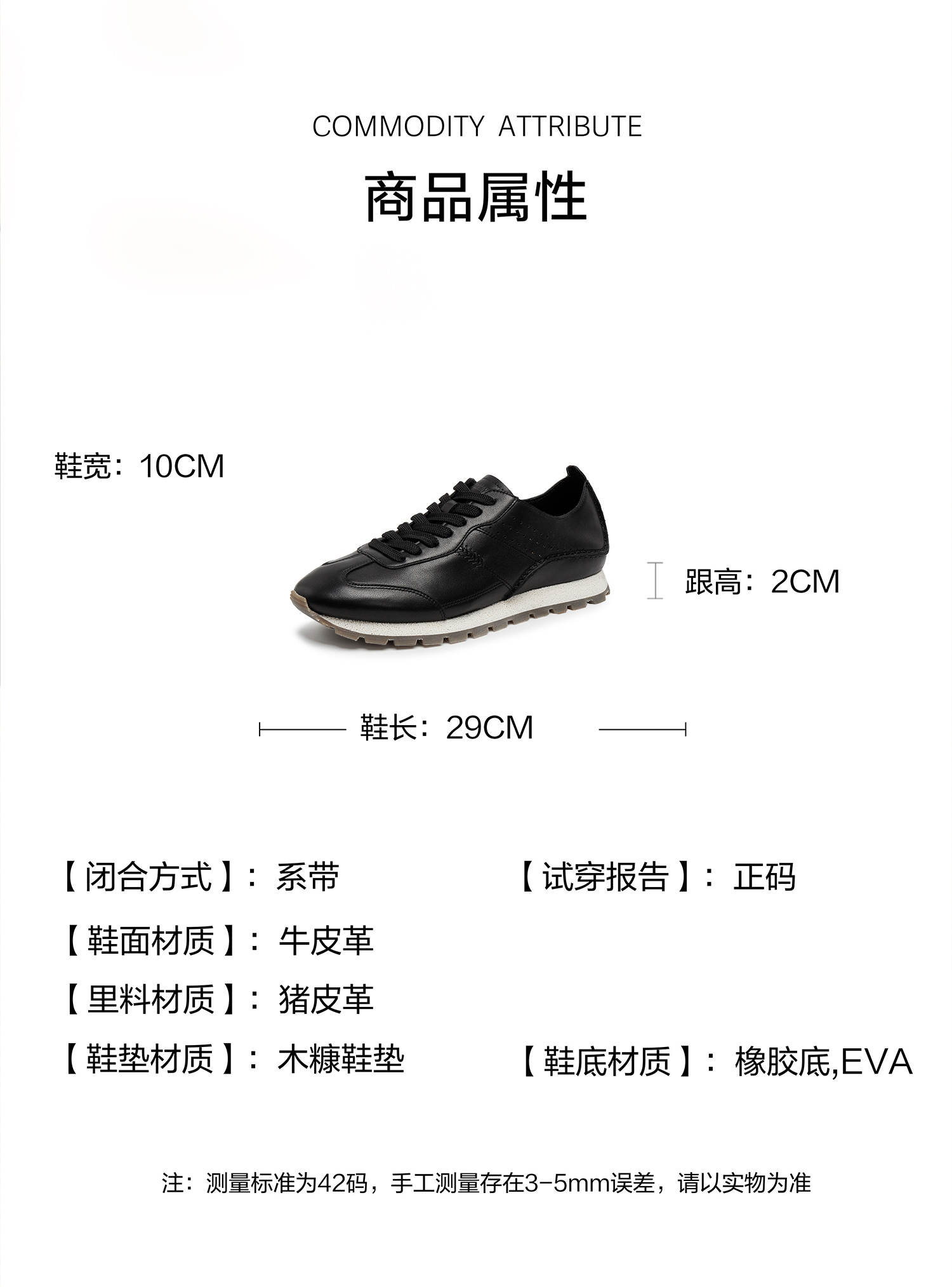 | 色系:黑色 | 跟高数值:2CM | 40码鞋宽参考(男):10CM | 性别:男子 | 里料材质:猪皮革 |