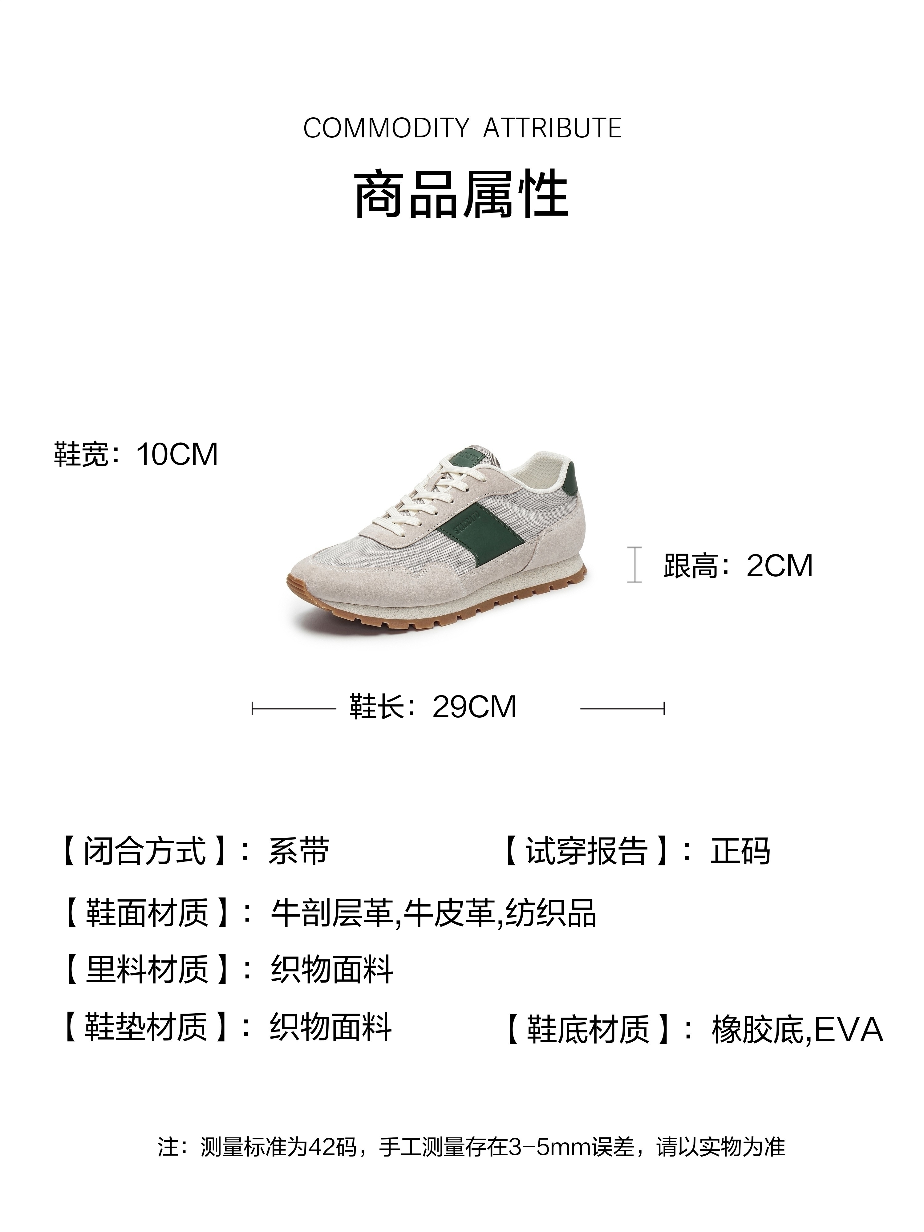 | 内增高:无 | 鞋跟形状:平跟 | 鞋面材质:牛剖层革纺织品牛皮革 | 流行元素:撞色 | 闭合方式:系带 |