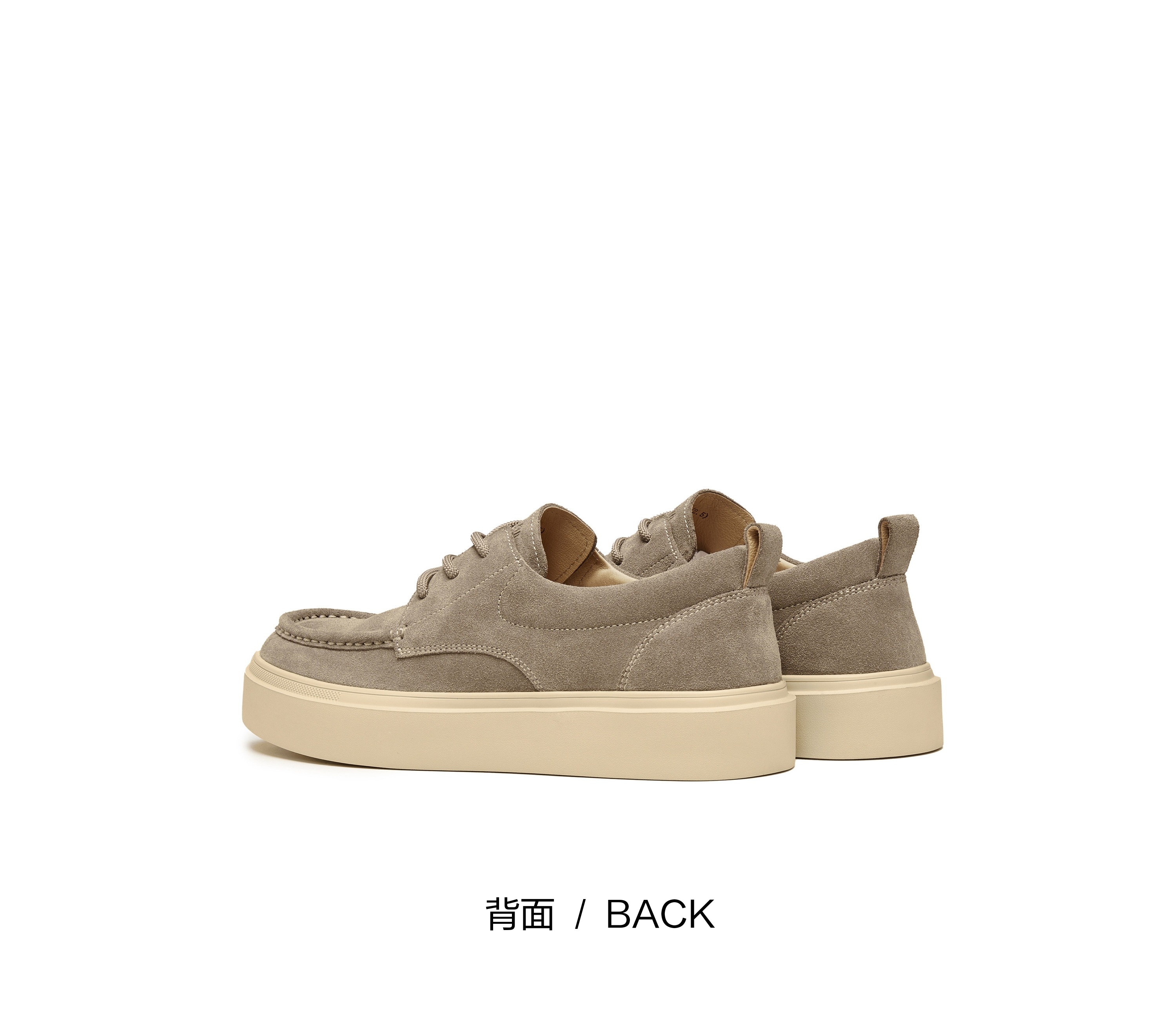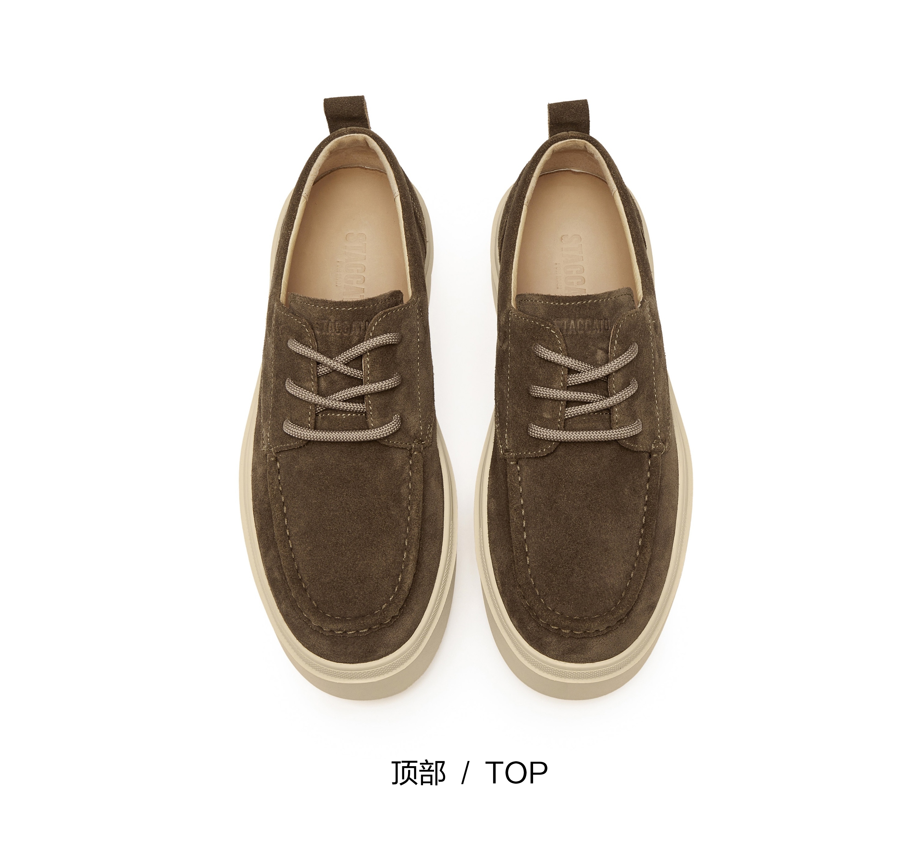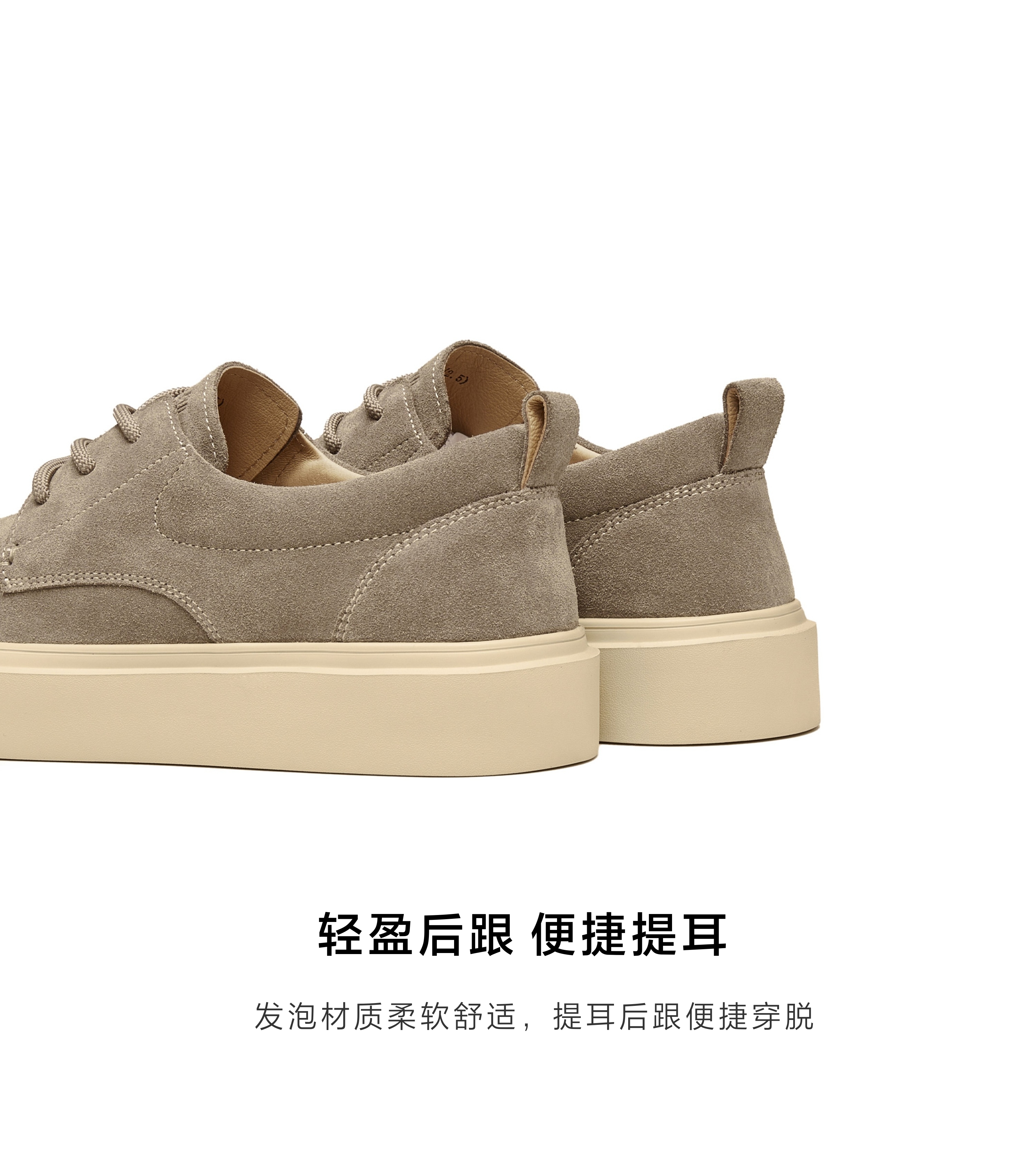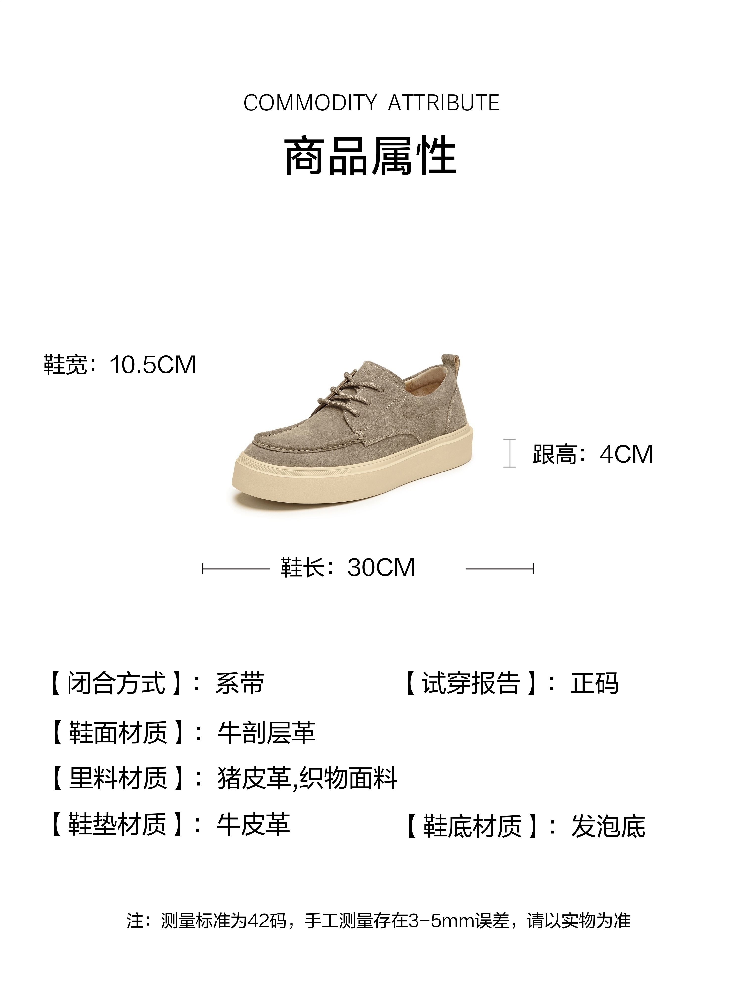 | 内增高:无 | 鞋跟形状:厚底 | 鞋面材质:牛剖层革 | 流行元素:绒面 | 闭合方式:系带 |