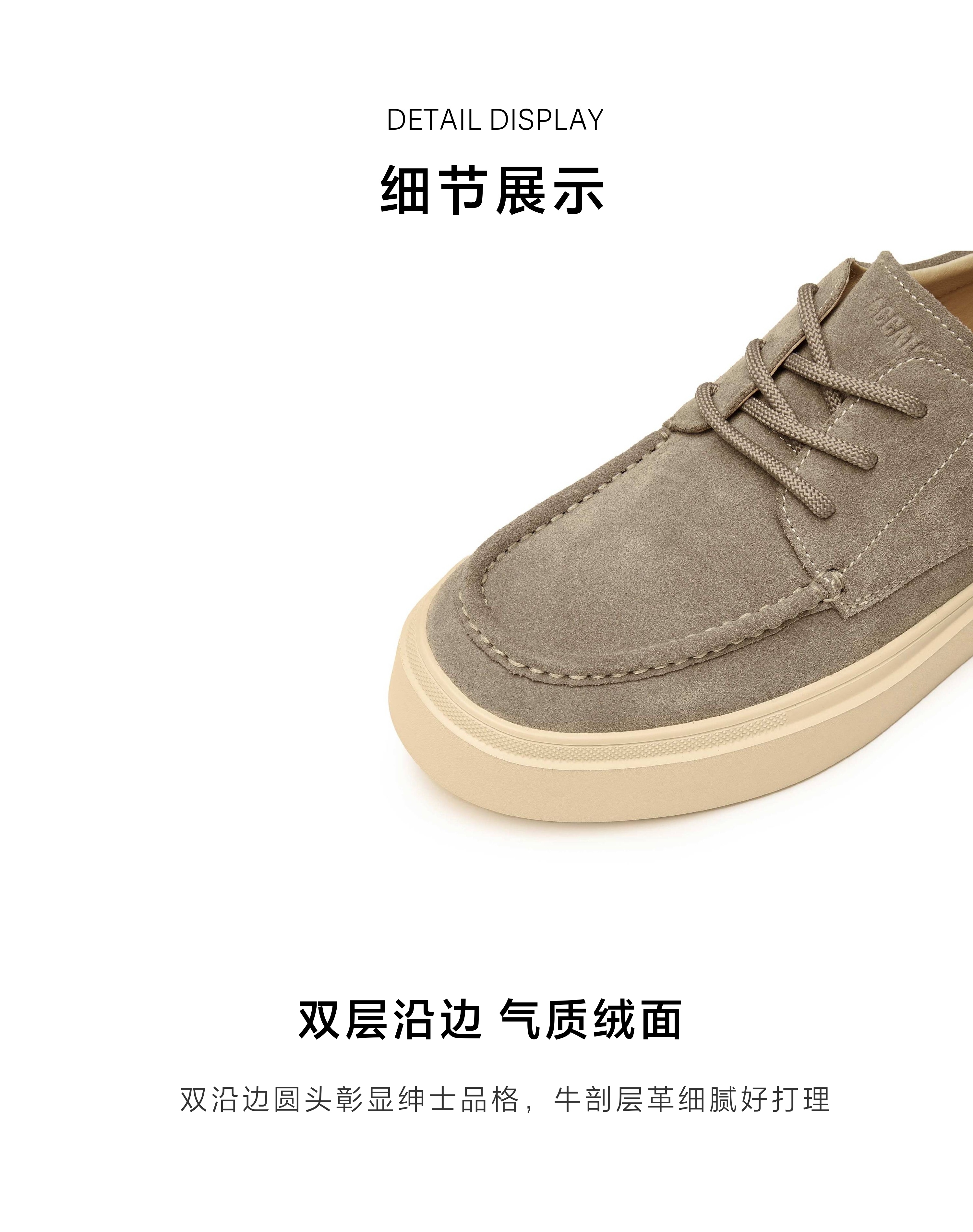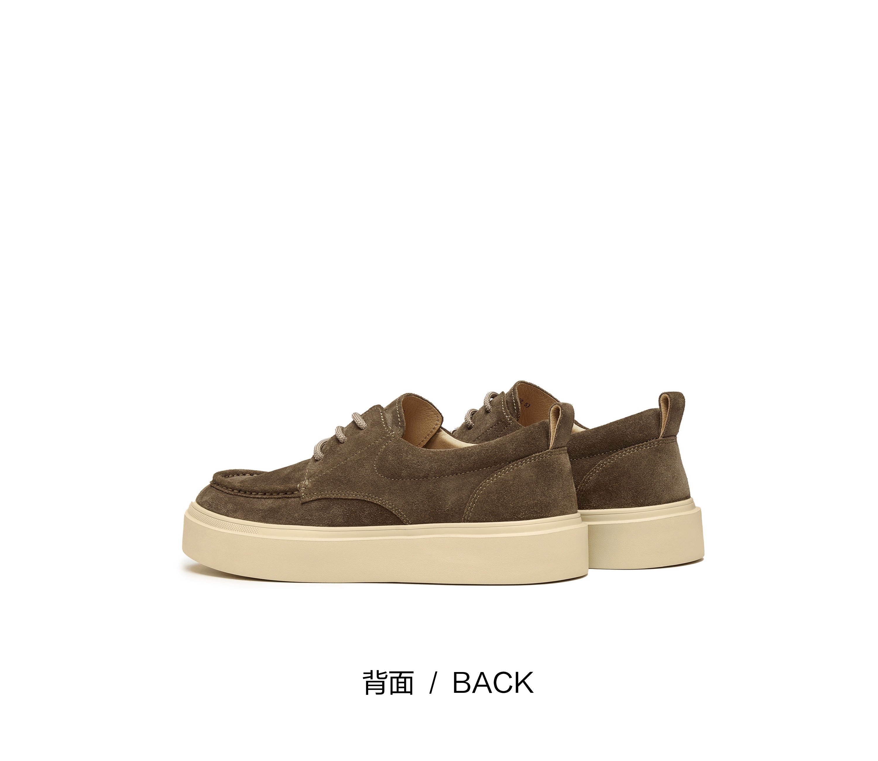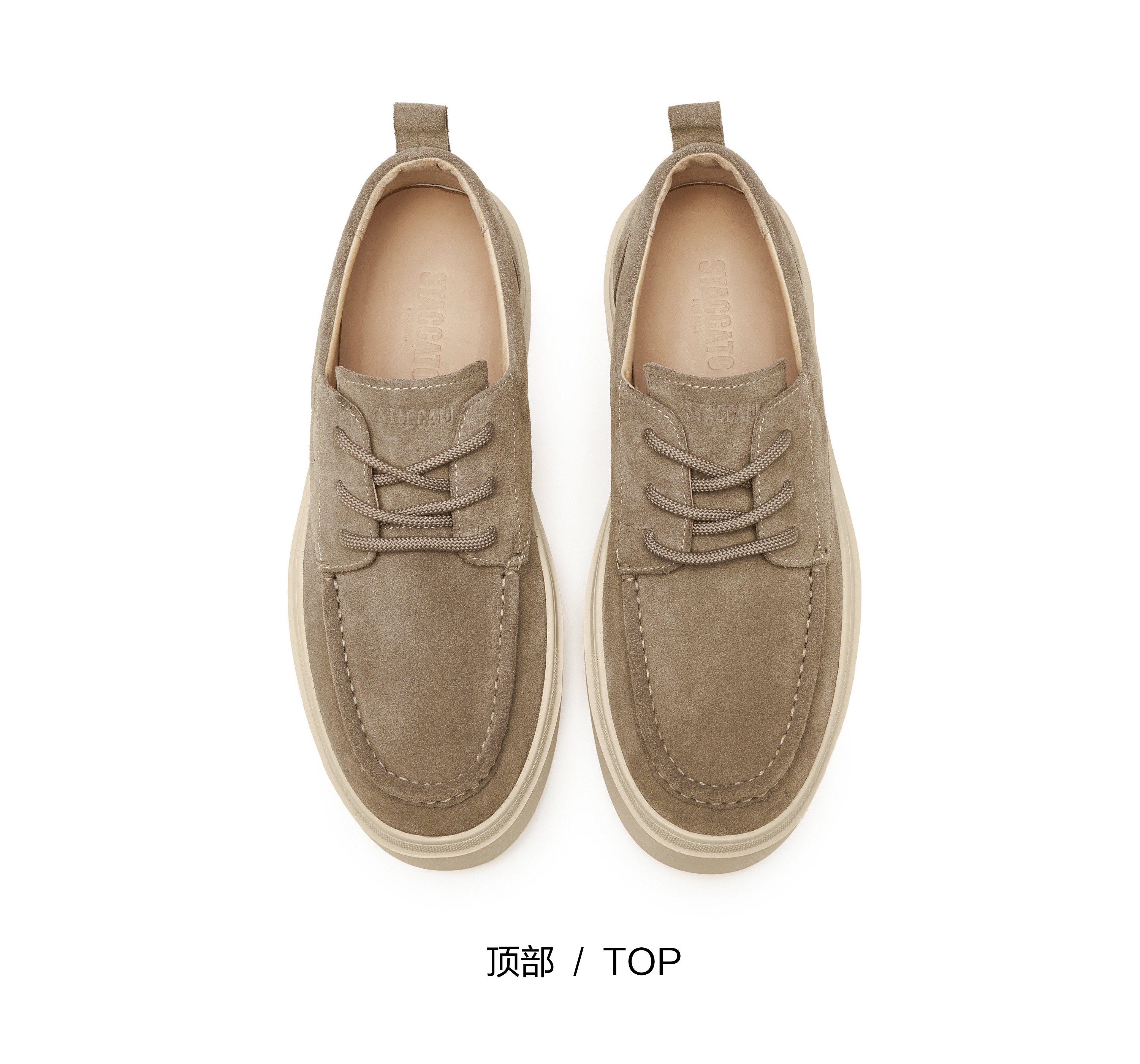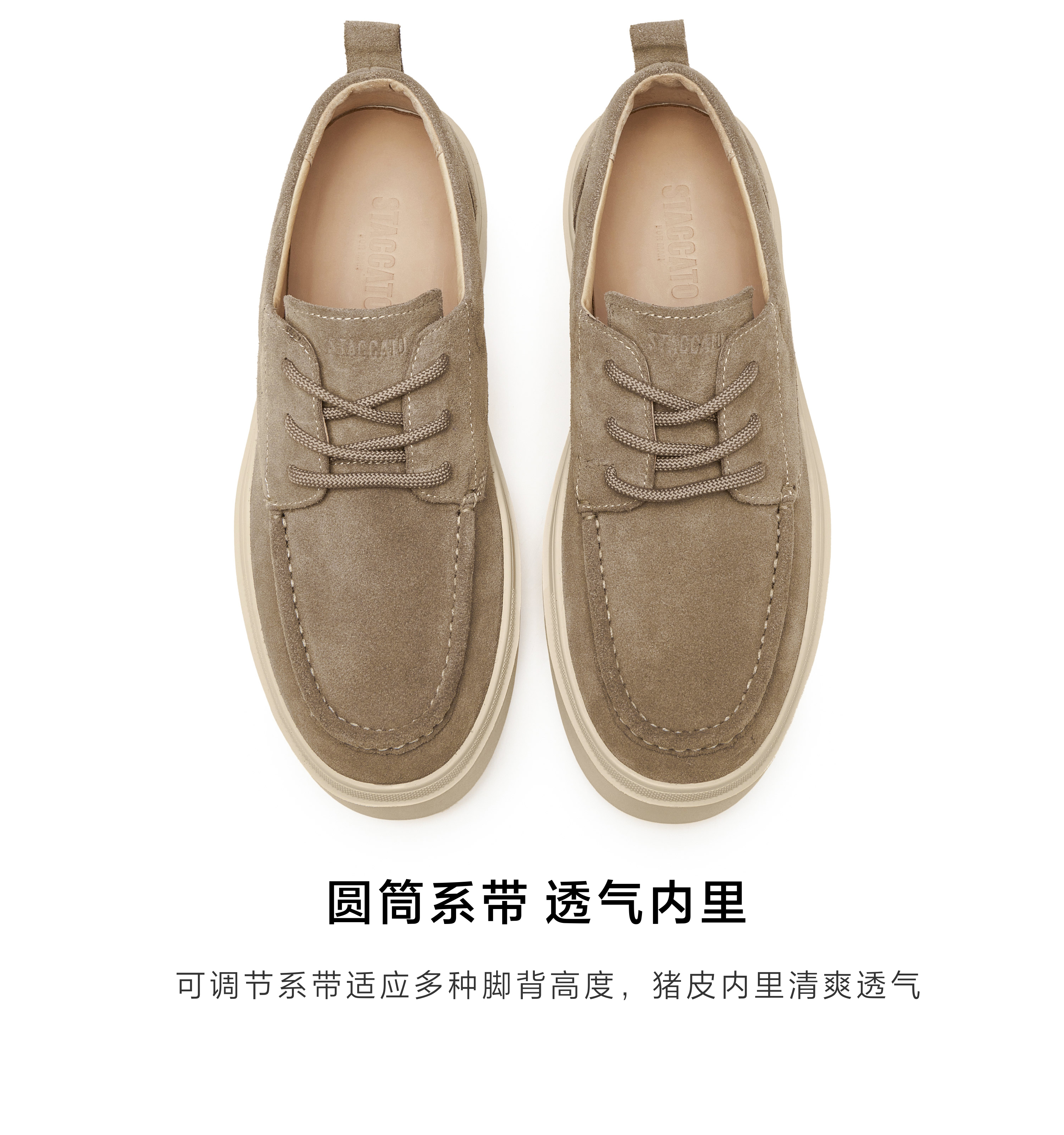| 内增高:无 | 鞋跟形状:厚底 | 鞋面材质:牛剖层革 | 流行元素:绒面 | 闭合方式:系带 |