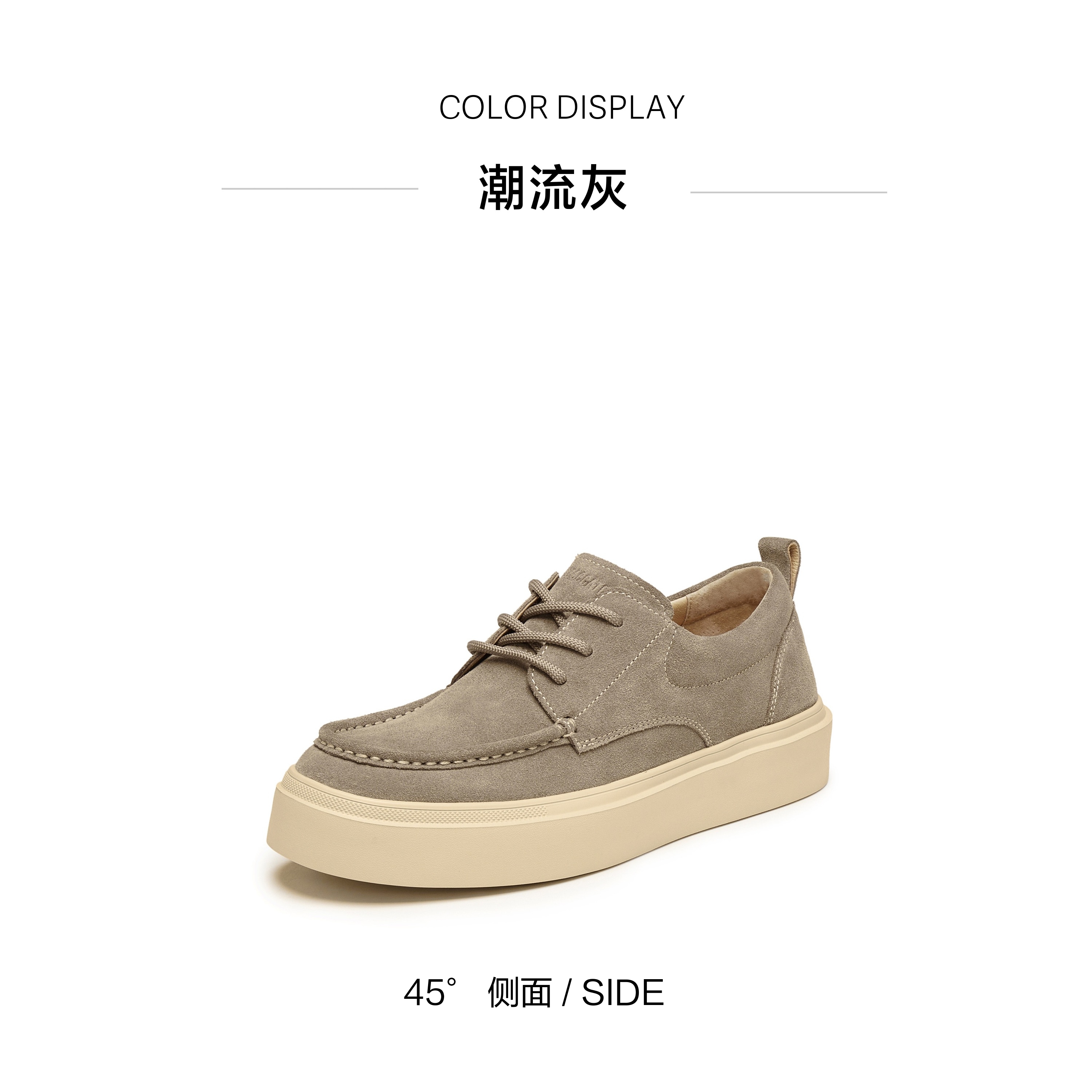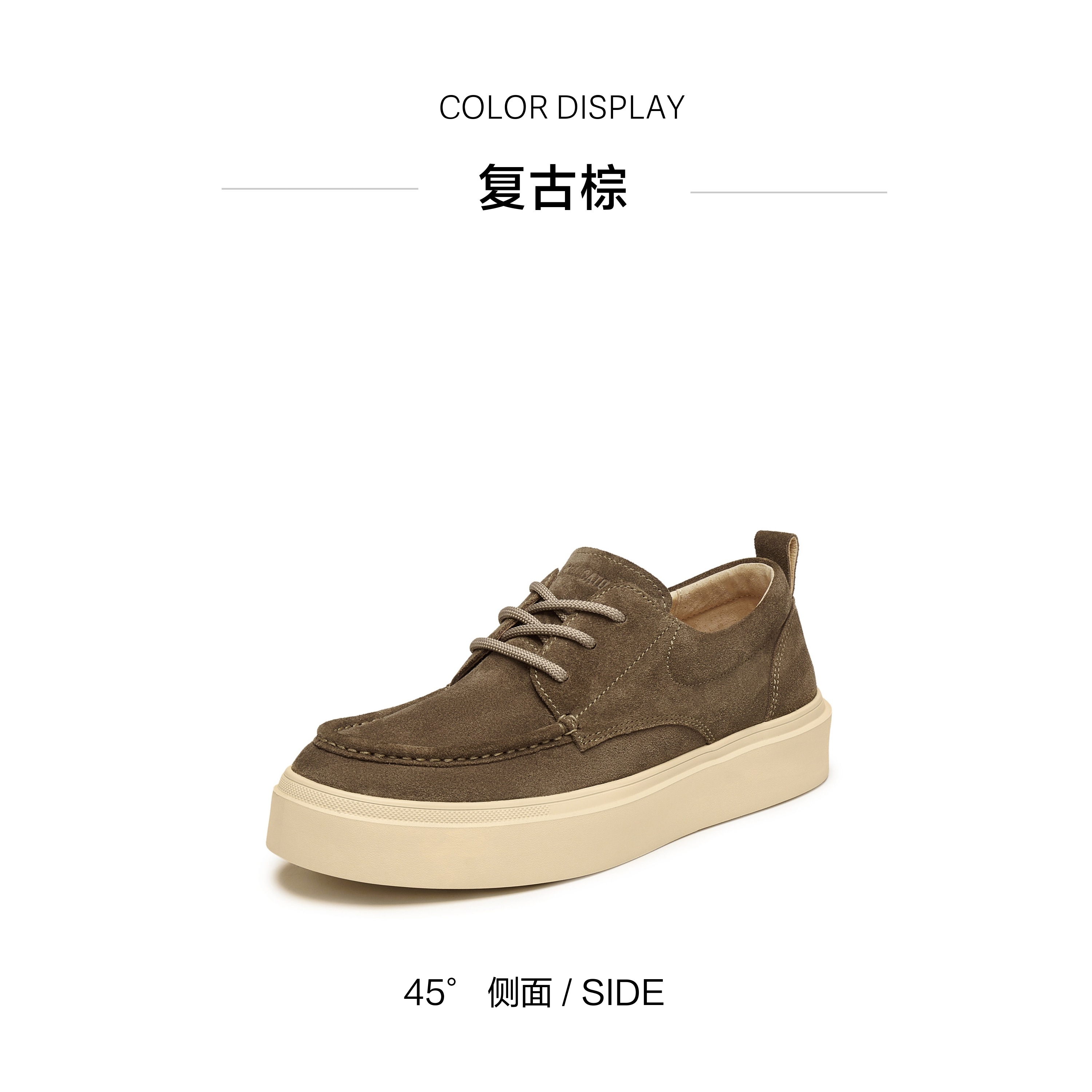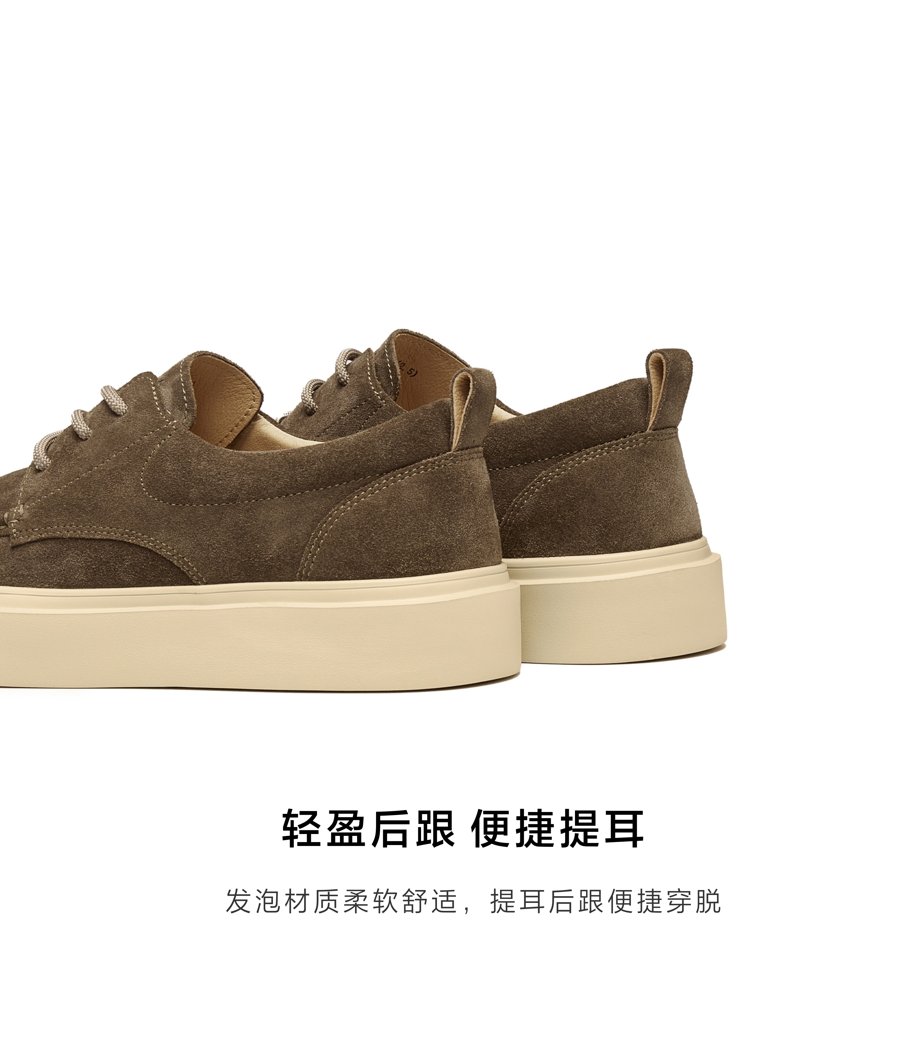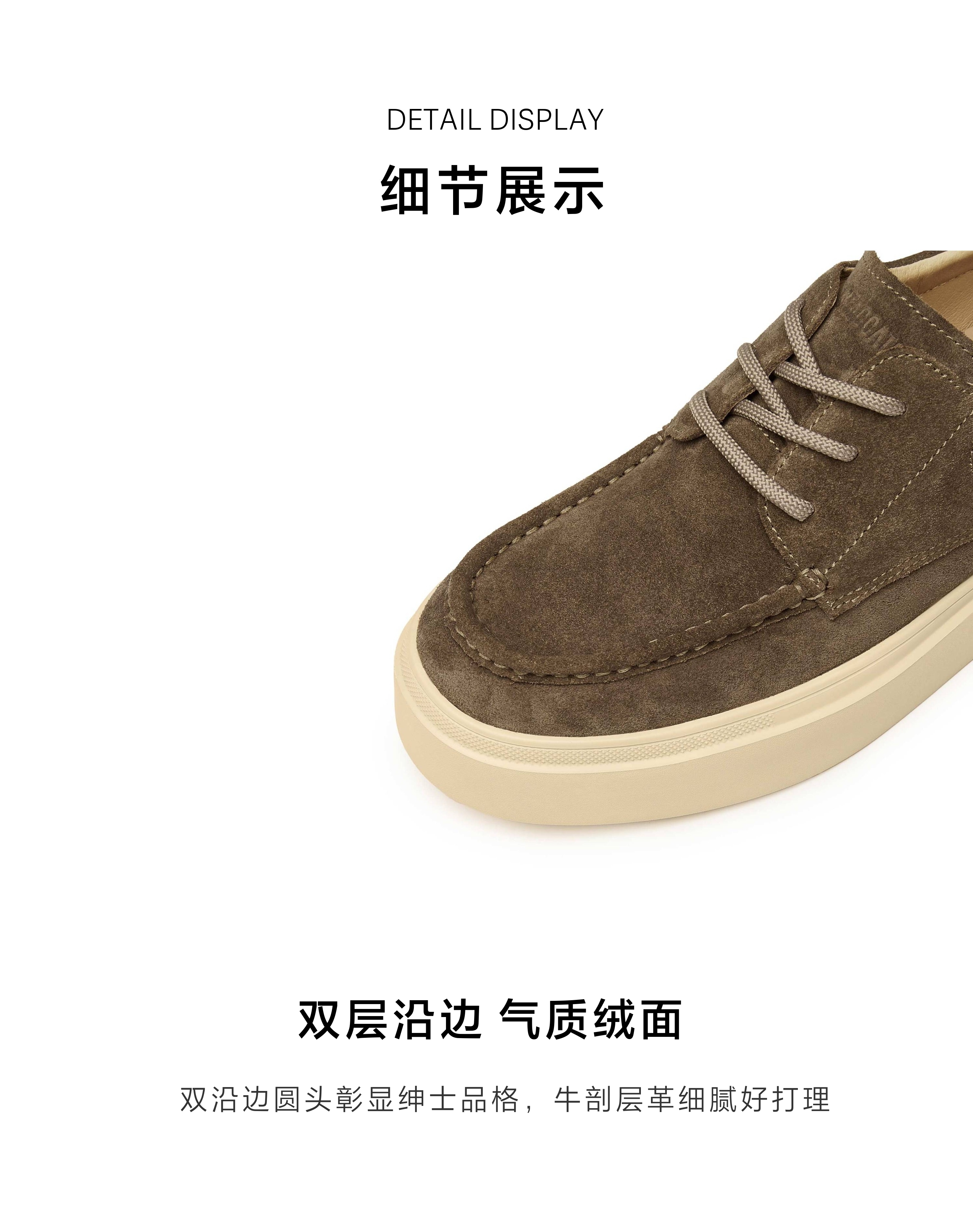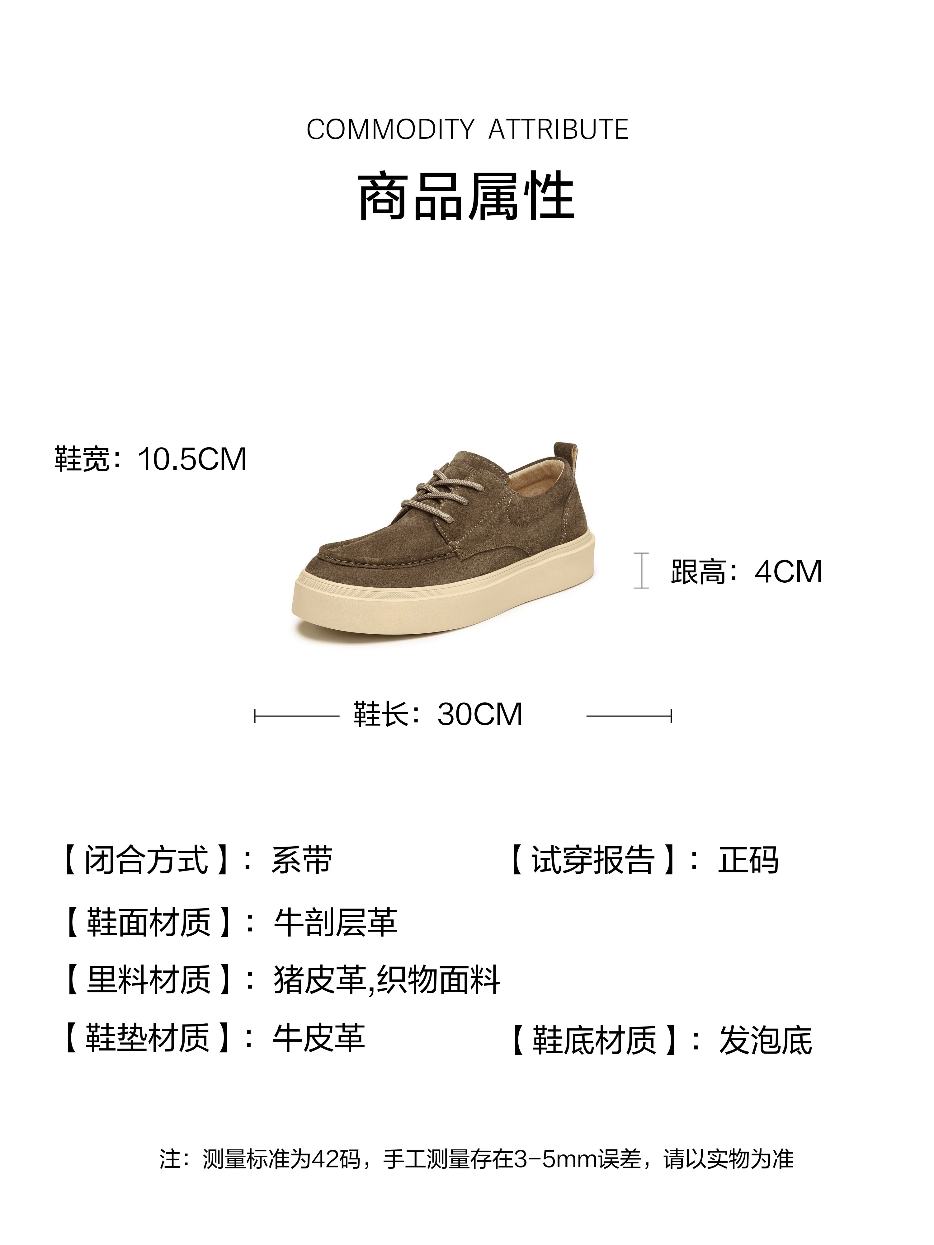 | 内增高:无 | 鞋跟形状:厚底 | 鞋面材质:牛剖层革 | 流行元素:绒面 | 闭合方式:系带 |