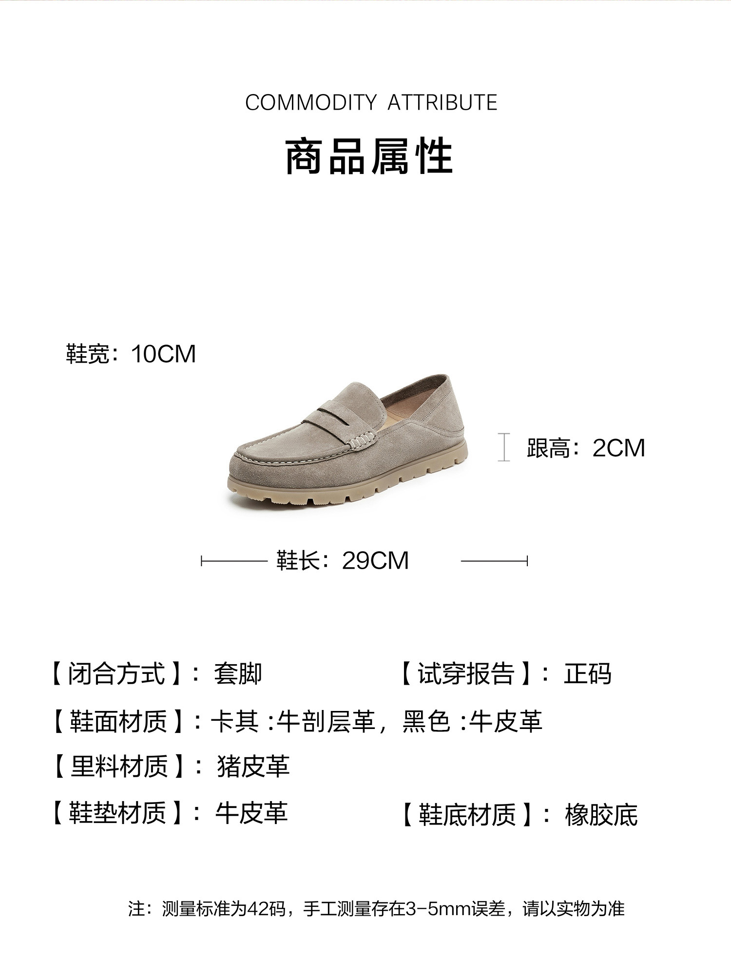 | 风格:复古 | 色系:卡其 | 跟高数值:2CM | 40码鞋宽参考(男):10CM | 性别:男子 |