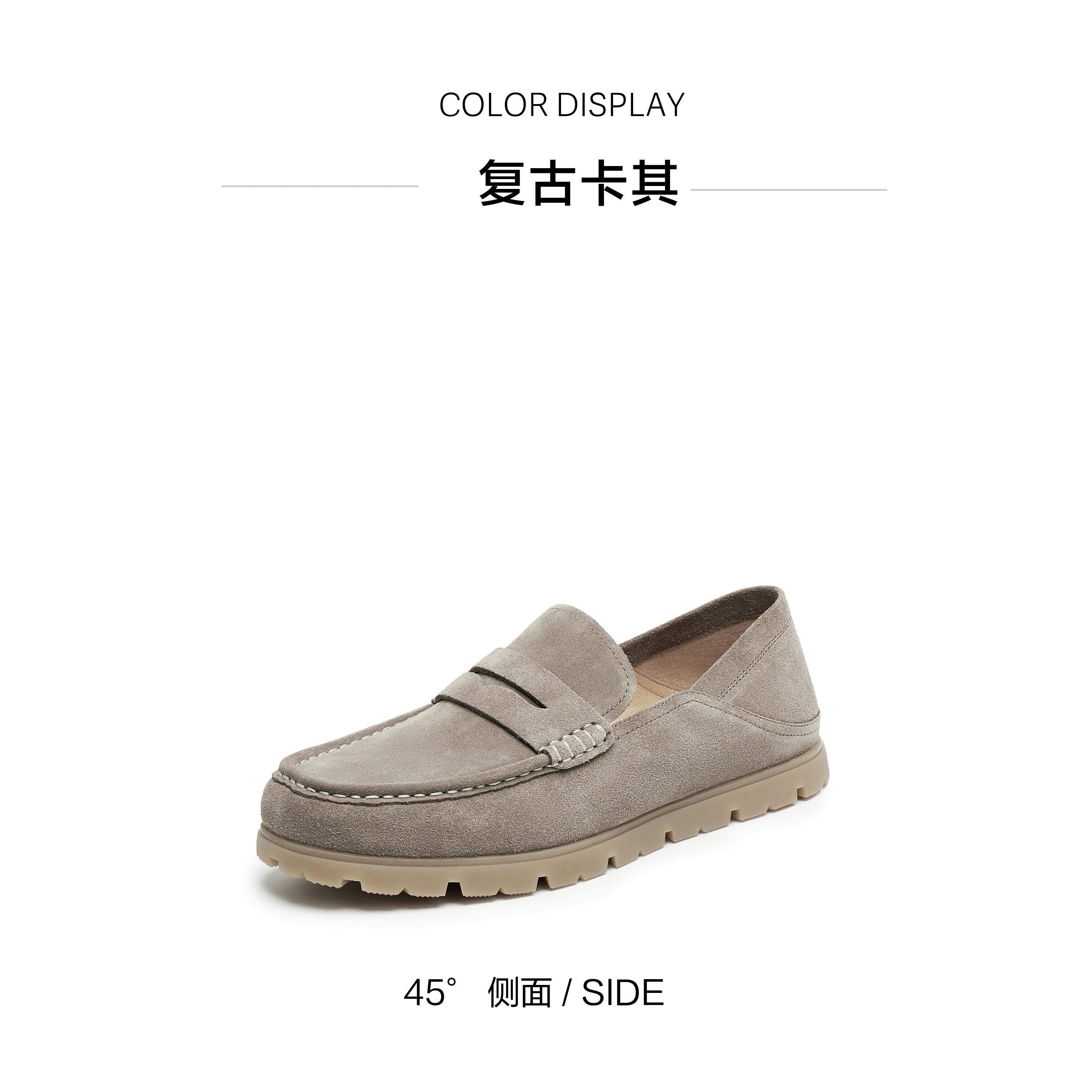 | 内增高:无 | 鞋跟形状:平跟 | 鞋面材质:牛剖层革 | 流行元素:绒面 | 闭合方式:套脚 |