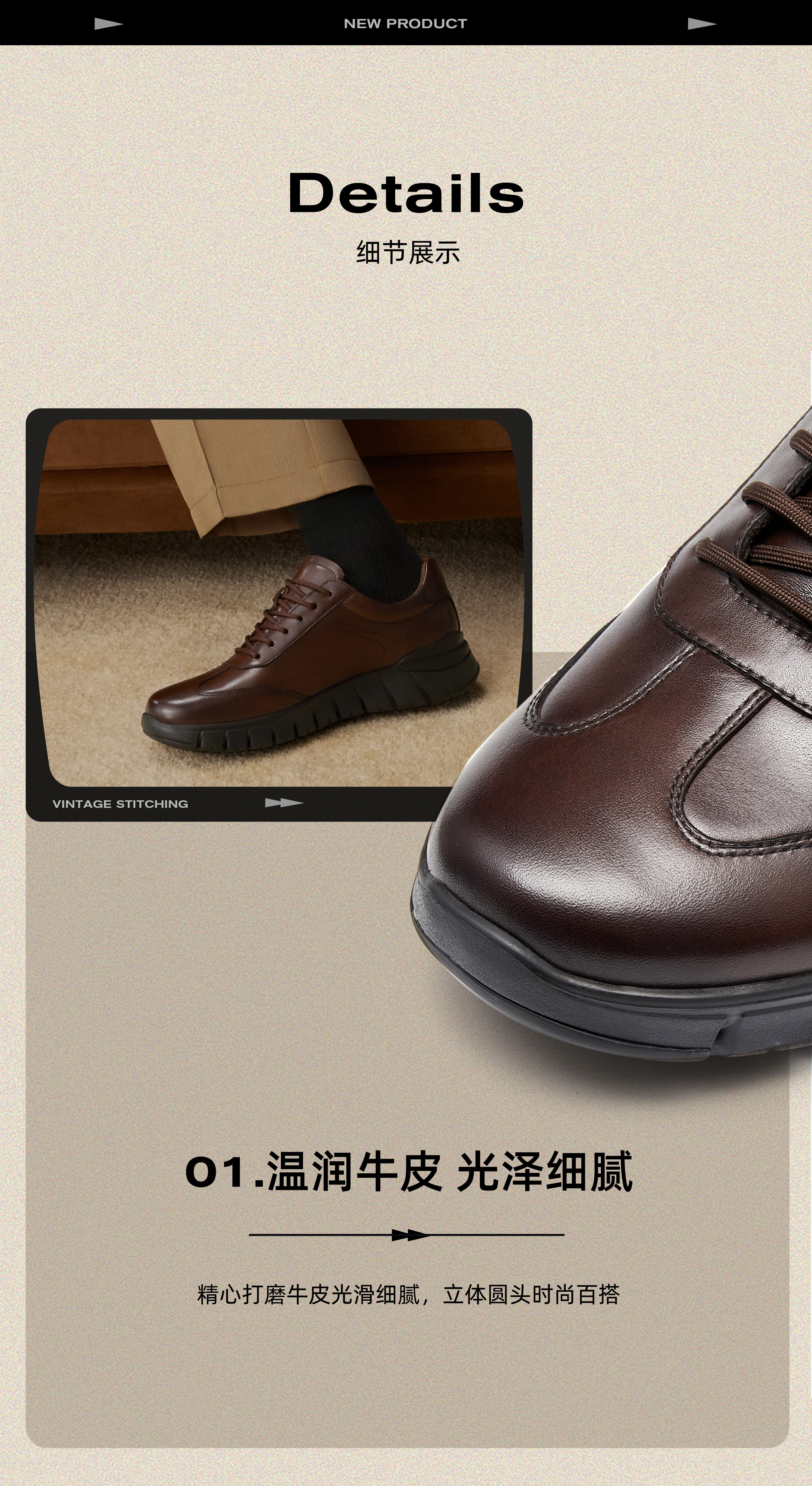 | 风格:时尚休闲 | 色系:棕色 | 跟高数值:2.5CM | 40码鞋宽参考(男):11CM | 性别:男子 |