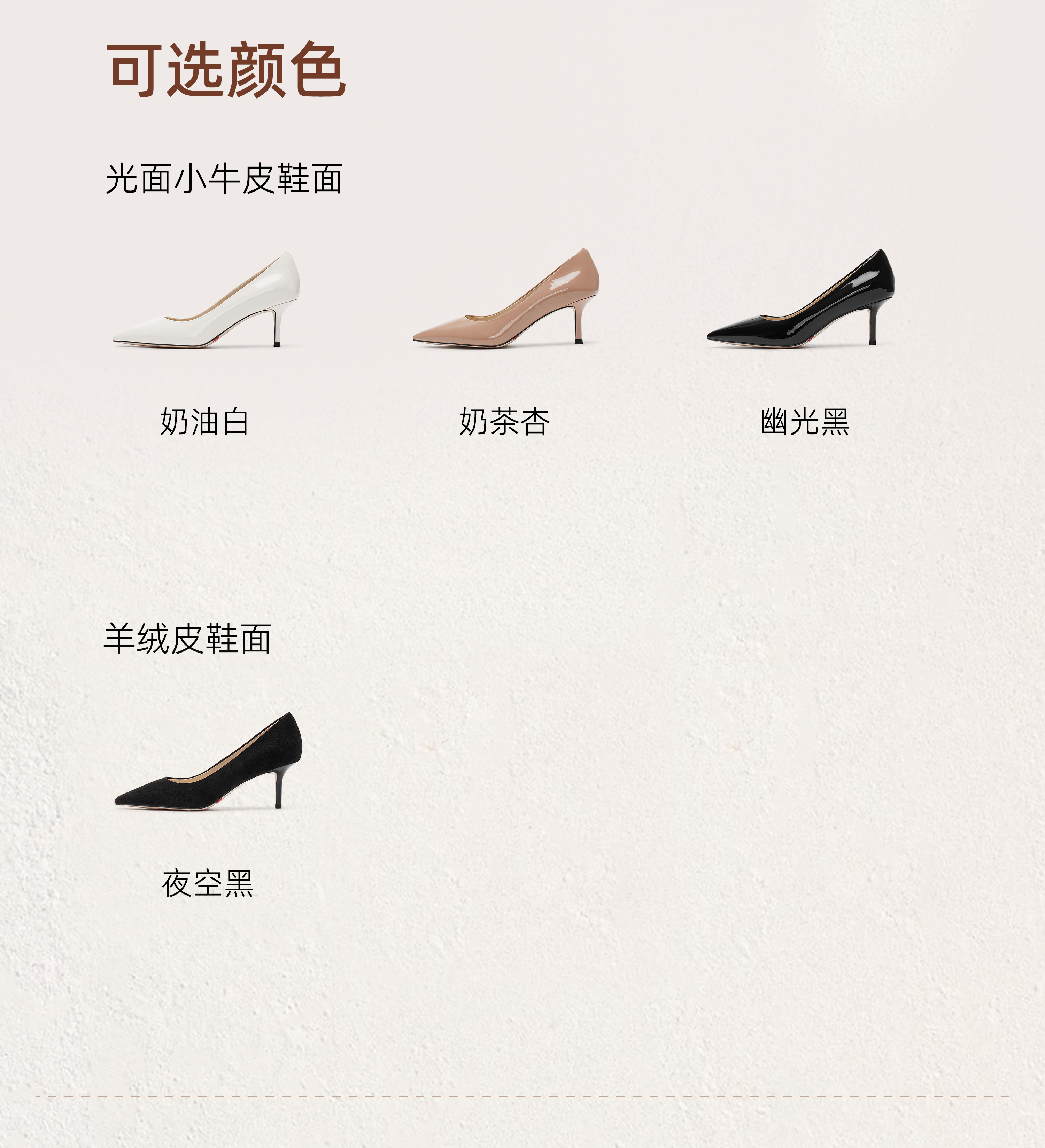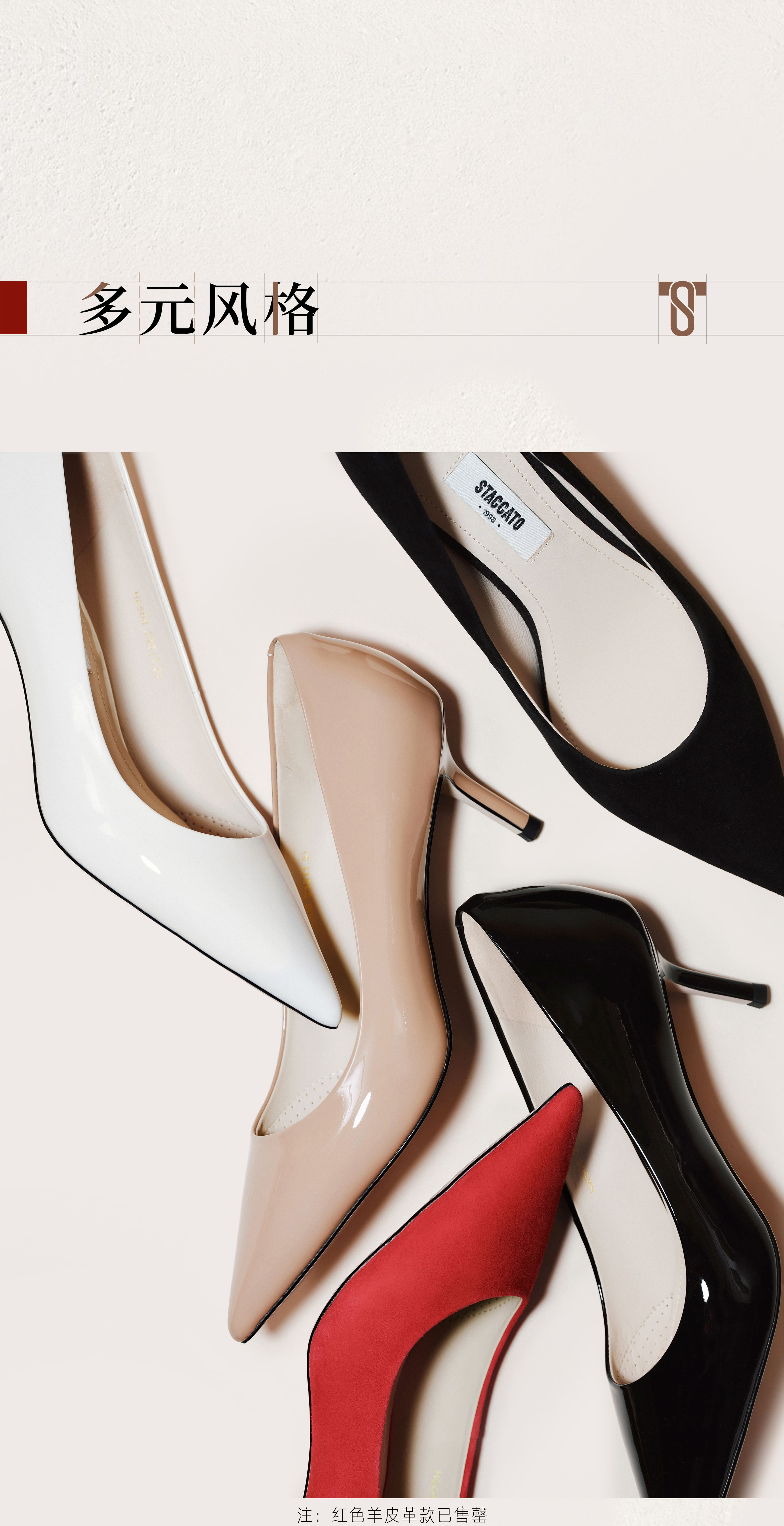 | 鞋头款式:尖头 | 鞋底材质:橡胶底 | 鞋面图案:纯色 | 内增高:无 | 鞋跟形状:细跟 |
