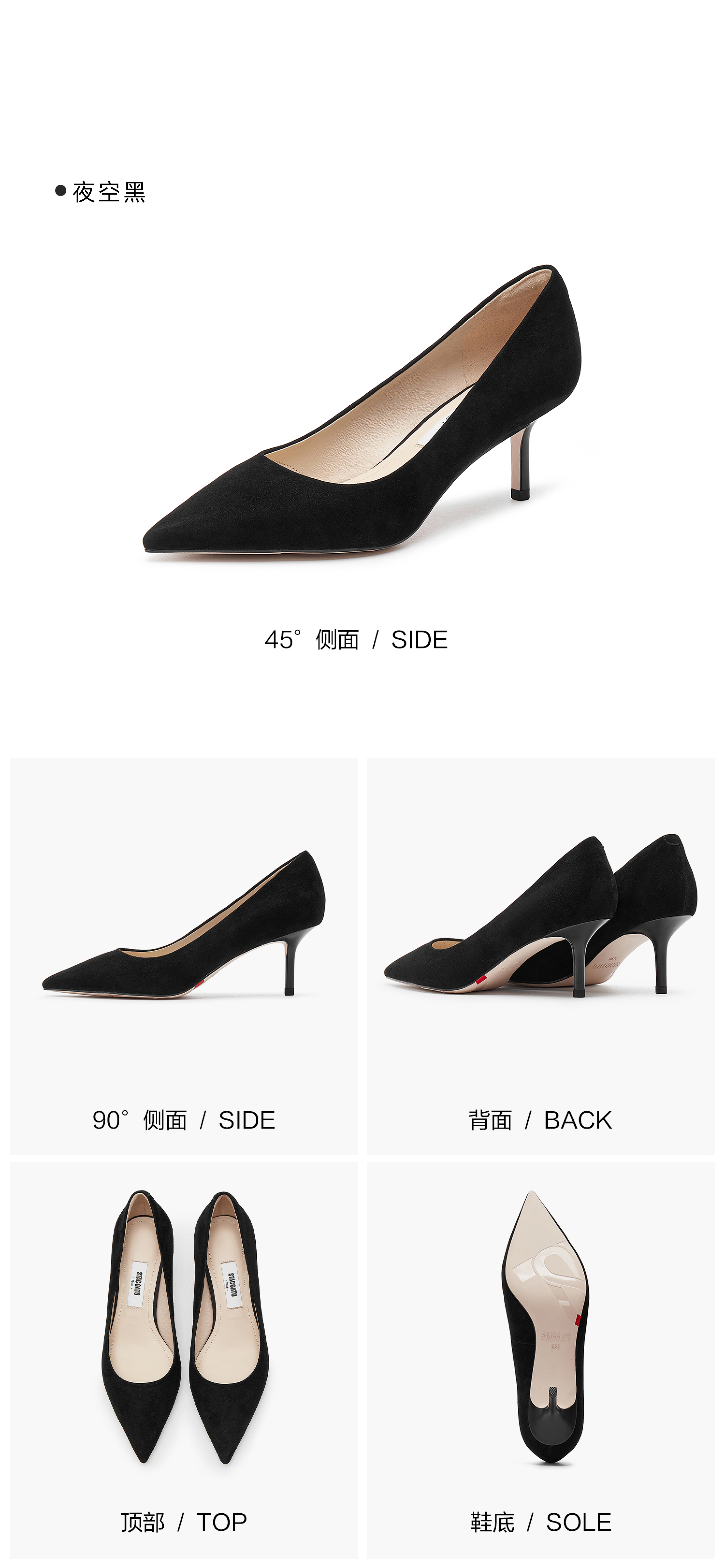 | 鞋头款式:尖头 | 鞋底材质:橡胶底 | 鞋面图案:纯色 | 内增高:无 | 鞋跟形状:细跟 |