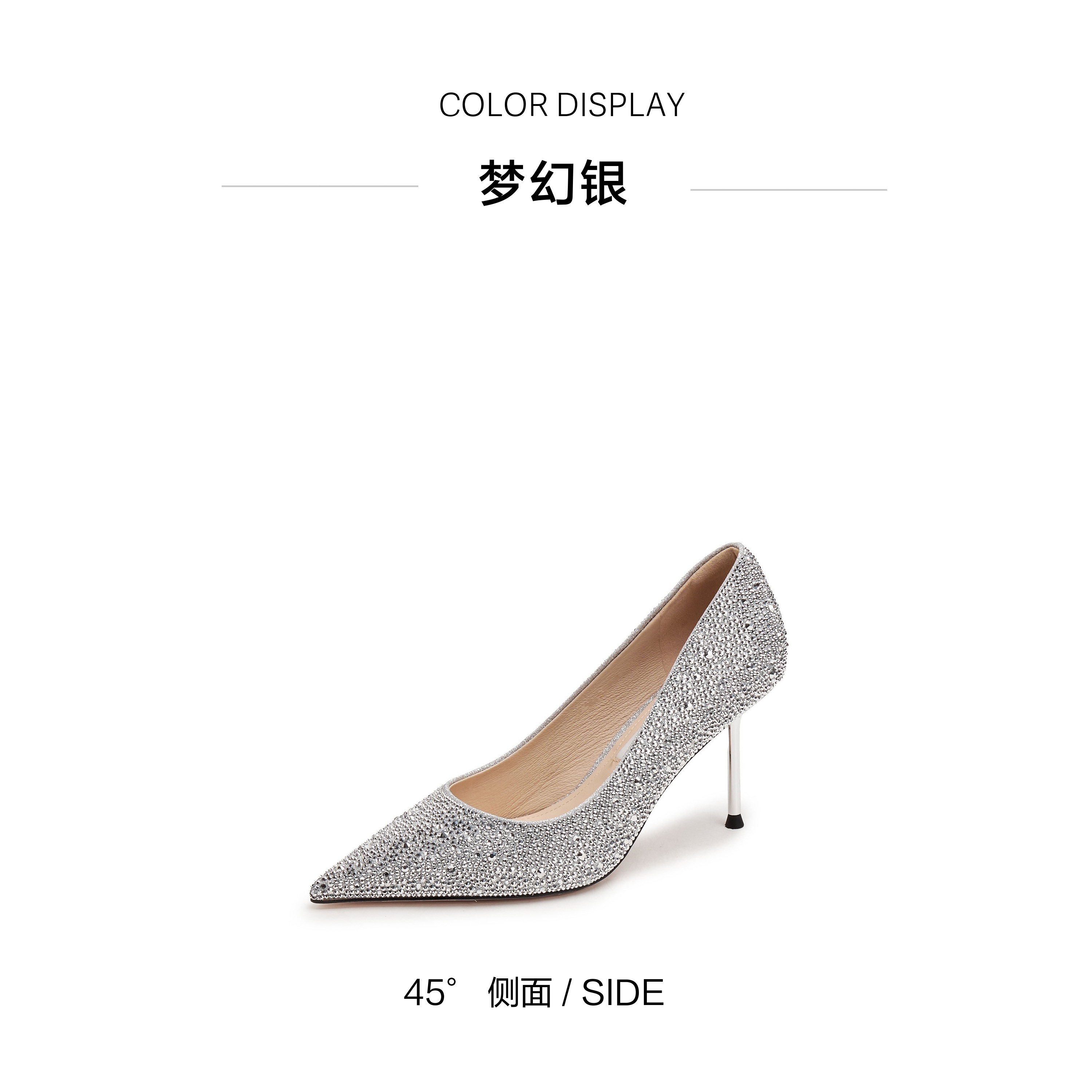 | 鞋头款式:尖头 | 鞋底材质:橡胶底 | 鞋面图案:纯色 | 内增高:无 | 鞋跟形状:细跟 |