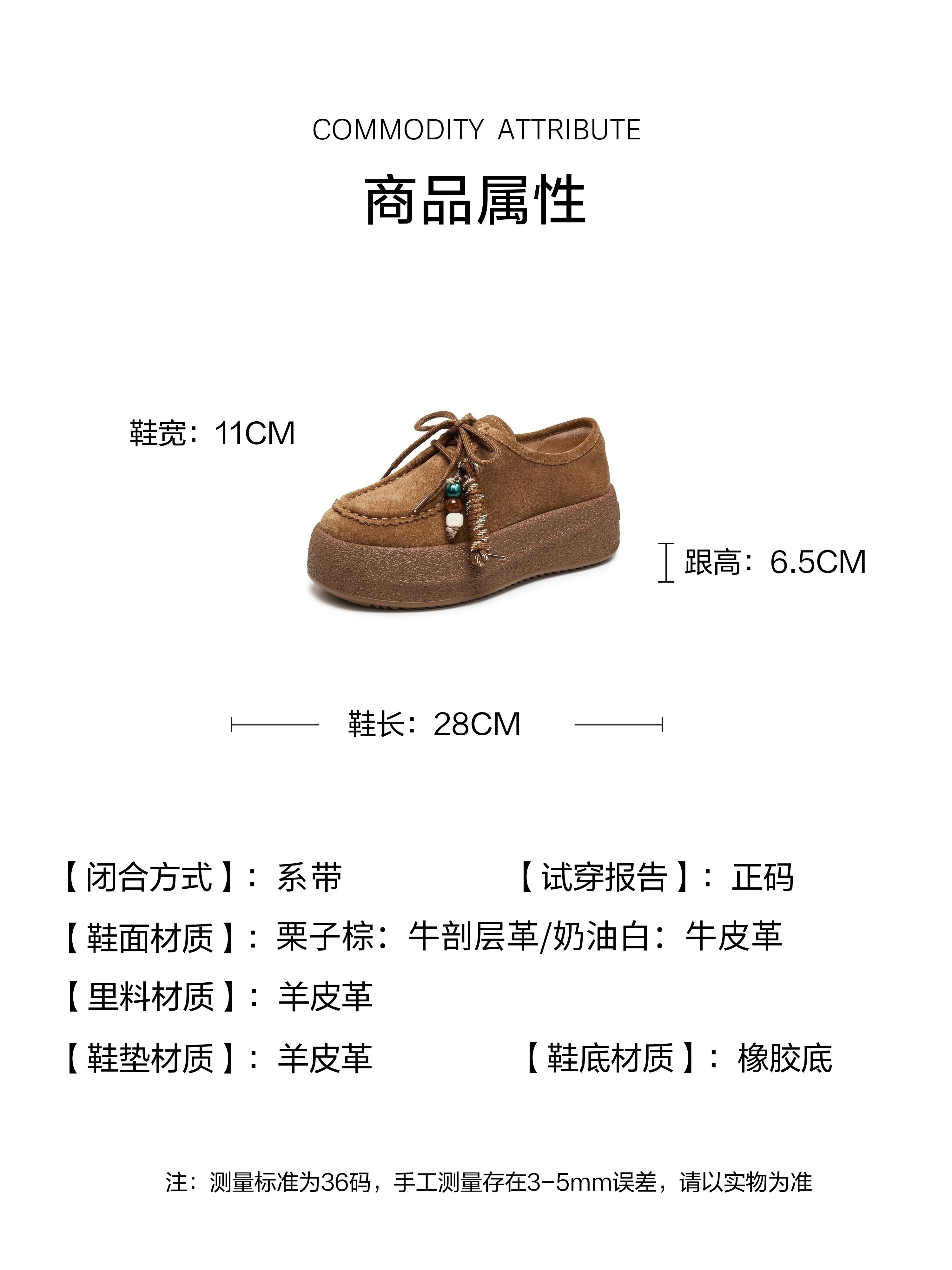 | 闭合方式:系带 | 风格:时尚潮流 | 色系:棕色 | 跟高数值:6.5CM | 配跟:无 |