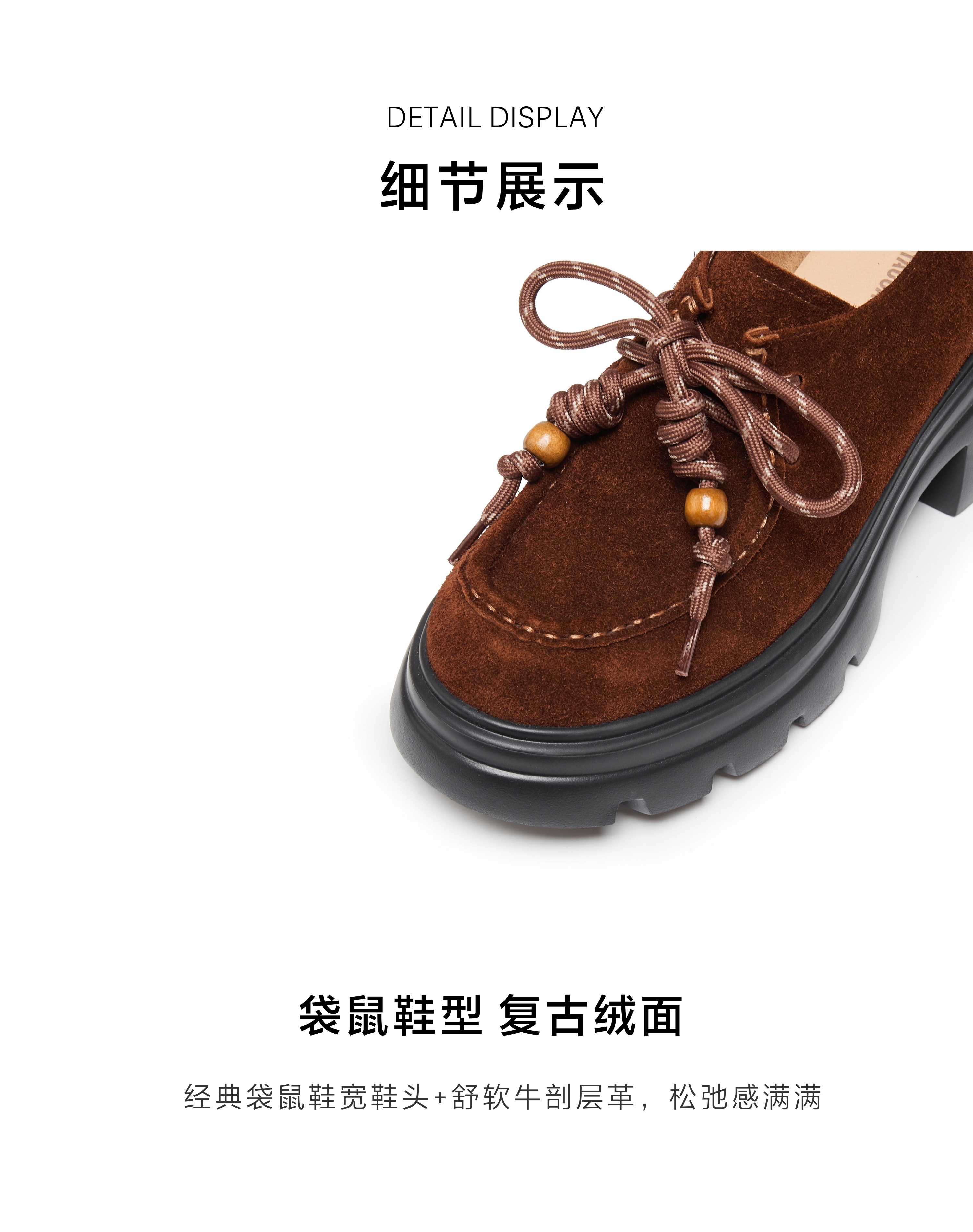 | 闭合方式:系带 | 风格:时尚潮流 | 色系:棕色 | 跟高数值:6.5CM | 配跟:无 |